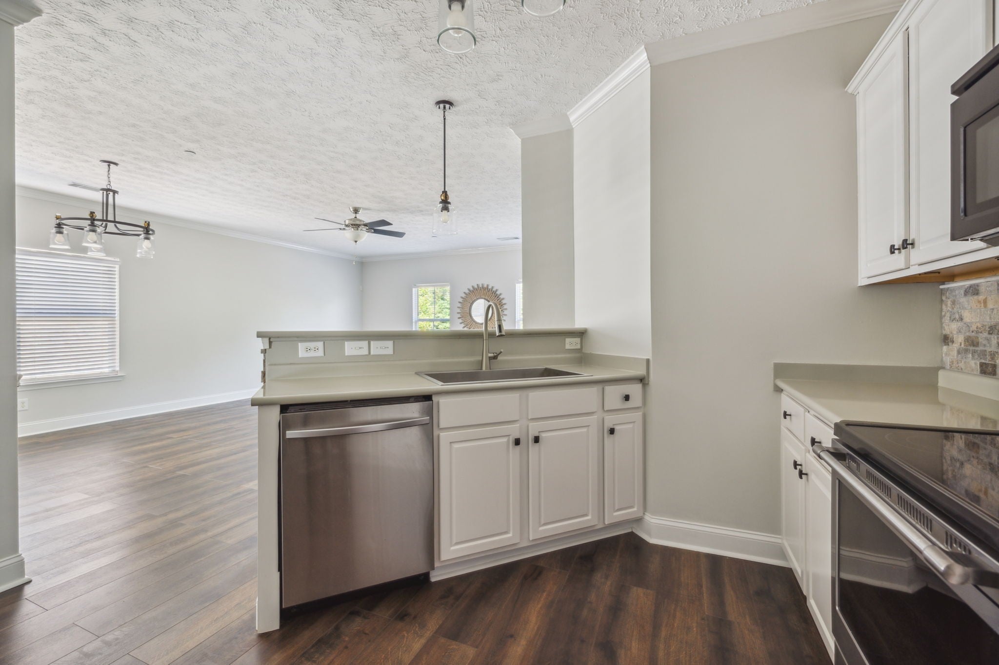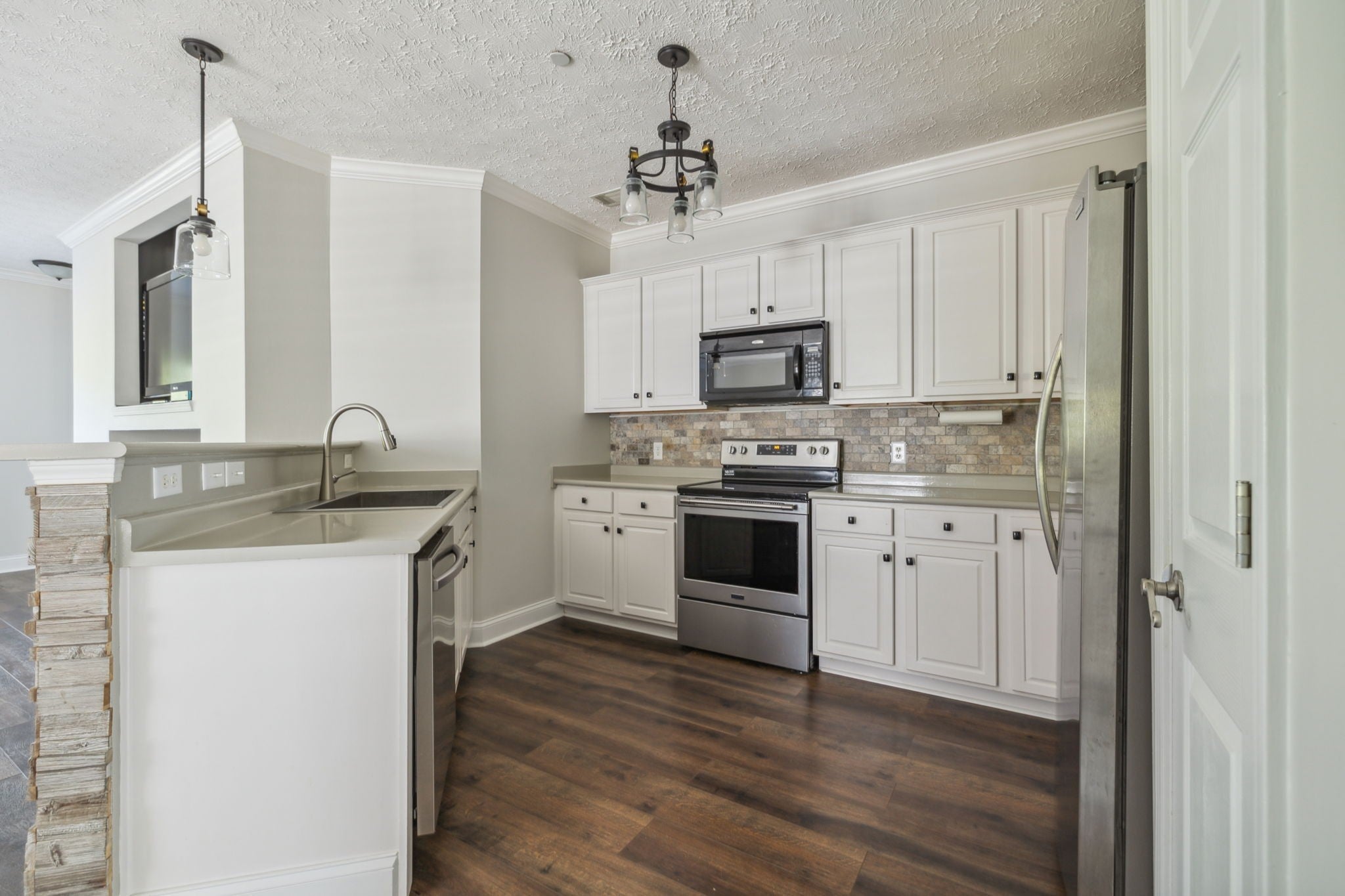 - Electric Oven, Electric Range, Dishwasher, Dryer, Microwave, Stainless Steel Appliance(s), Washer