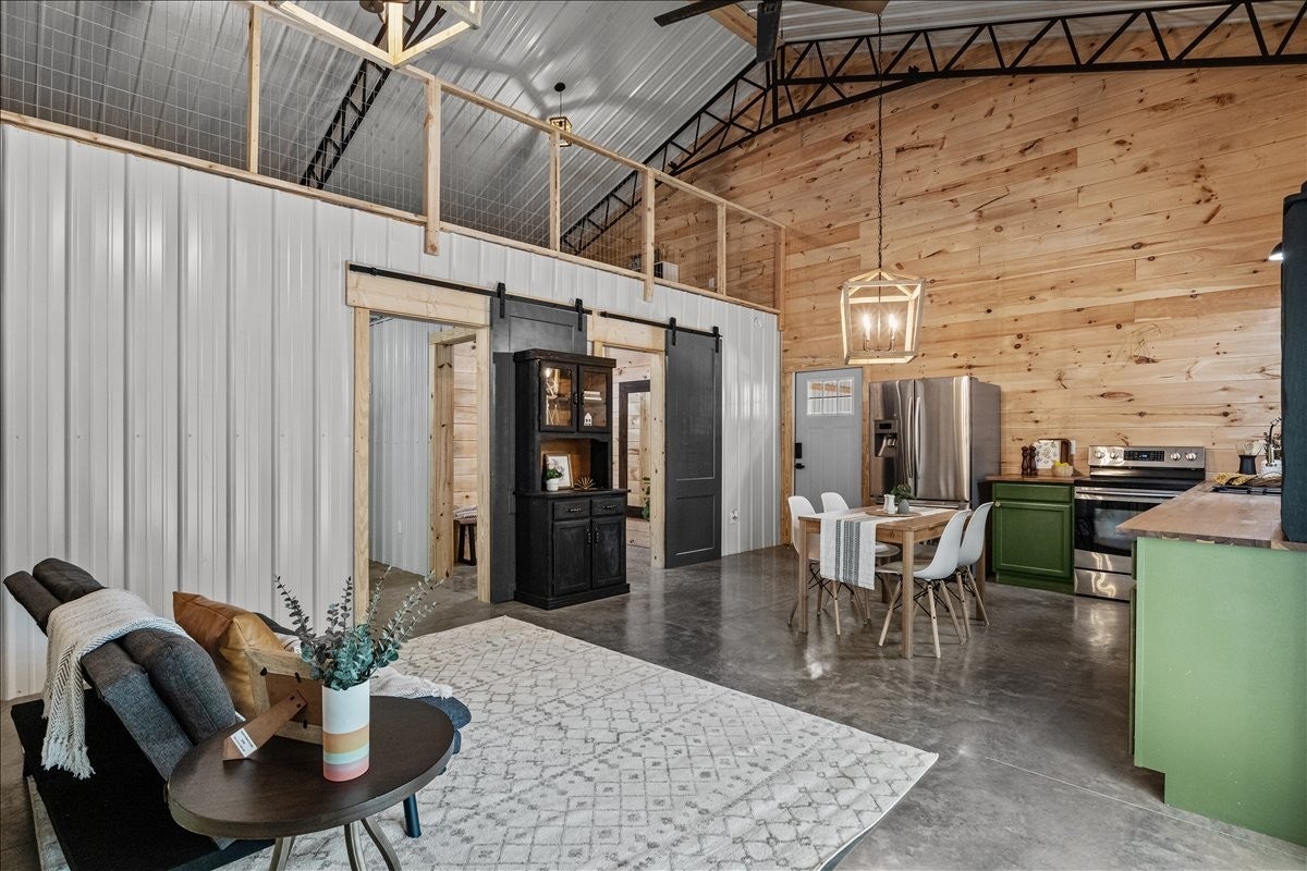 Welcome to 431 Old Highway 49! This is a 1 Bed | 1 Bath Barndominium on 23.47 Acres – /+ under 45 Min to Downtown Nashville* *Barndominium is 30/60 featuring 1 Primary bedroom, with attached Bath with tile shower, and open-concept living* 1075 square ft of finished out space* Loft area can be used as a 2nd Bedroom/Office/Flex space* 1050 square ft of Shop/garage space* Cleared Future building site with Electric in place* Set on 23.47 unrestricted acres, this property offers privacy, space to expand, and endless potential—perfect for a weekend retreat, homestead, or full-time living.*Seller Loved this Home, but has relocate due to work*Peaceful country setting* High-Speed internet*