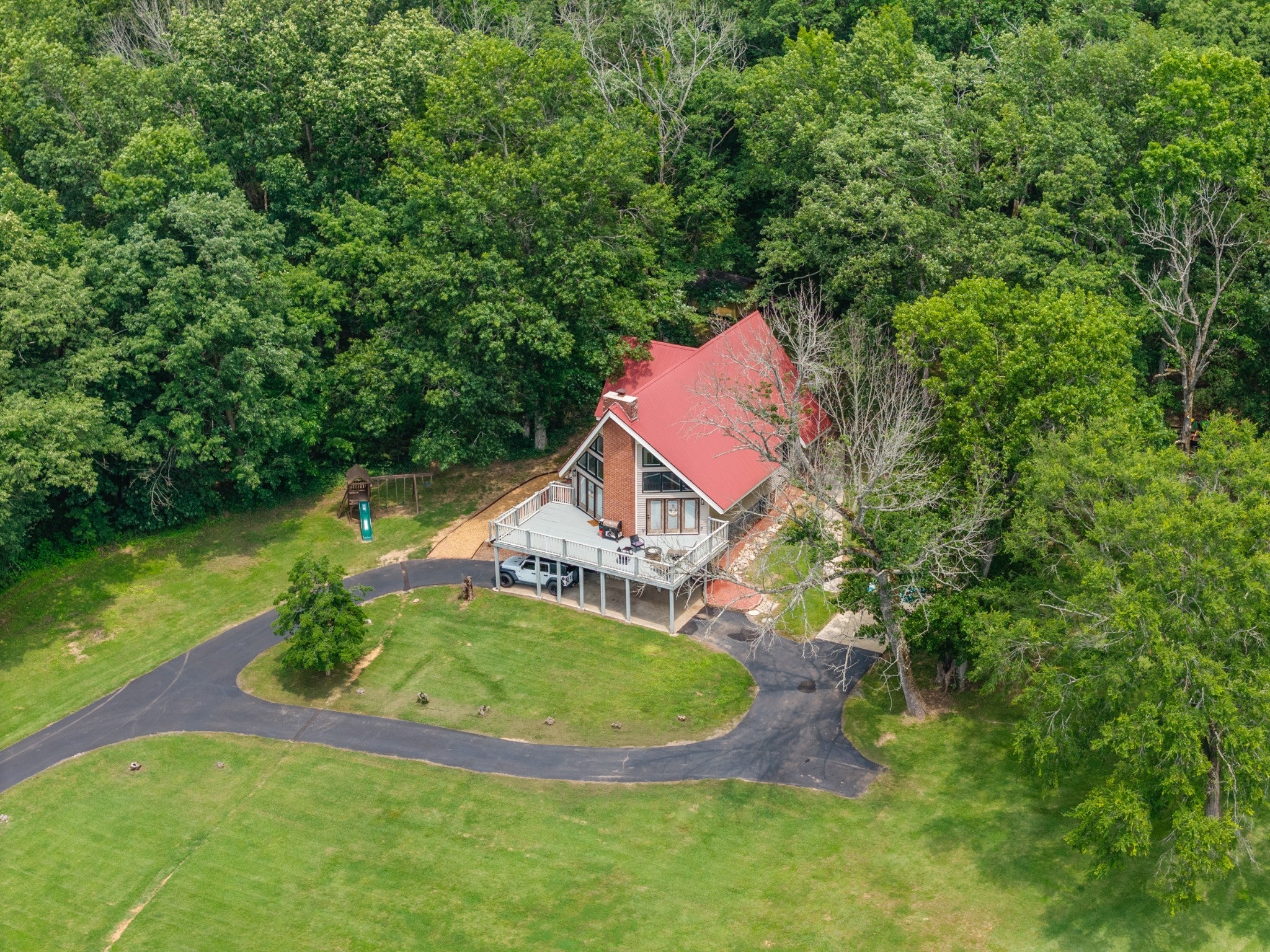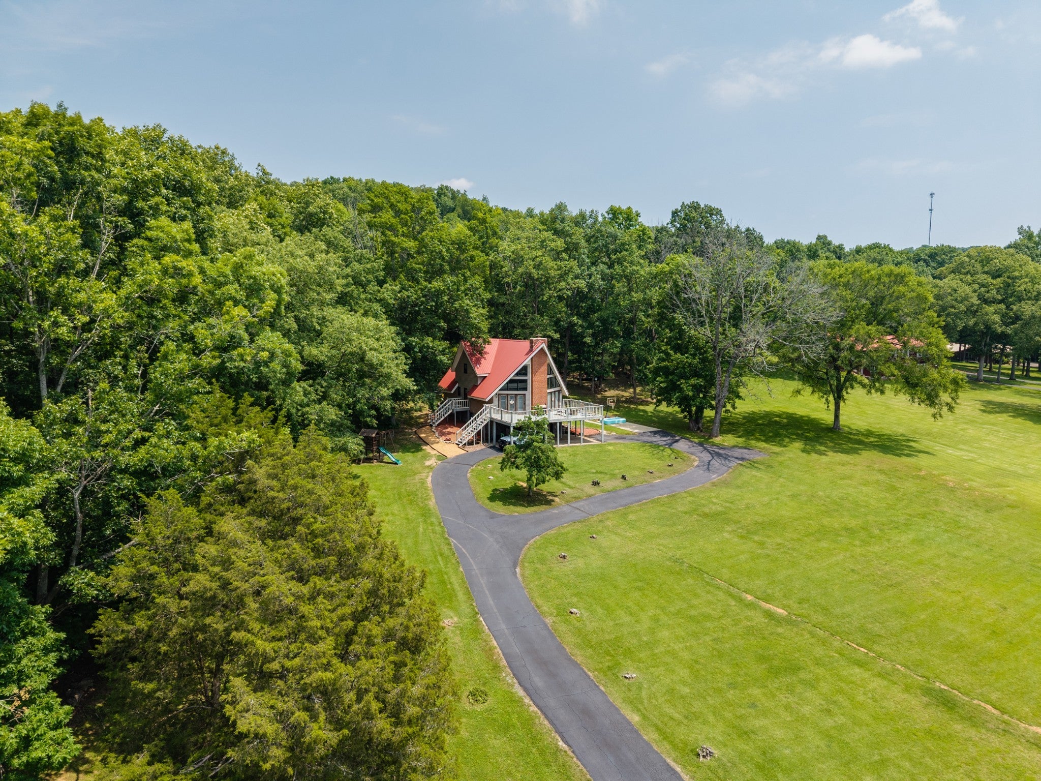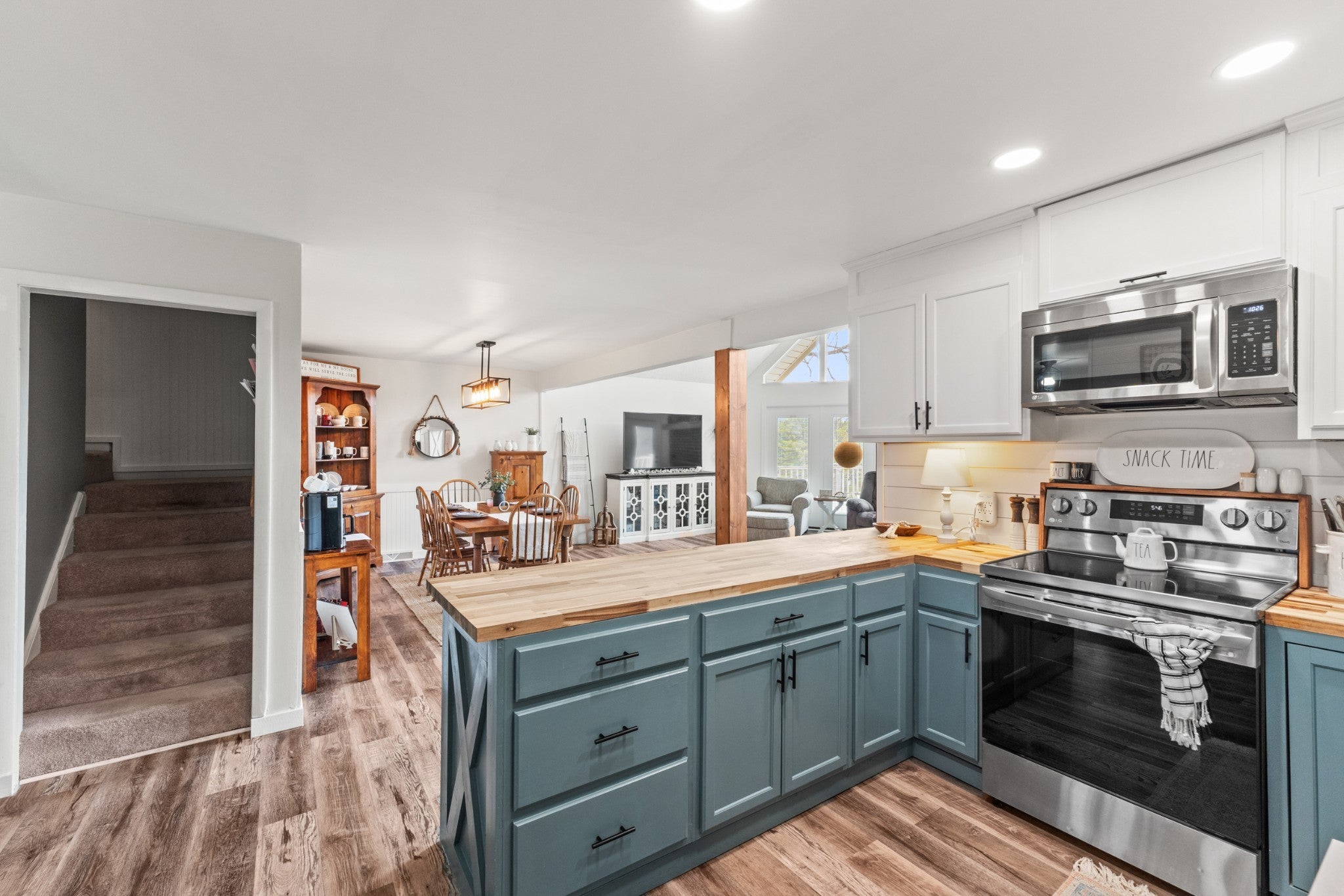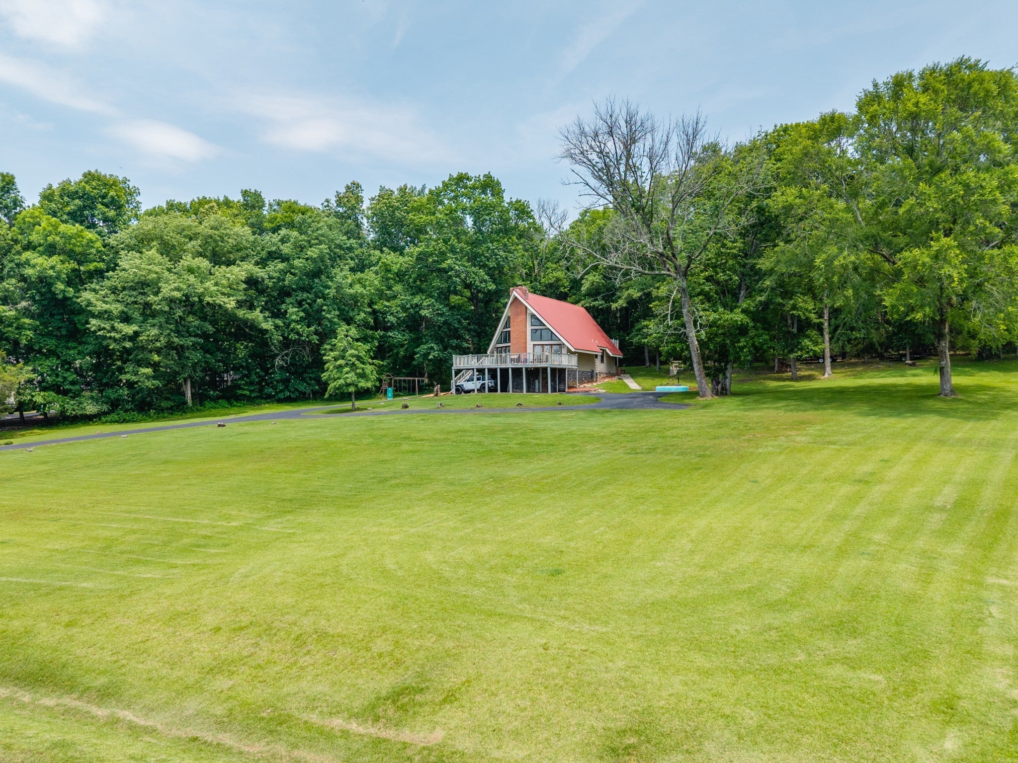 Discover the perfect blend of character and comfort in this stunning 3BR 3BA A-frame home, nestled on 2 peaceful acres with private lake access. Whether you're seeking a weekend retreat or a full-time residence, this one-of-a-kind property offers the best of both nature and modern living. Inside you'll find a spacious, light-filled interior with soaring ceilings and oversized windows that bring the outdoors in. The remodeled kitchen is a showstopper, featuring updated cabinetry, butcher block countertops, a farmhouse sink, and stainless steal appliances. Each bedroom offers its own bath for ultimate convenience and privacy, and the open-concept living and dining areas flow beautifully to outdoor spaces. Step outside to enjoy wooded surroundings, lake access for fishing or kayaking, and plenty of room to explore, garden, or simply relax. The finished basement provides additional living space, ideal for a game room, media room, guest suite, or home office. With modern upgrades, timeless architecture, and unbeatable setting, this property is the perfect lake-area getaway.