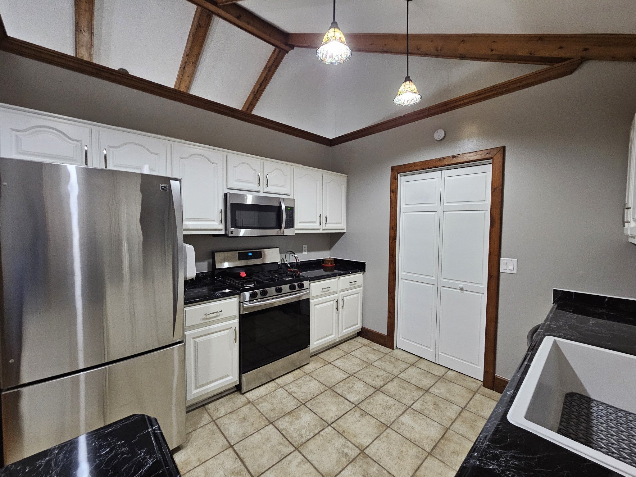 - Built-In Gas Oven, Gas Range, Dishwasher, Dryer, Ice Maker, Microwave, Refrigerator, Stainless Steel Appliance(s), Washer
