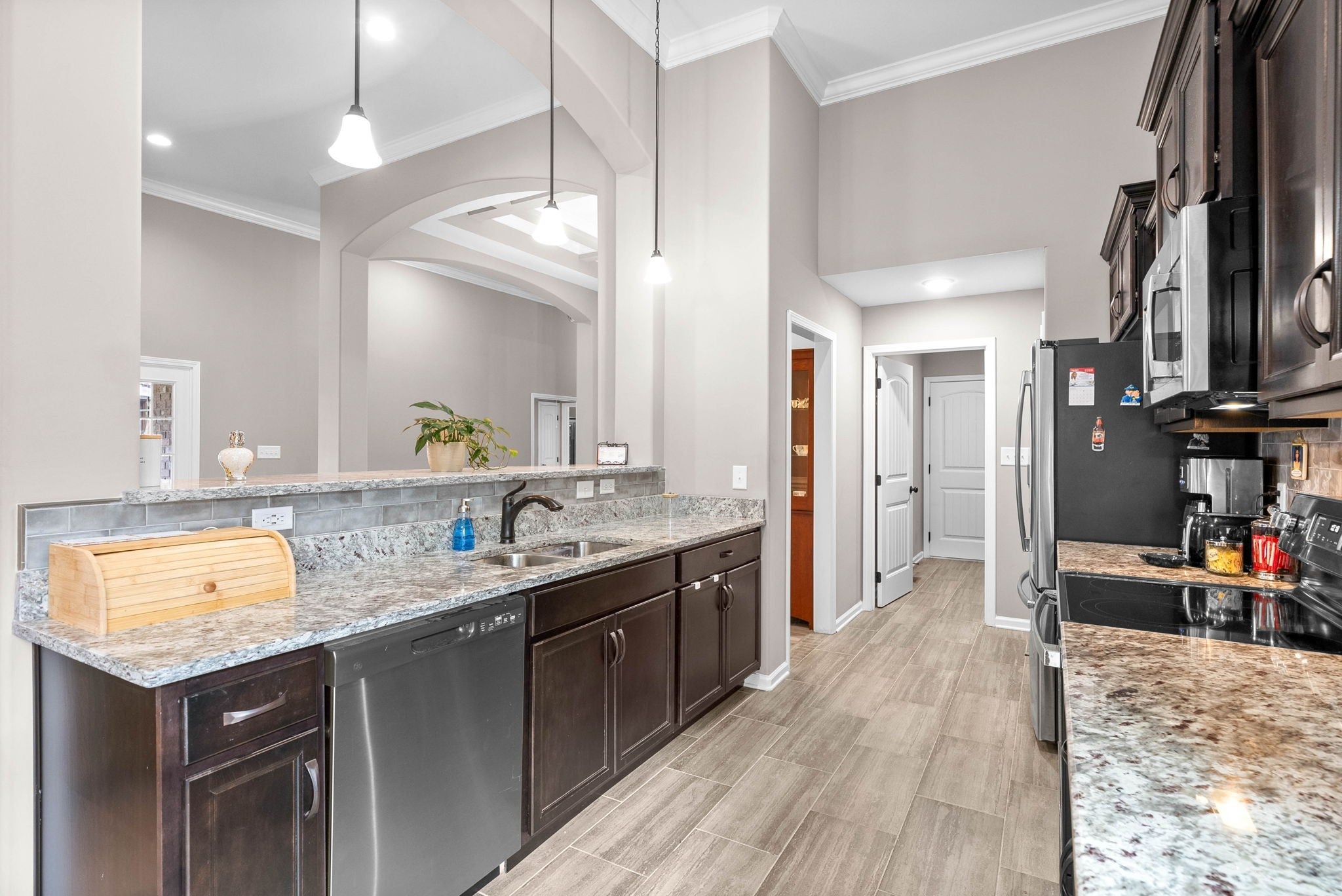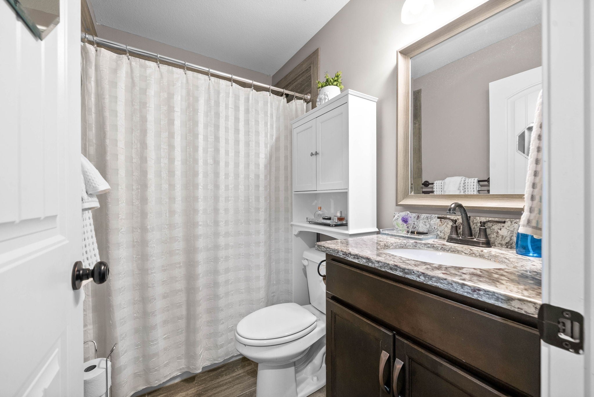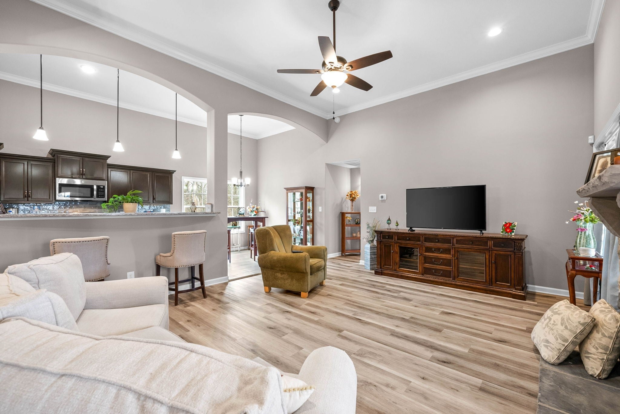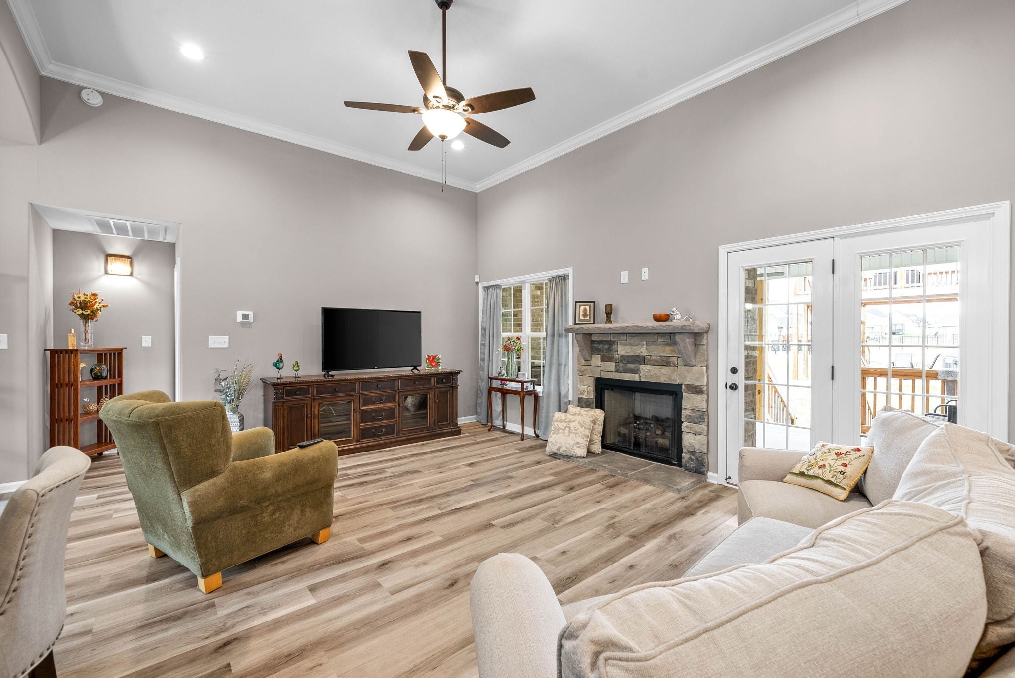 Use preferred lender, and receive up to 1% of your loan amount as a lender credit towards closing costs or 1 year temporary buydown. Buyers choice. Step into comfort and style with this beautifully designed home at the end of the street. The open-concept kitchen is both functional and stunning, showcasing upgraded cabinetry, granite countertops, and a classic tile backsplash. Just off the kitchen, the expansive great room offers a warm and welcoming atmosphere with its soaring ceilings and a striking stone gas fireplace. The spacious primary suite features a large walk-in closet, a relaxing garden tub, and a fully tiled walk-in shower. Entertain with ease in the open formal dining room, or retreat to the oversized bonus room—perfect for a home office, playroom, or media space. Thoughtful details throughout include custom trim work, rich wood and tile flooring, and a generous laundry room for added convenience. Enjoy endless hot water with a tankless gas water heater, and unwind on the large covered deck—ideal for relaxing evenings or weekend gatherings. Leaf Filter installed gutter filters that have a transferrable lifetime warranty!