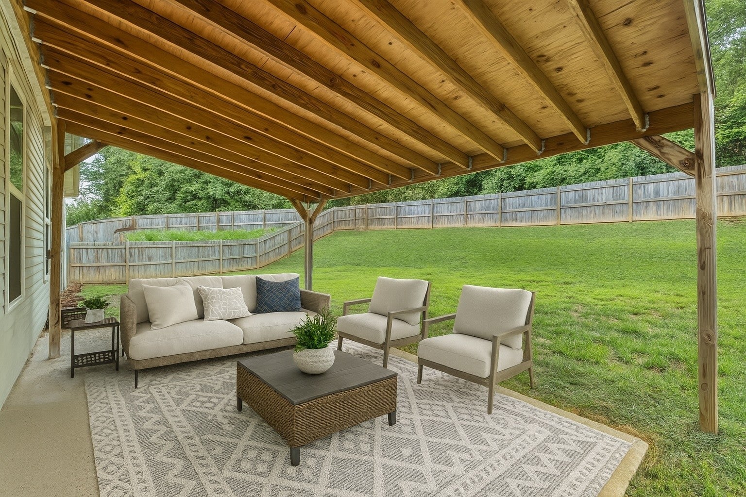 Stunning 3-Bedroom Home with tons of upgrades and a covered patio amongst the *fenced backyard*. Home is located in the Villages of Riverwood - a wonderful community with amenities such as a community pool, clubhouse and a workout facility. The home has an open concept and spacious kitchen and living room. New roof 2023. Flooring has been replaced in recent years. This home is located near Nashville Airport (BNA) and is just a stone's throw away from Percy Priest Lake. You'll be able to enjoy outdoor activities like boating, fishing, and hiking right in your backyard, along with easy access to parks, shopping, and dining, all while being just a short drive from downtown Nashville. The home also features and upgraded garage with ample storage.