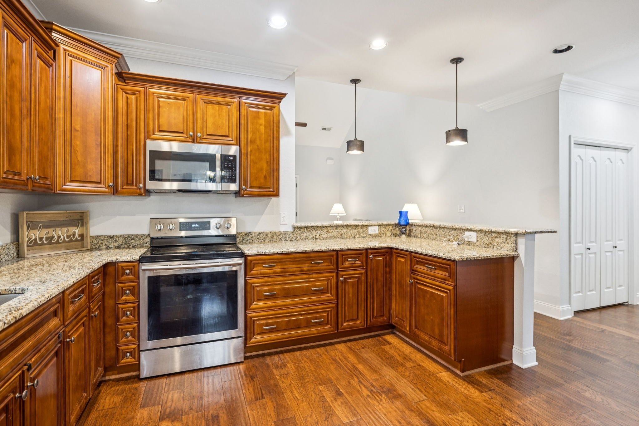 - Electric Oven, Electric Range, Dishwasher, Disposal, Microwave, Refrigerator, Stainless Steel Appliance(s)