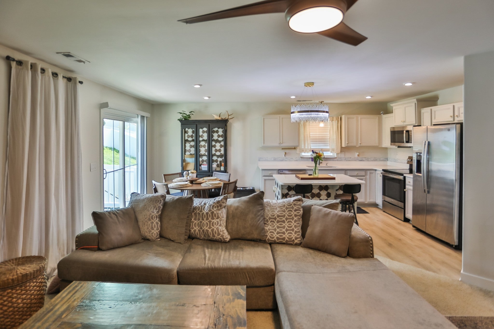 - Oven, Range, Dishwasher, Refrigerator, Stainless Steel Appliance(s)