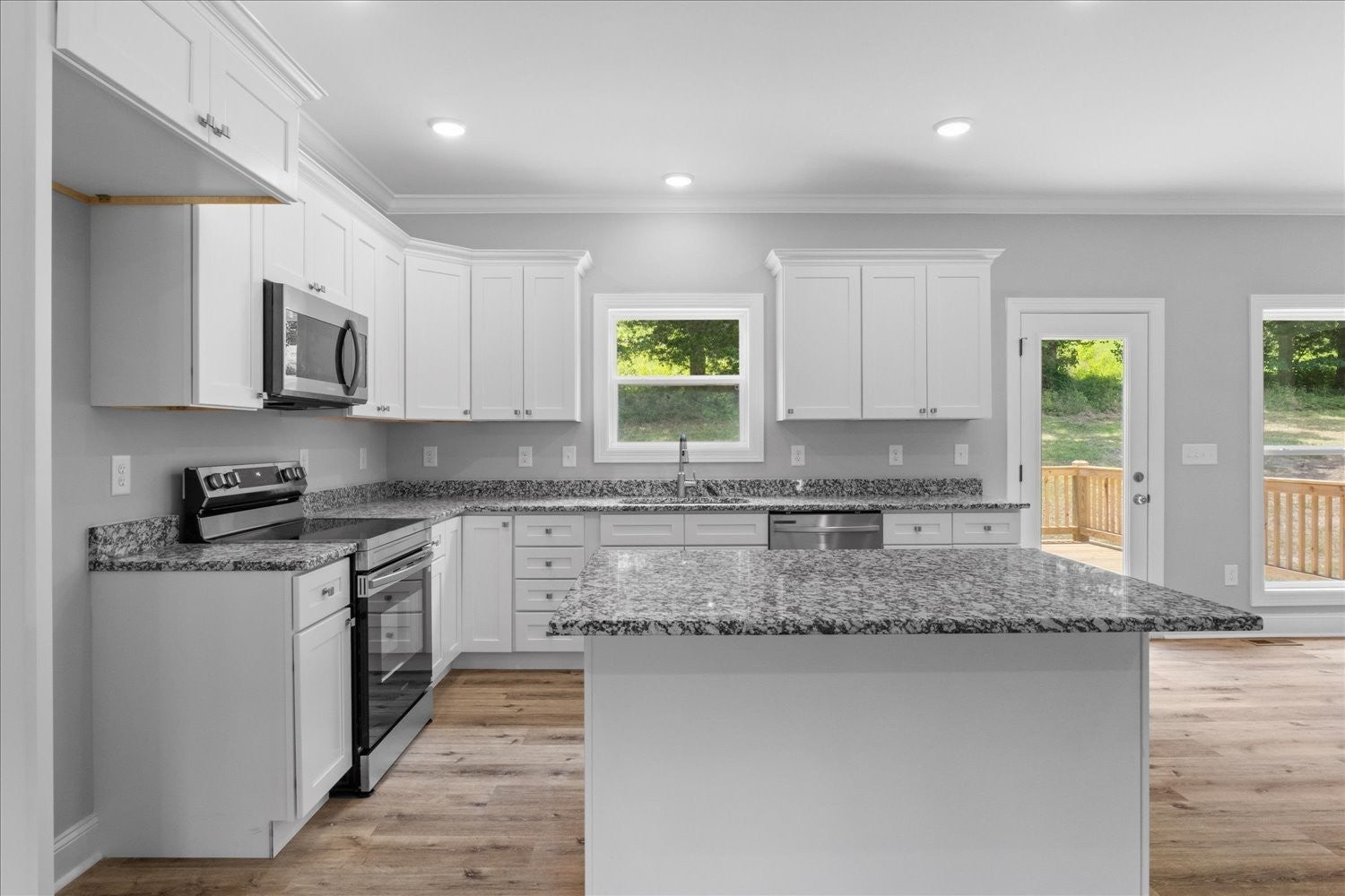 - Electric Range, Dishwasher, Microwave, Stainless Steel Appliance(s)