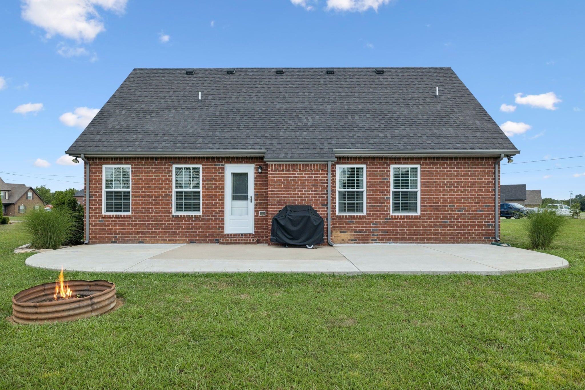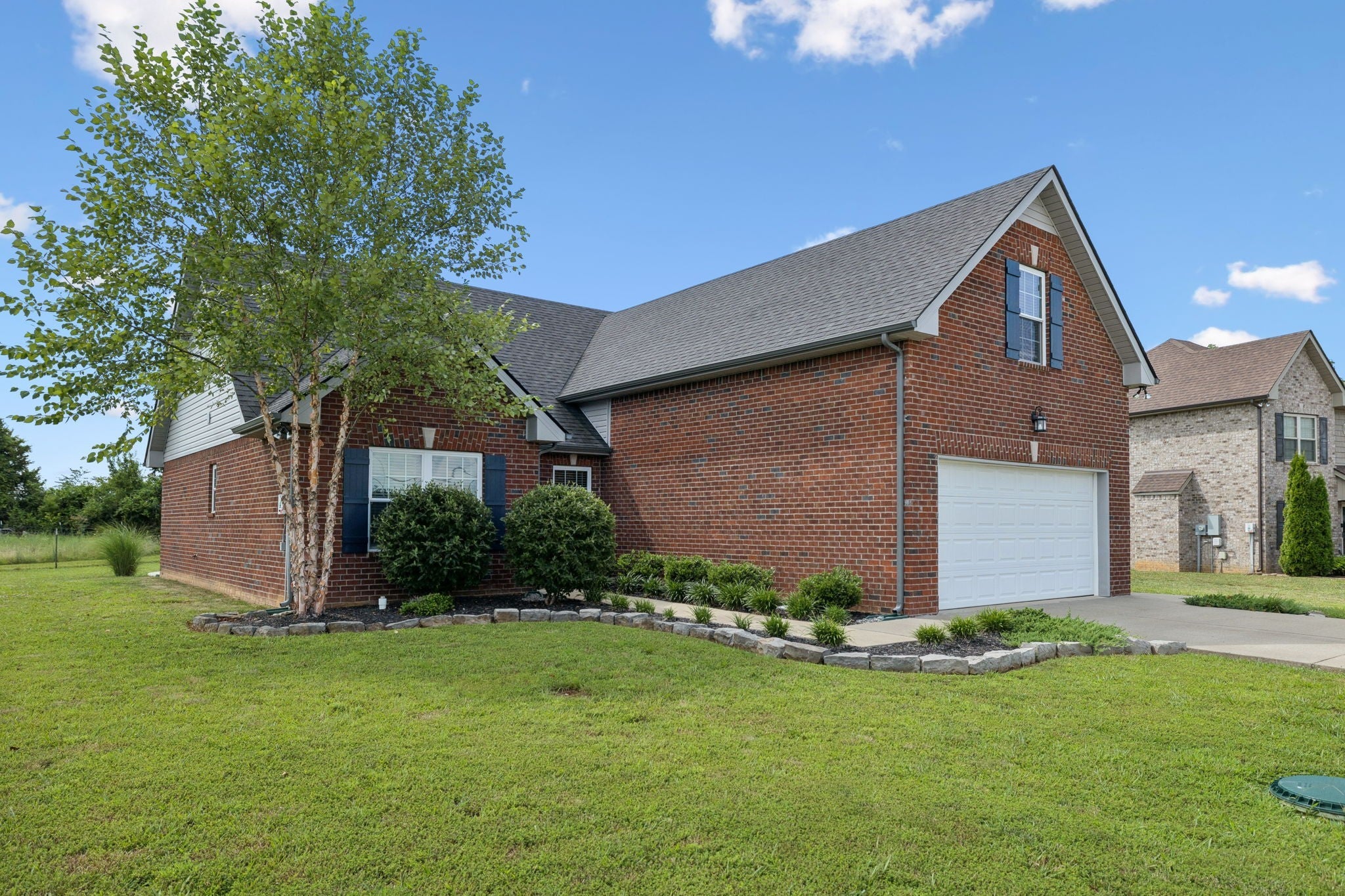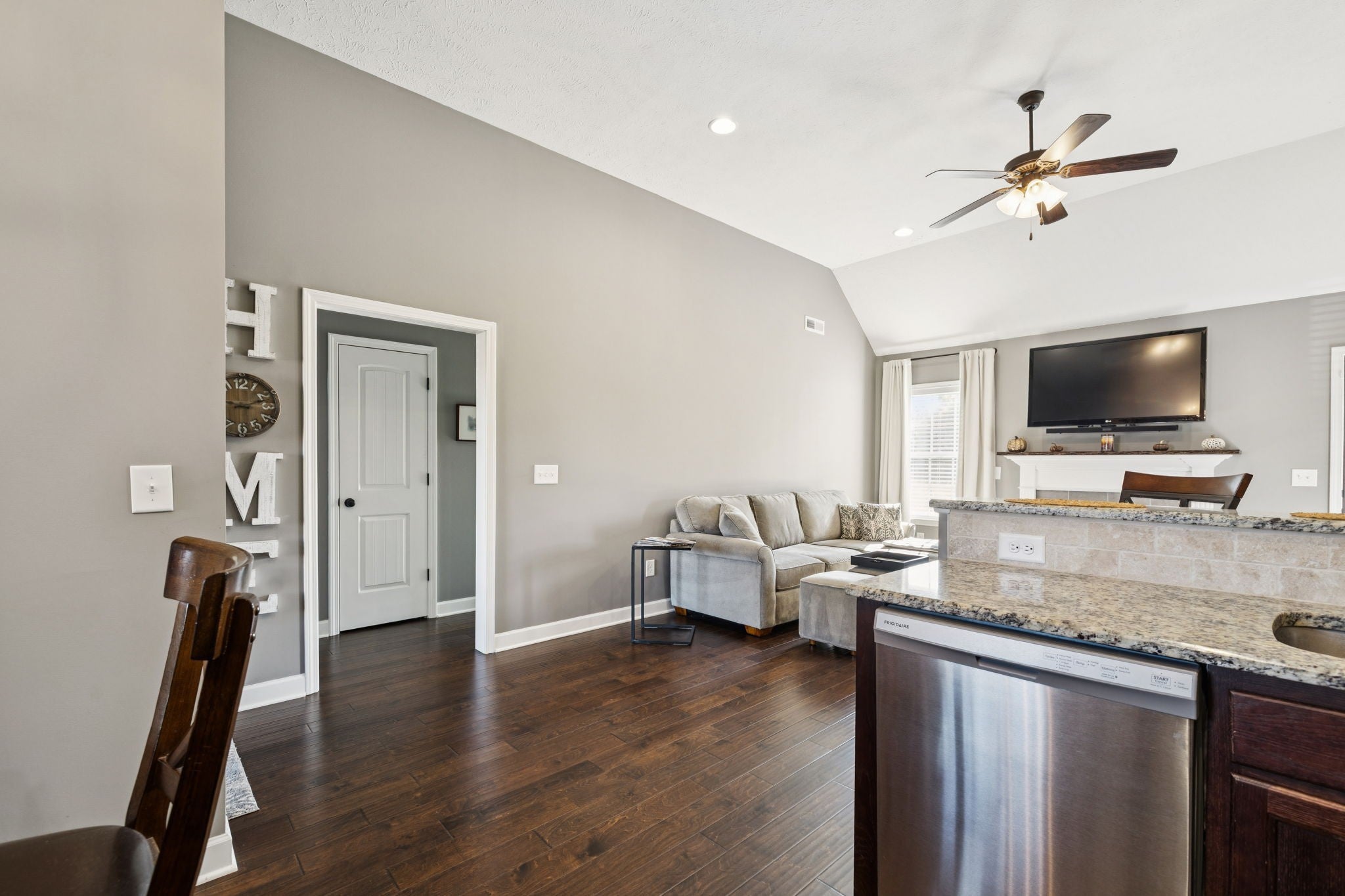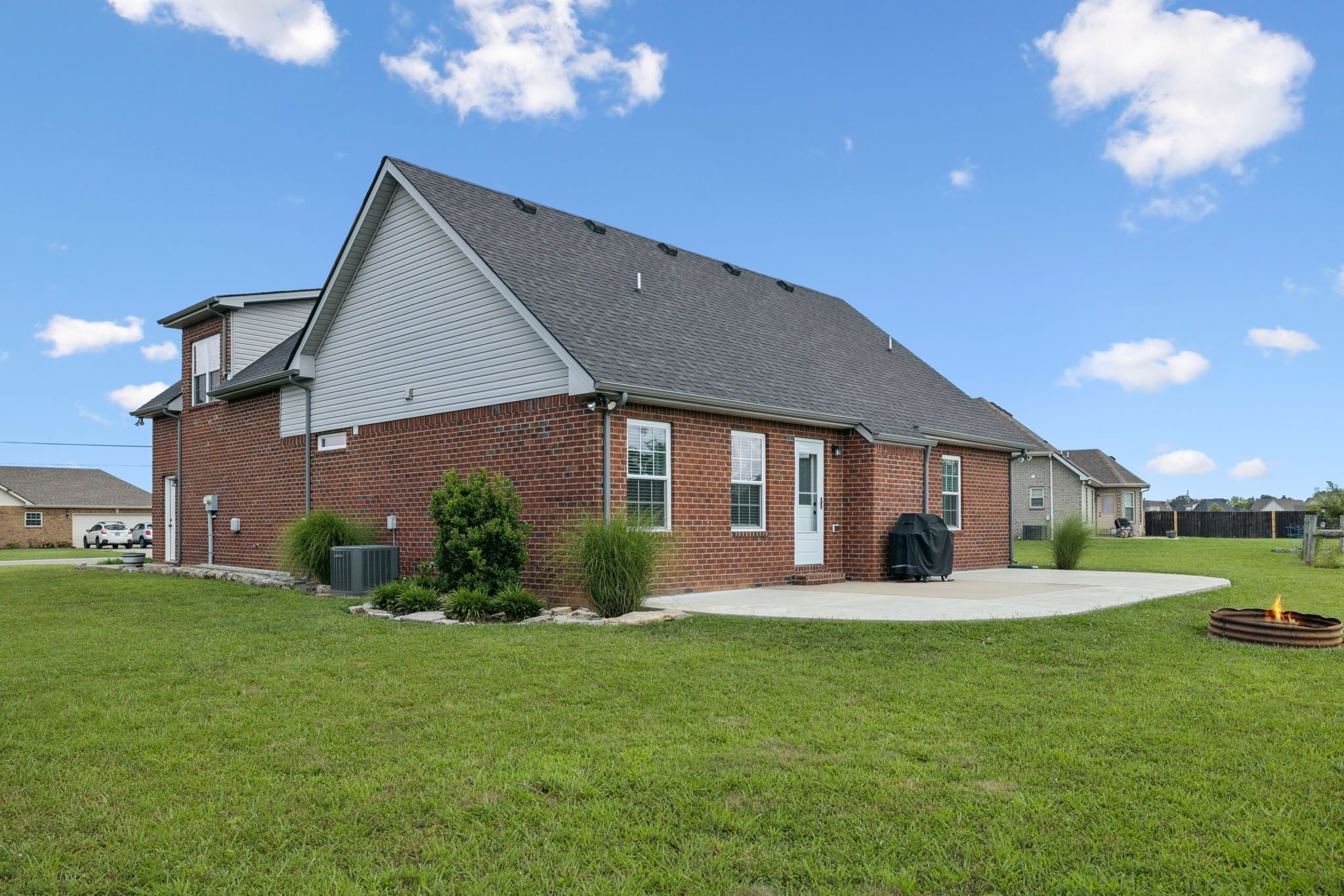 Don’t miss your chance to tour this beautifully maintained 3-bedroom, 2-bath home with a spacious bonus room—perfect as a 4th bedroom, home office, or playroom! You’ll love the open, split-bedroom floor plan, designed for both everyday comfort and effortless entertaining. The living room features soaring 12-foot ceilings, a cozy gas fireplace, and engineered wood flooring, all complemented by neutral paint tones throughout. The kitchen is both stylish and functional, offering granite countertops, a breakfast bar, stainless steel appliances, and a generous pantry. All bedrooms are conveniently located on the main level, including the spacious primary suite with a tray ceiling, recessed lighting, and a private en-suite bath. The upstairs bonus room includes access to a floored attic, providing additional storage space. Step outside to enjoy the oversized concrete patio, ideal for grilling and gathering with friends and family—all overlooking peaceful farmland with no backyard neighbors. Bonus: No city taxes! This one truly checks all the boxes—schedule your private showing today!