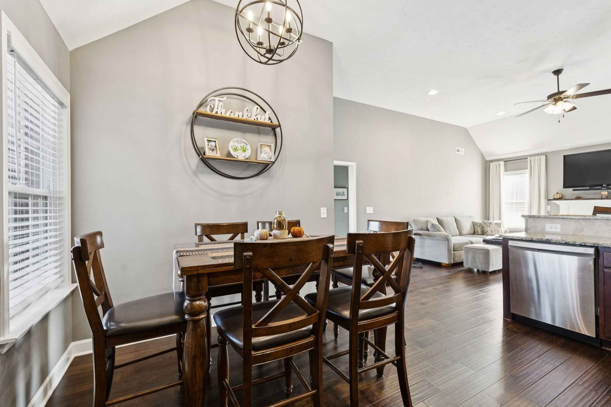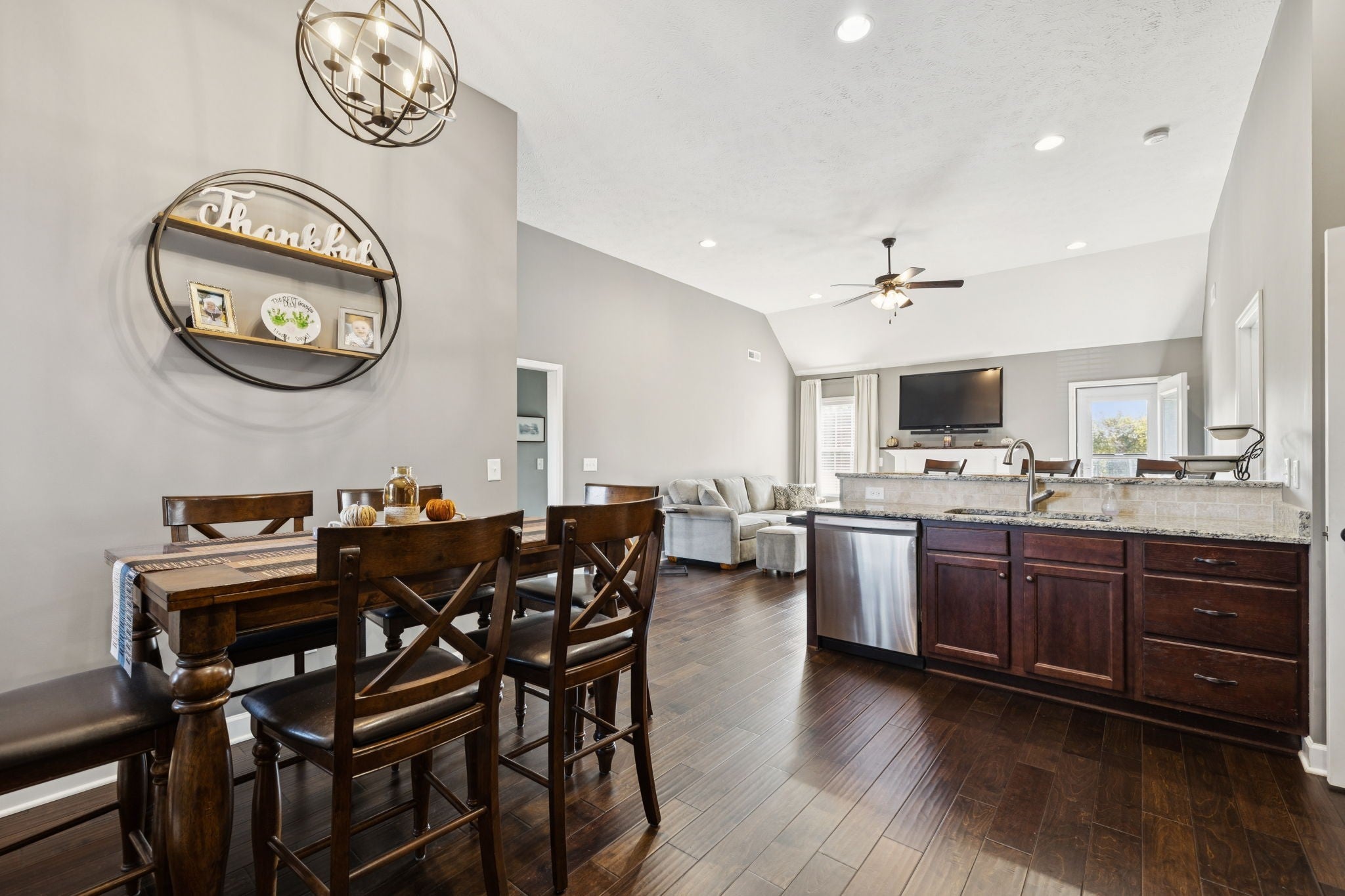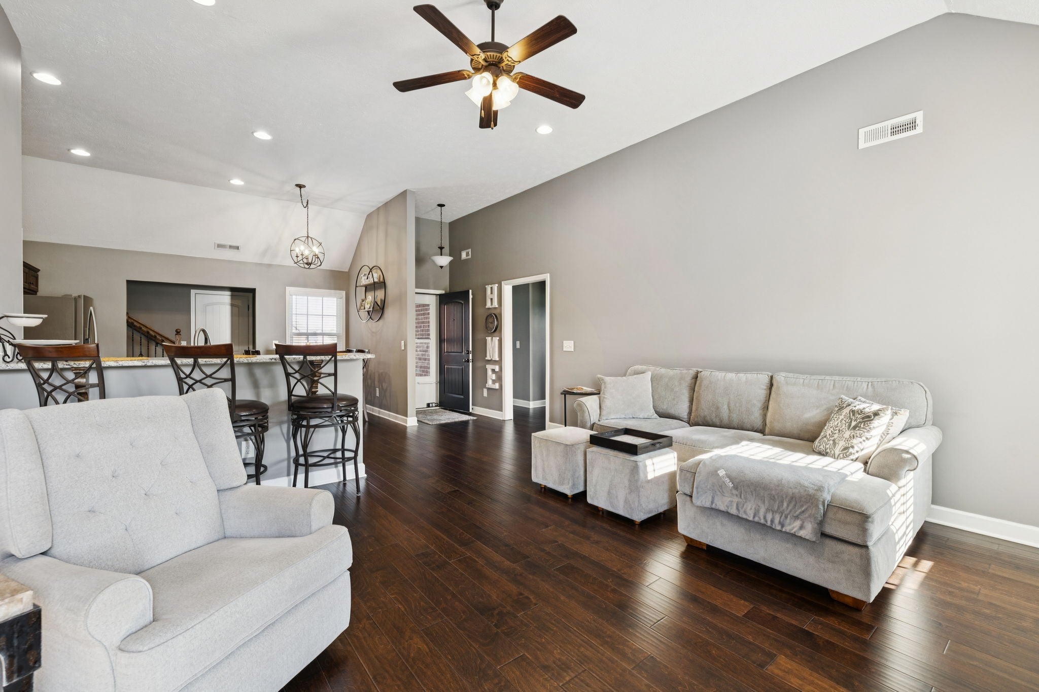 Don’t miss your chance to tour this beautifully maintained 3-bedroom, 2-bath home with a spacious bonus room—perfect as a 4th bedroom, home office, or playroom! You’ll love the open, split-bedroom floor plan, designed for both everyday comfort and effortless entertaining. The living room features soaring 12-foot ceilings, a cozy gas fireplace, and engineered wood flooring, all complemented by neutral paint tones throughout. The kitchen is both stylish and functional, offering granite countertops, a breakfast bar, stainless steel appliances, and a generous pantry. All bedrooms are conveniently located on the main level, including the spacious primary suite with a tray ceiling, recessed lighting, and a private en-suite bath. The upstairs bonus room includes access to a floored attic, providing additional storage space. Step outside to enjoy the oversized concrete patio, ideal for grilling and gathering with friends and family—all overlooking peaceful farmland with no backyard neighbors. Bonus: No city taxes! This one truly checks all the boxes—schedule your private showing today!
