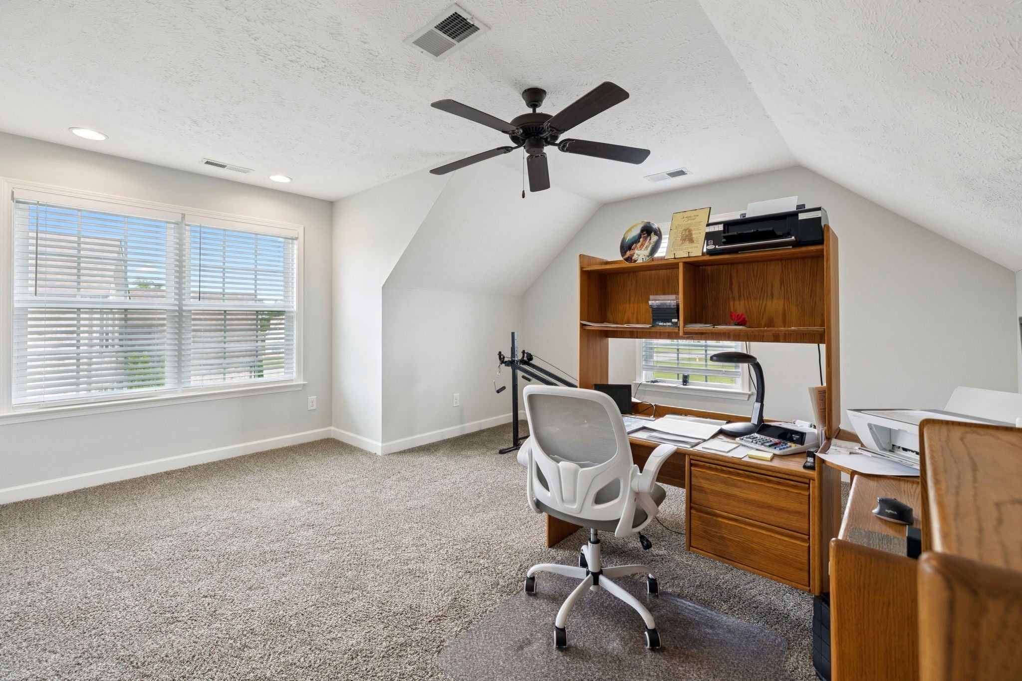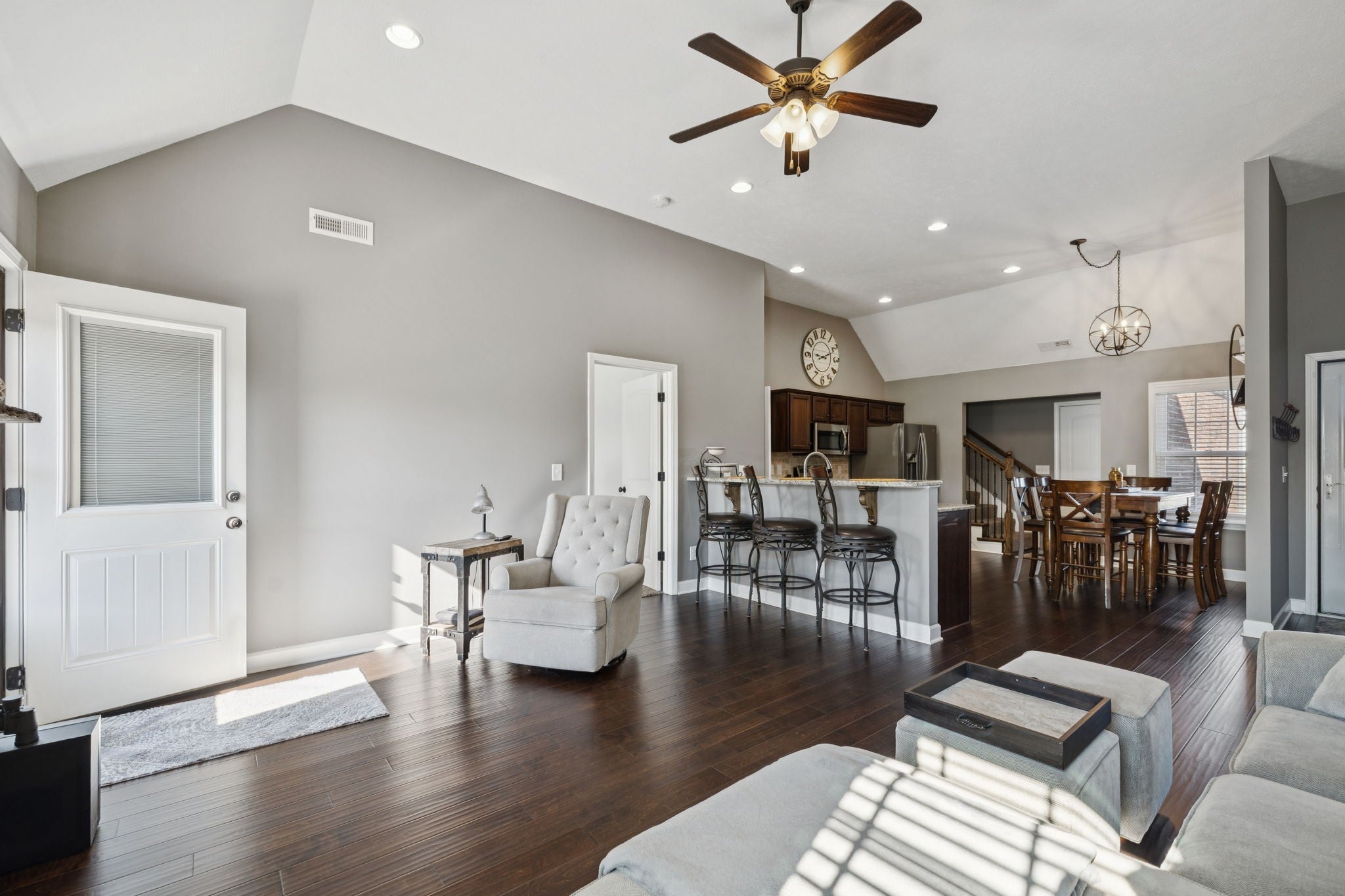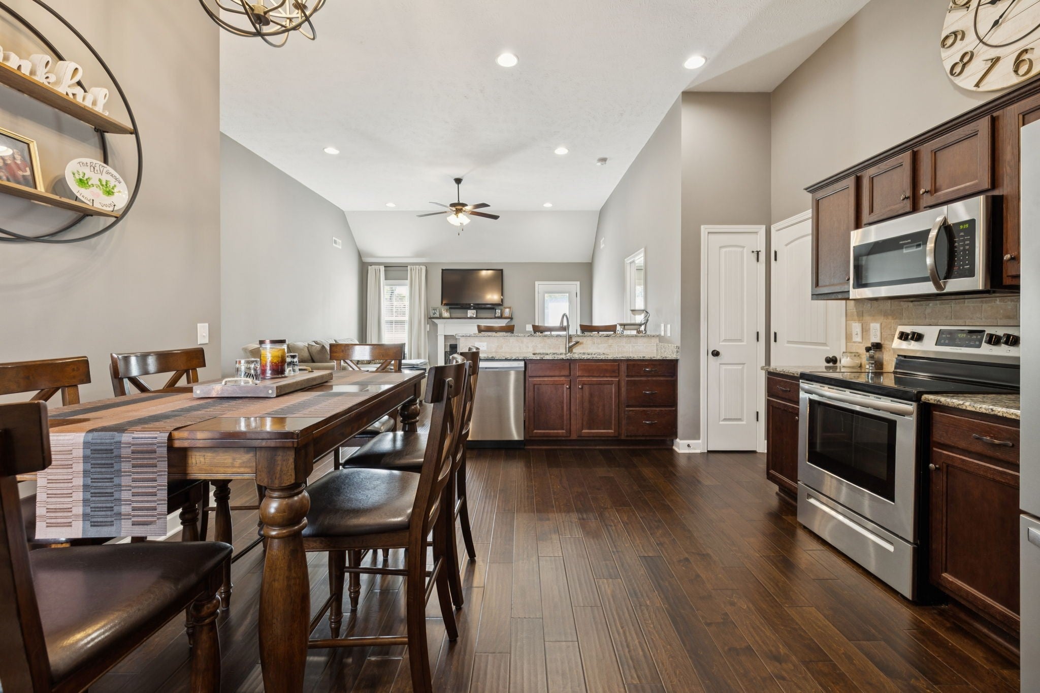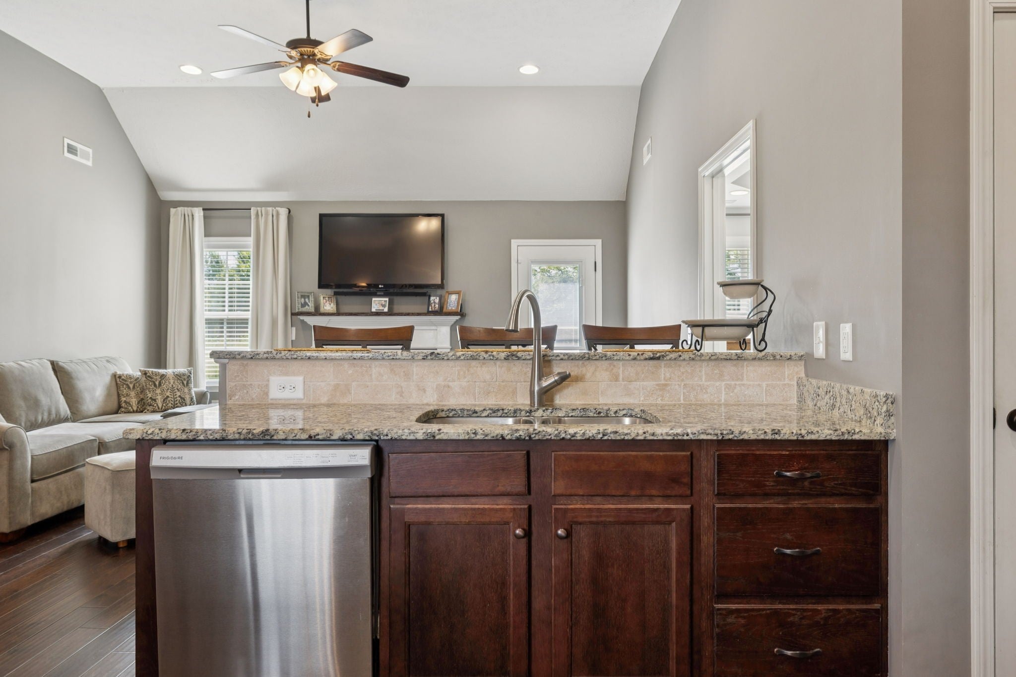 Don’t miss your chance to tour this beautifully maintained 3-bedroom, 2-bath home with a spacious bonus room—perfect as a 4th bedroom, home office, or playroom! You’ll love the open, split-bedroom floor plan, designed for both everyday comfort and effortless entertaining. The living room features soaring 12-foot ceilings, a cozy gas fireplace, and engineered wood flooring, all complemented by neutral paint tones throughout. The kitchen is both stylish and functional, offering granite countertops, a breakfast bar, stainless steel appliances, and a generous pantry. All bedrooms are conveniently located on the main level, including the spacious primary suite with a tray ceiling, recessed lighting, and a private en-suite bath. The upstairs bonus room includes access to a floored attic, providing additional storage space. Step outside to enjoy the oversized concrete patio, ideal for grilling and gathering with friends and family—all overlooking peaceful farmland with no backyard neighbors. Bonus: No city taxes! This one truly checks all the boxes—schedule your private showing today!
