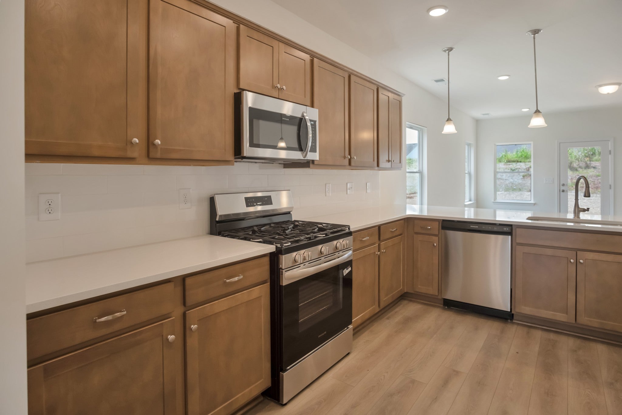 - Gas Oven, Gas Range, Dishwasher, Disposal, Microwave, Stainless Steel Appliance(s)