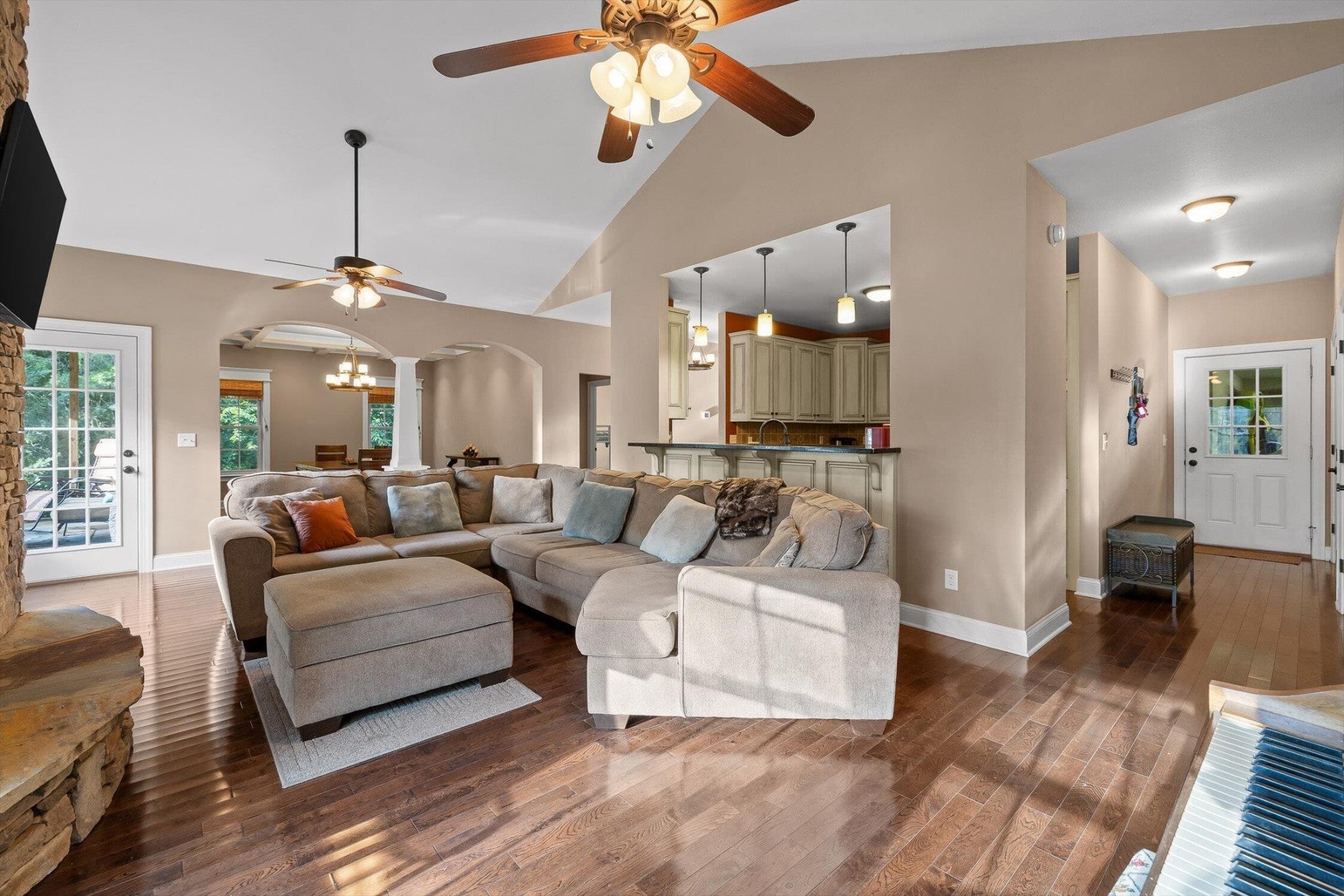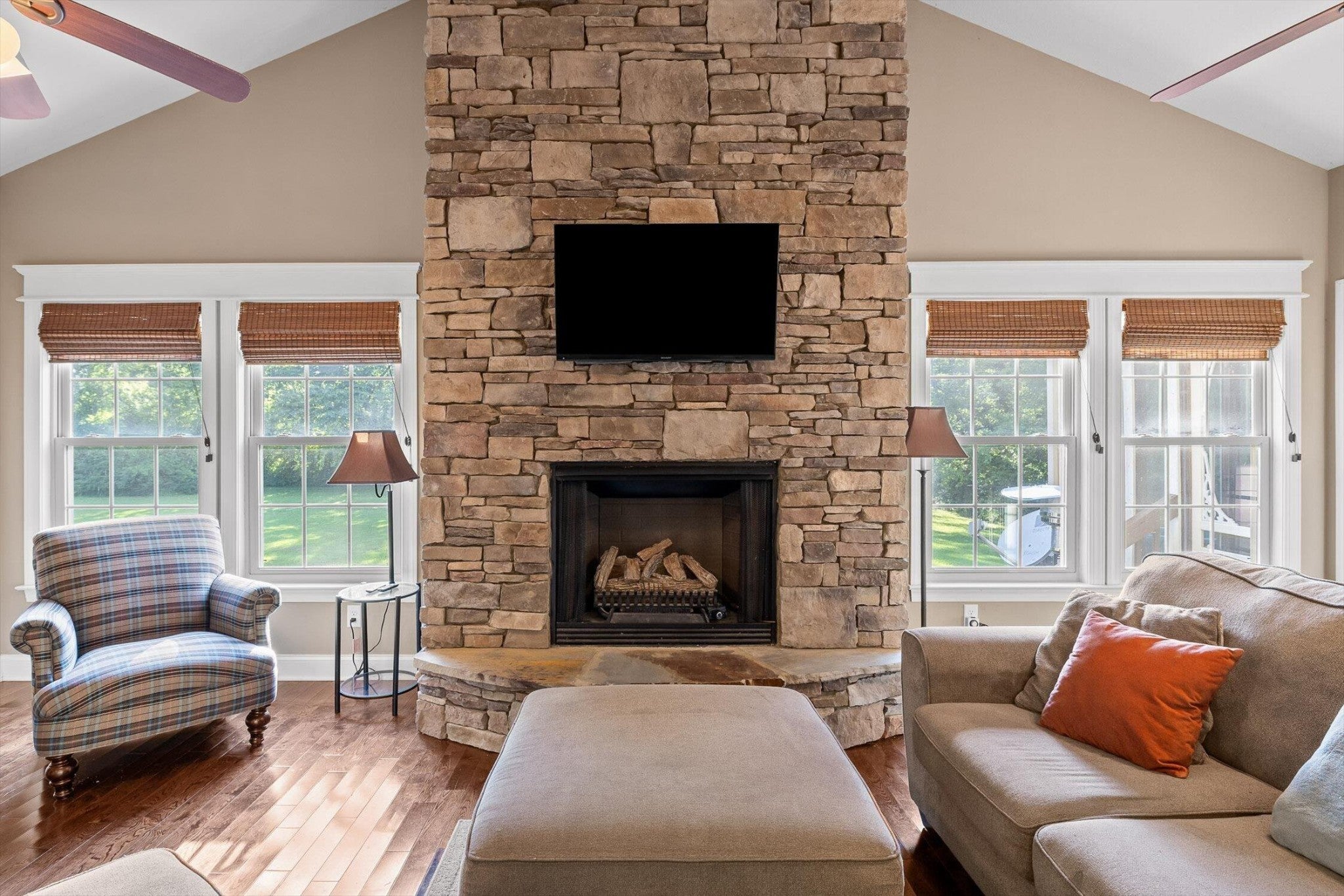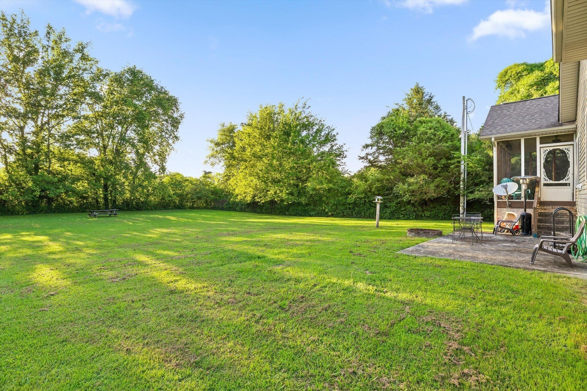 Step into this beautiful 4-bedroom, 2-bathroom home nestled on just under an acre of flat, open land—perfect for enjoying the peace and space of country living. The spacious floorplan welcomes you with vaulted ceilings in the living room, creating an airy and inviting atmosphere centered around a striking stone fireplace, ideal for cozy evenings. The connected kitchen combines the feel of a traditional separate kitchen with the benefits of an open floorplan, maintaining seamless flow into the living space. Just off the kitchen, the dining room offers plenty of room for gatherings and opens to a private screened-in back deck. Overlooking the expansive backyard, the deck is perfect for entertaining or simply relaxing while taking in the view. With room to create your dream outdoor retreat—be it an inground pool, a landscaped hideaway, or a large play space for kids—the possibilities are endless. The primary bedroom is a serene escape with trayed ceilings, a ceiling fan, and abundant natural light. The en-suite primary bathroom offers a spa-like feel with dual vanities, a luxurious soaking tub, and an oversized walk-in shower. A second bedroom is also conveniently located on the main level, while the third bedroom enjoys extra privacy as a bonus room above the garage. Additional features include a two-car garage providing ample storage and parking. Don't miss the chance to make this versatile and spacious property your own—offering both comfort and room to grow in a picturesque setting.