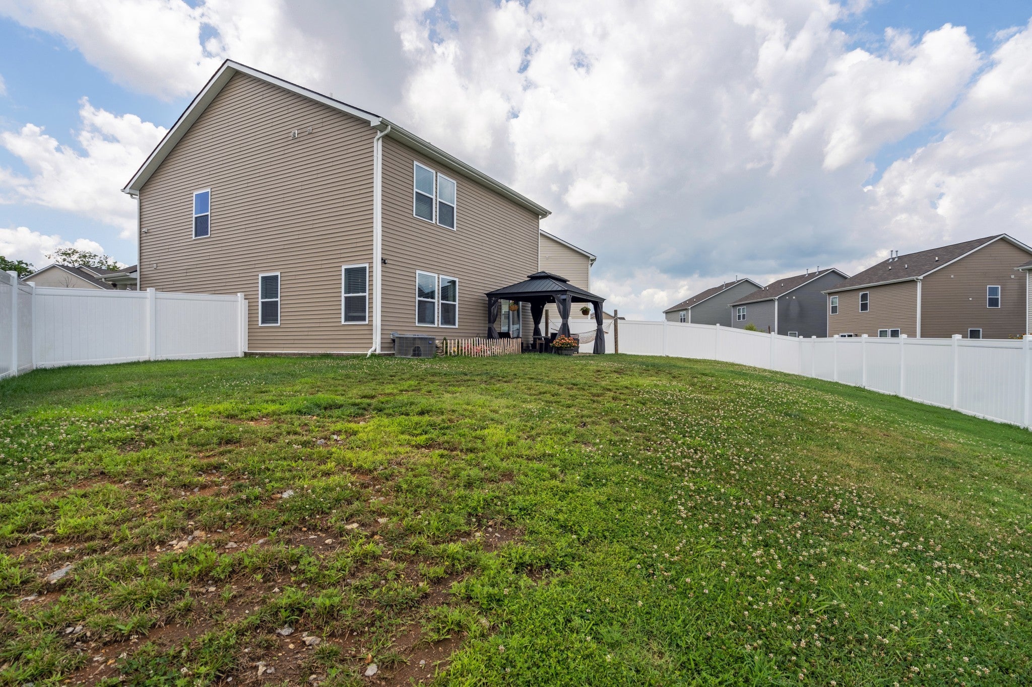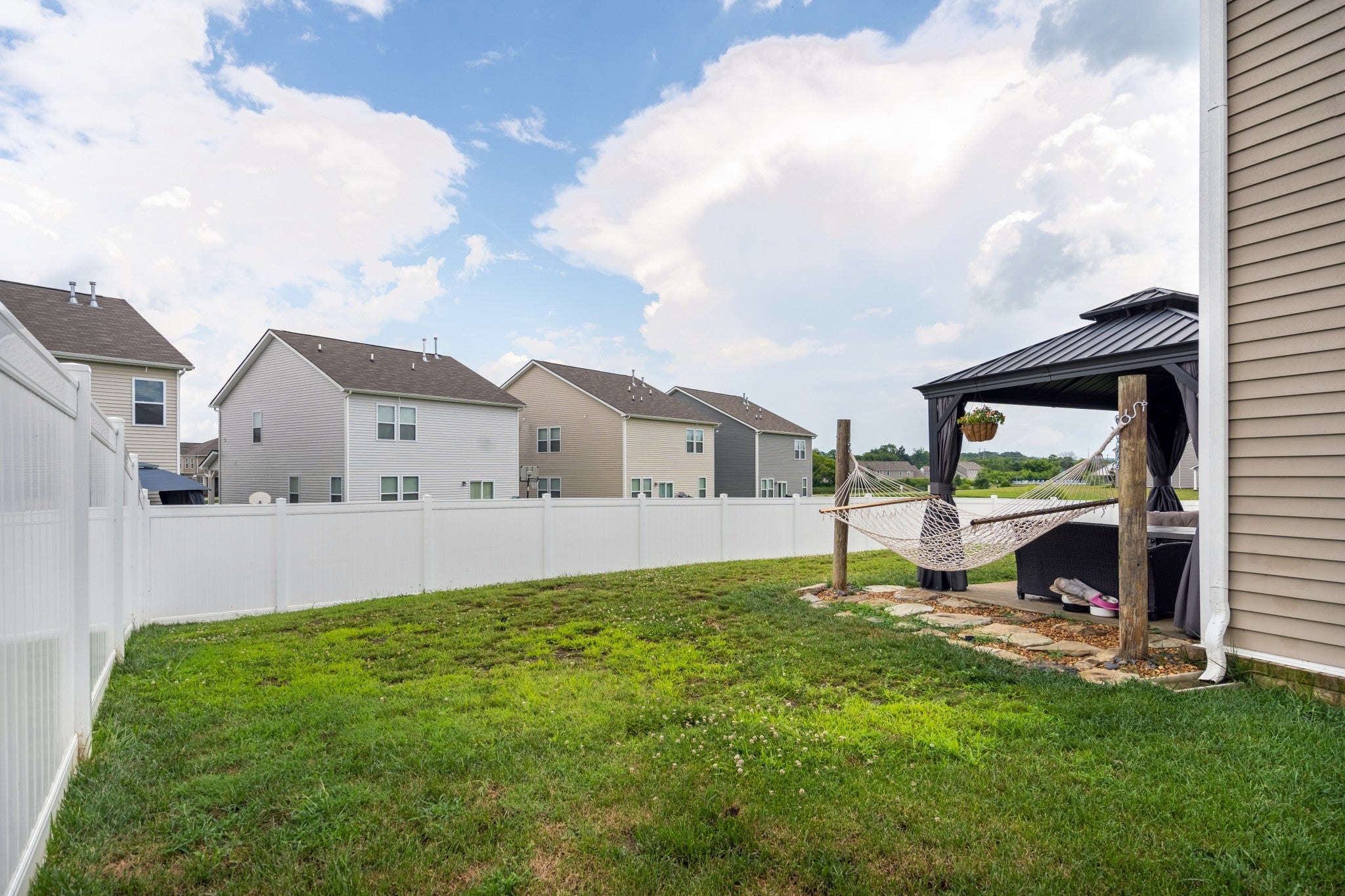 Welcome to this 4 bedroom 2.5 bathroom cul-de-sac home in Vineyard Grove. This home backs up to green space and a nice pond. Spacious floorpan downstairs perfect for entertaining. Laundry room upstairs with all bedrooms to make laundry days easier! Open bonus room upstairs can be used as playroom, family room or office. Master bedroom with double vanity master bath and walk-in-closet. Fenced in back yard with plenty of room to spread out. Gazebo on back patio stays with home offering you a nice covered area to enjoy the outdoors. Very nice pool and covered area when you pull into the neighborhood with an awesome playground. Just 40 minutes to BNA and 10 minutes to the Square in Lebanon with boutique shopping and great restaurants! Please see Virtual Tour in the links below!!