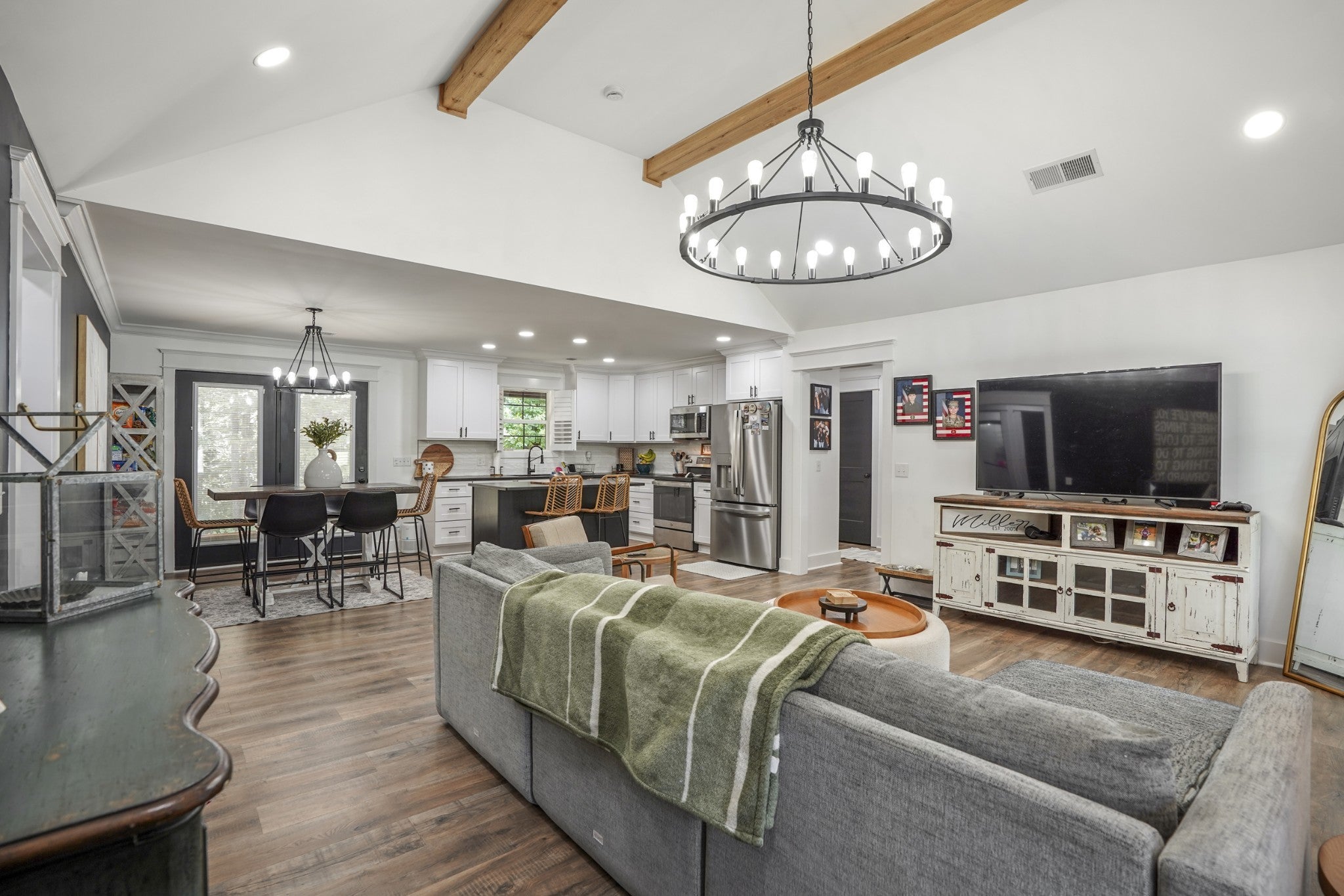Welcome to your beautifully crafted 3-bedroom, 2-bathroom home that offers the perfect blend of elegance and functionality. This beauty in Kendallwood Estates boasts vaulted ceilings and exposed cedar beams in the living room -creating a warm, inviting atmosphere. The master suite is spacious, and its bathroom features a custom tile shower designed for comfort and style.Throughout the home, you find luxury vinyl flooring that adds modern appeal and durability. A flexible bonus room provides endless options—ideal for a home office, playroom, or home gym. At the heart of the home, the kitchen is a true showpiece with sleek leathered granite countertops, combining refined aesthetics with everyday practicality. This home captures the essence of Kendallwood Estates living—where comfort meets sophistication. Located just eight minutes from Cummins Falls State Park and has quick access to I40.