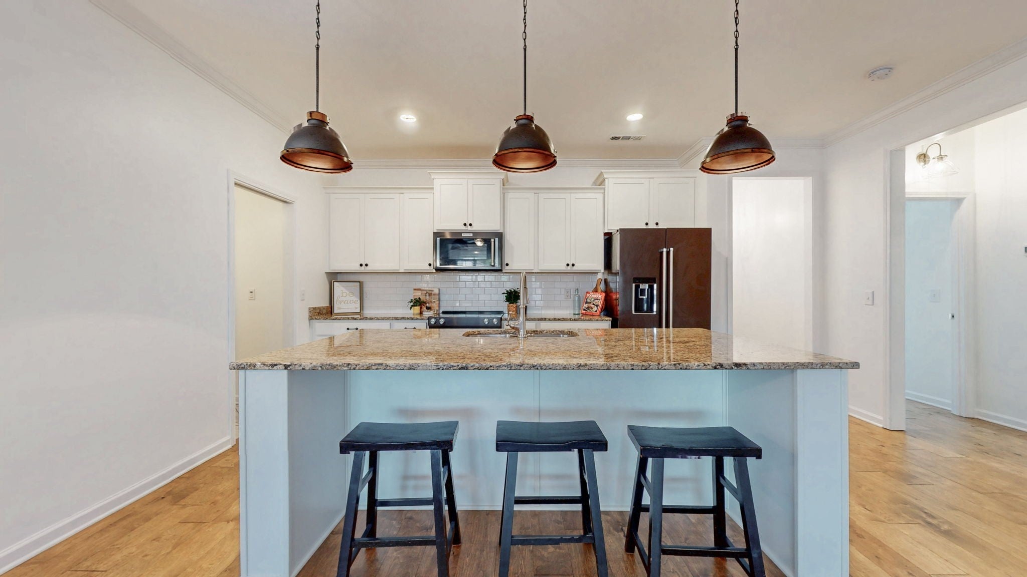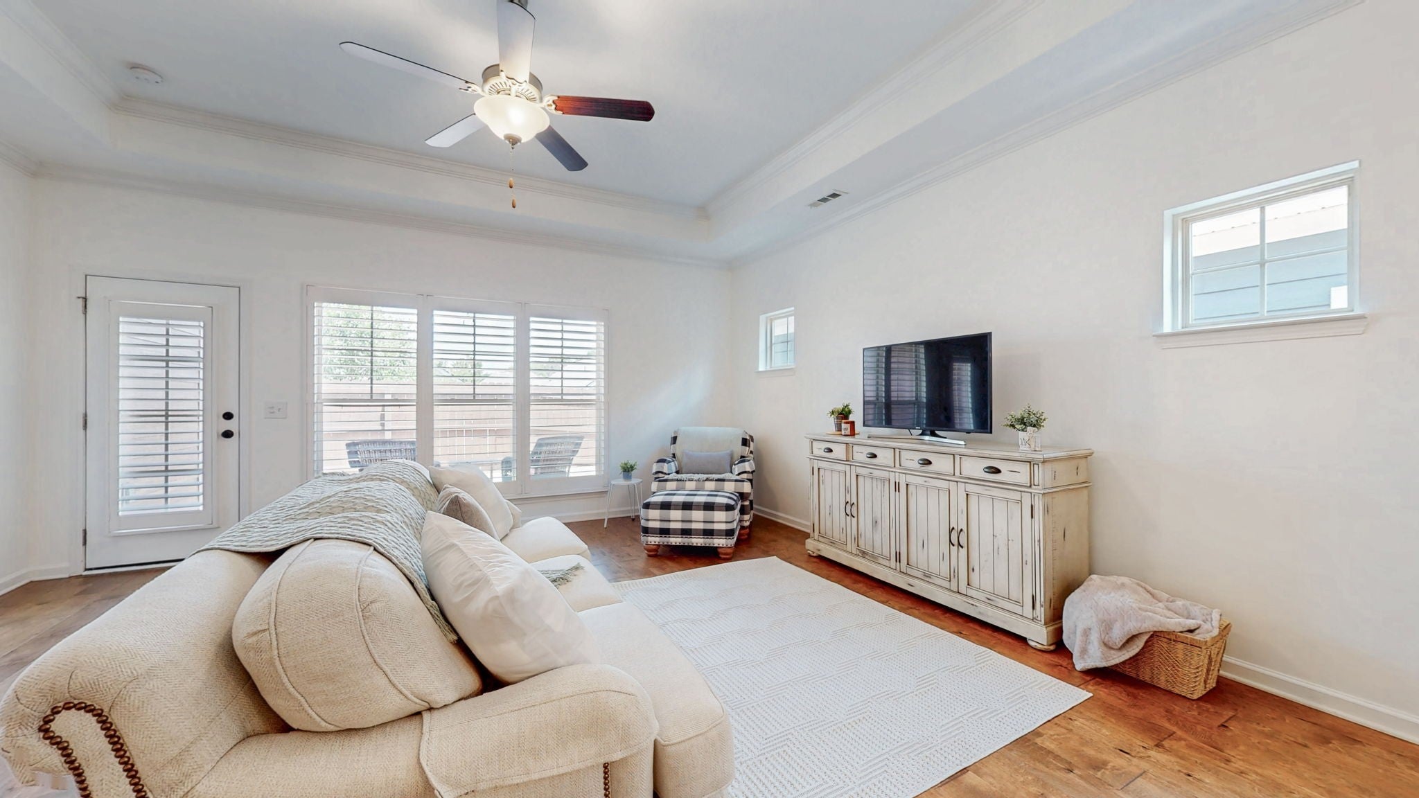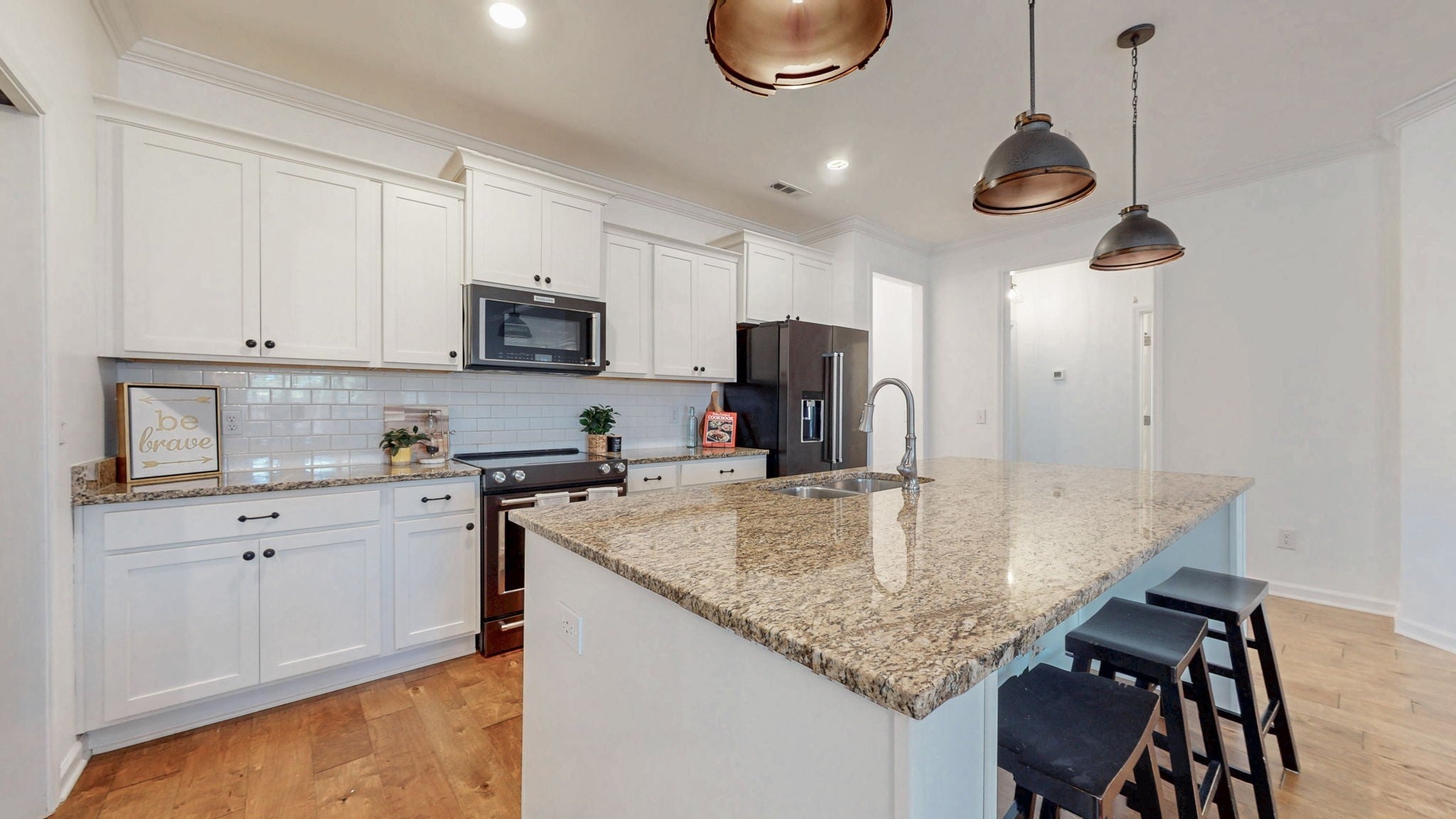 MOTIVATED SELLER NEEDING A BUYER! Like new, TURN KEY all one level beautiful home! Featuring all new fresh paint throughout and beautiful hardwood floors, the open-concept design showcases a stunning kitchen with white cabinetry, granite counters, subway tile backsplash, and modern KitchenAid Pro Series dark stainless steel appliances. You'll also enjoy energy-efficient appliances and a whole-house salt water softener/filtration, making life that much easier (and greener). The thoughtful split floor plan places the owner's suite on one side, while the two additional bedrooms and bathroom occupy their own separate wing for maximum privacy. Seamless indoor-outdoor living shines with the covered back patio overlooking a private fenced yard with elegant paver details. Additional highlights include: custom built-in wood blinds, convenient laundry room with butcher block and built-in storage, 2-car garage, and weekly lawn service for front and back yards during mowing season. The home is also wired for a security system if your client wants to have one setup. All appliances stay! Located in sought-after Arden Village, this move-in ready gem offers the perfect blend of modern comfort and convenience. Price reduced!