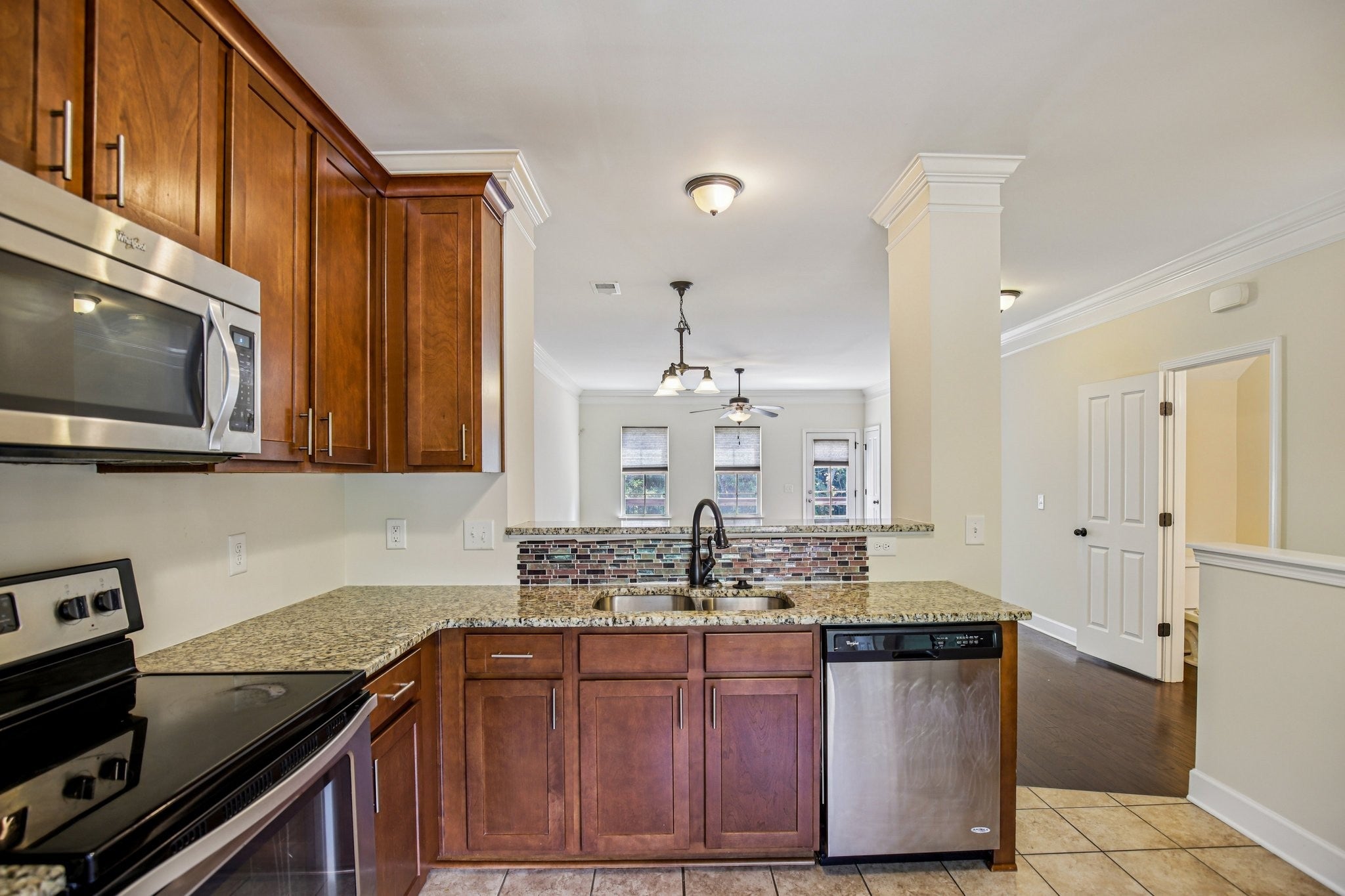 - Electric Oven, Electric Range, Dishwasher, Disposal, Microwave, Stainless Steel Appliance(s)