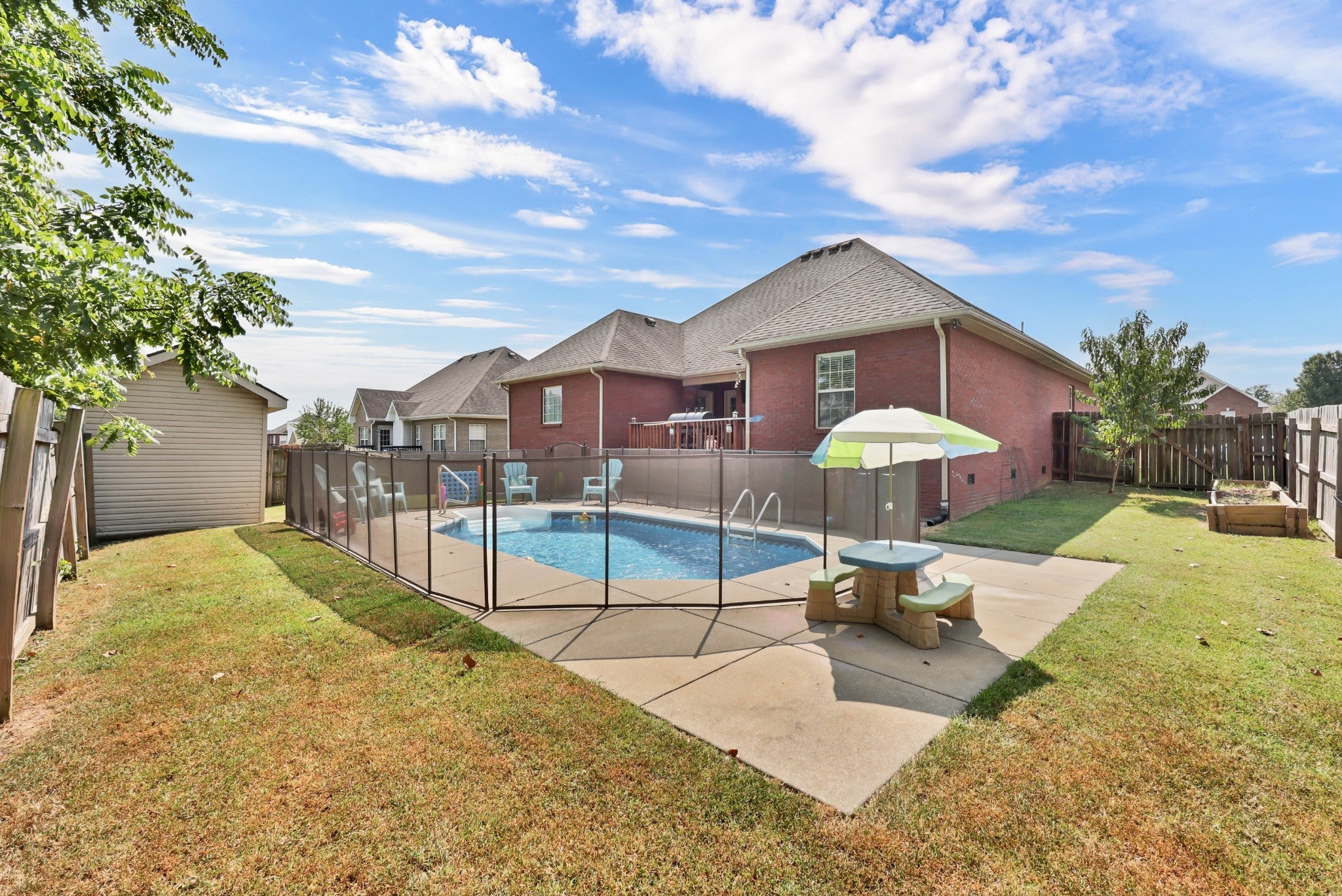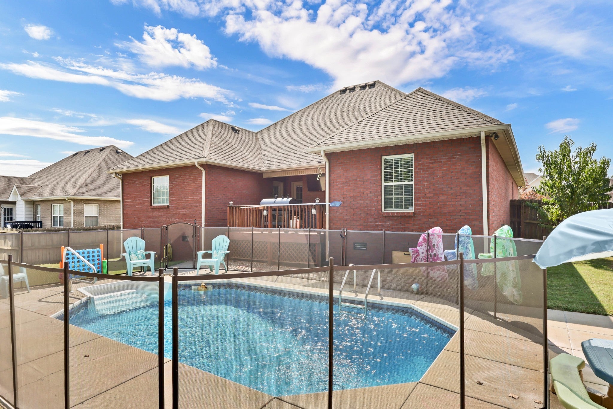 All-Brick Ranch with In-Ground Pool | 4 Bed, 2 Bath plus a bonus room. This beautiful all-brick ranch checks every box! Featuring 4 spacious bedrooms, 2 full bathrooms and a bonus room with outdoor access. This home offers an open-concept layout perfect for entertaining. The formal dining room adds a touch of elegance, while the gorgeous flooring flows seamlessly throughout. The kitchen boasts ample counter and cabinet space—ideal for meal prep and everyday living. Step outside and enjoy your own backyard oasis with a sparkling in-ground pool, perfect for cooling off on hot summer days. The fully fenced yard offers privacy and plenty of space to relax or play. Located in a highly sought-after neighborhood with sidewalks, underground utilities, great location with easy access to schools, shopping, and more. Professional photos coming soon.