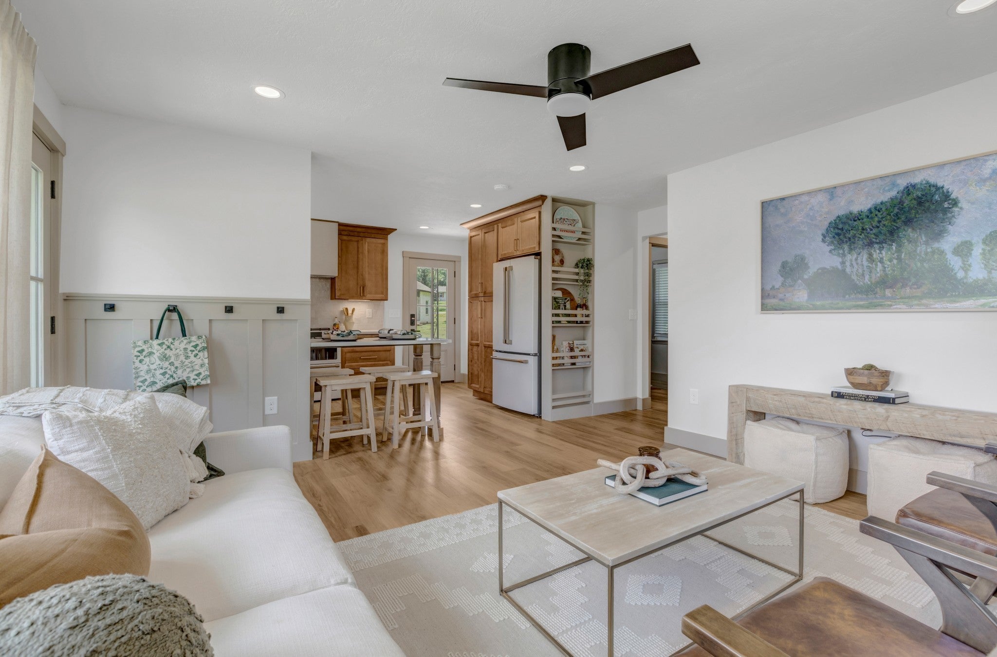Welcome to your Charming Turn-Key Cottage in one of Williamson County’s most sought-after areas – College Grove! This beautifully renovated home sits on a spacious half-acre lot with NO HOA, offering endless possibilities for your lifestyle. Two separate deeded entrances! Whether you envision a mini farm with chickens or goats, a sprawling garden, a studio, garage, or shop, this property gives you the freedom to make it your own! Step inside this meticulously updated home featuring all-new electrical systems and panel for peace of mind. The high-end kitchen is a chef’s delight, boasting stunning quartz countertops, a premium Café appliance package with a smart double oven range, a working sink, soft-close cabinetry, and a peninsula w/ seating for four – perfect for casual dining or entertaining. Every detail has been thoughtfully designed for both style and functionality. The unique “Bunkroom” is a standout feature, complete with a built-in twin XL bed, oversized storage drawers, built-in shelving, and a closet – perfect for guests, kids, or a cozy retreat. The spacious bathroom impresses with a double vanity and a large walk-in shower. Stacking washer and dryer are included! LED lighting throughout and a secure keypad deadbolt entry. Concrete back patio is ideal for dining or lounging, and gather around the gravel fire pit area for peaceful evenings of entertaining or relaxation. A garden shed is included for outdoor storage. Less than 1 mile to College Grove elementary, ball fields/park, community library, new planned park. Minutes to The Grove, The new planned development at Triune, & I-840. Don’t miss this rare opportunity to own a move-in-ready cottage with modern upgrades, a spacious lot, and the freedom to craft your ideal lifestyle in College Grove.