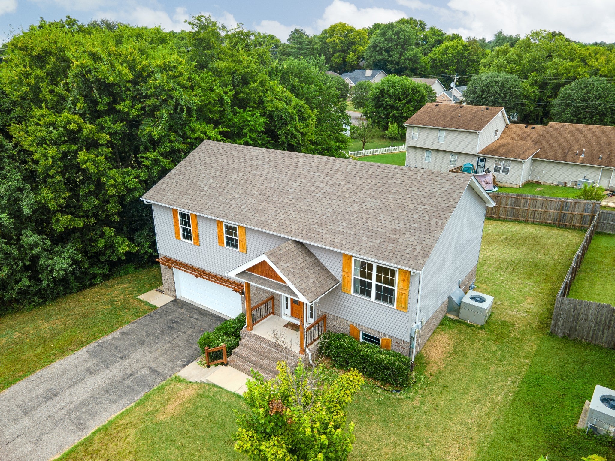 No HOA for this address! 2 primary suites! Welcome to this spacious 4 bed, 3 full bath home situated on nearly half an acre featuring beautiful flooring throughout—no carpet! The inviting dining room features wainscoting and crown molding, setting the stage for memorable gatherings. The galley-style kitchen is equipped with solid oak cabinets, recessed lighting, a corner pantry, separate coffee bar/prep area, and all stainless steel appliances included. The open-concept living area is highlighted by a stone feature wall and offers direct access to the spacious deck—perfect for entertaining or relaxing while overlooking the almost fully fenced backyard. This home offers two primary bedrooms, each with its own ensuite bath ideal for multi-generational living or guests. Three bedrooms are located on the main level, while the fourth bedroom downstairs offers flexibility and could be used as a separate den/living area, man cave, home gym, or office. Additional features include: Oversized laundry room off the garage, perfect for a mudroom/drop zone, Walk-out 2-car garage with epoxy floors, Low-maintenance landscaping. No HOA! Don’t miss this opportunity to own a spacious, move-in-ready home with room to grow in a fantastic location. Schedule your showing today!