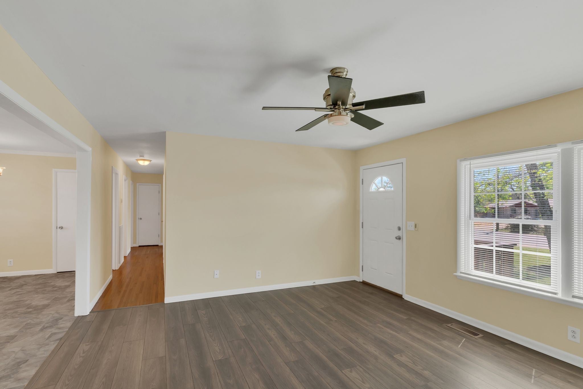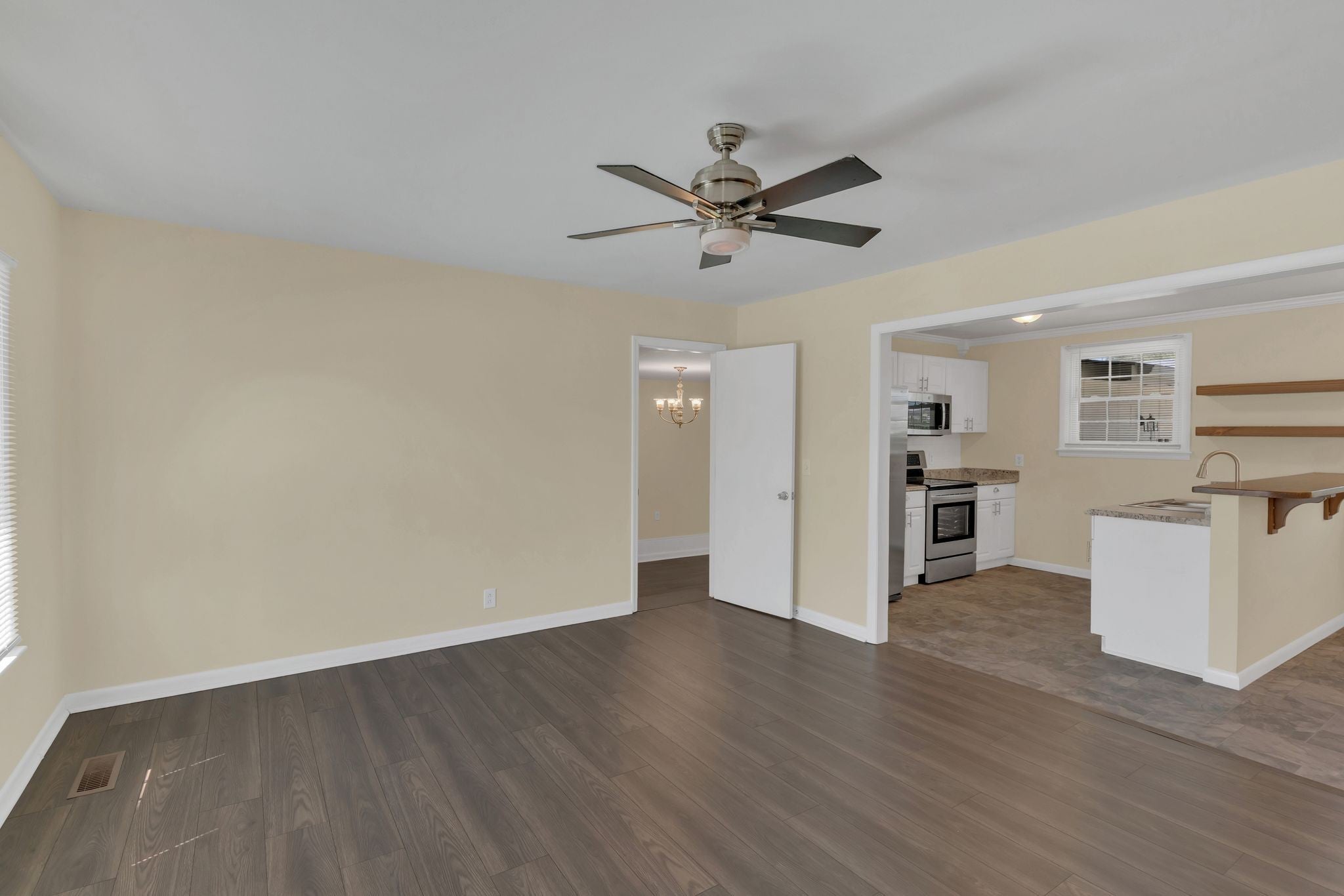 This beautifully renovated one-level home is perfectly situated on a generous corner lot, offering excellent curb appeal. A brand-new architectural roof, new shutters, and well-insulated Pella windows enhance both style and energy efficiency. The welcoming front porch features new handrails, adding to the home's inviting character. Inside, the kitchen shines with new stainless steel appliances, while the bathrooms have been tastefully updated with modern fixtures. Most of the flooring throughout the home is new, contributing to a fresh, clean feel. This move-in-ready home combines thoughtful updates with timeless charm—don’t miss the opportunity to make it yours!