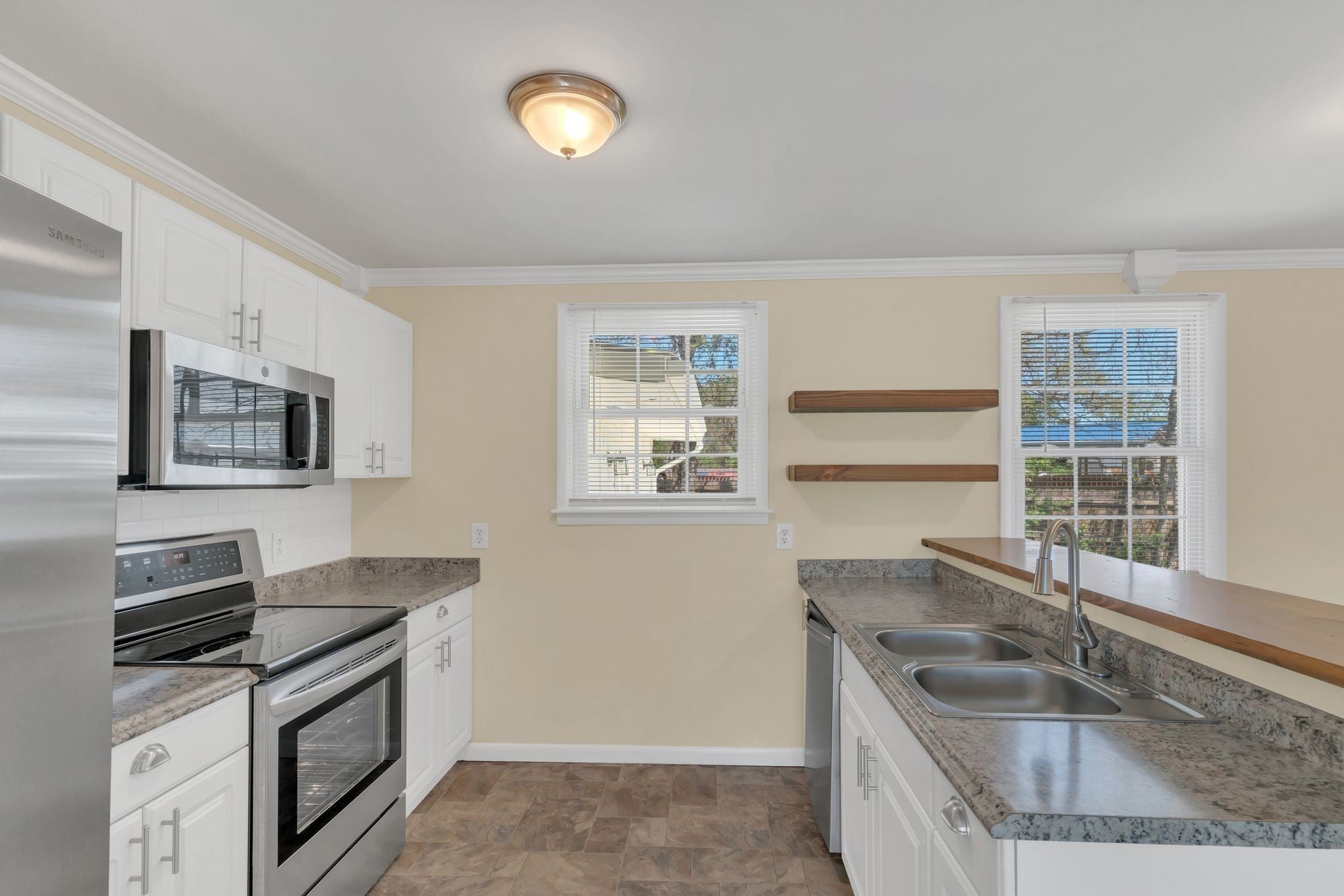 - Electric Oven, Electric Range, Dishwasher, Microwave, Refrigerator, Stainless Steel Appliance(s)