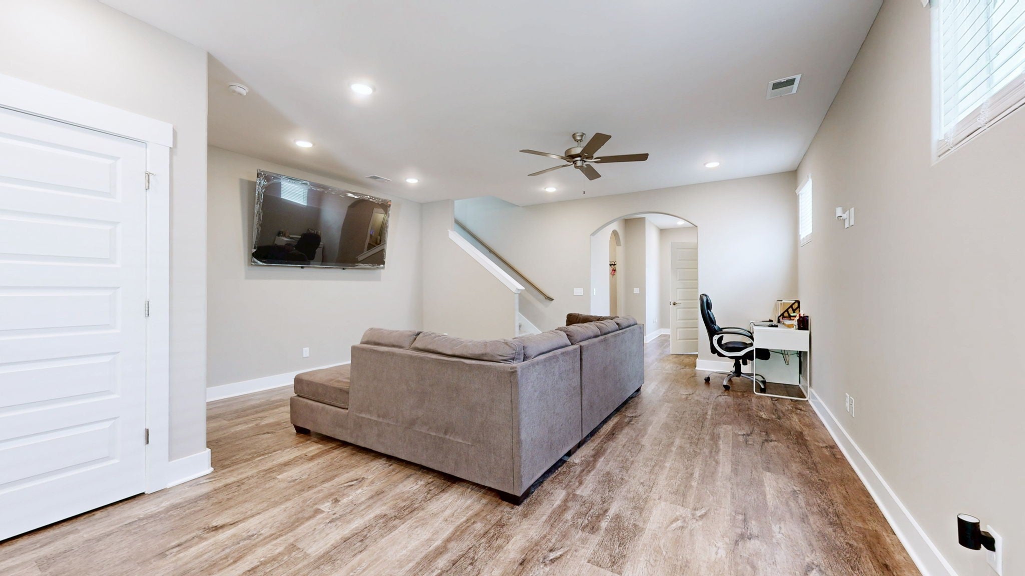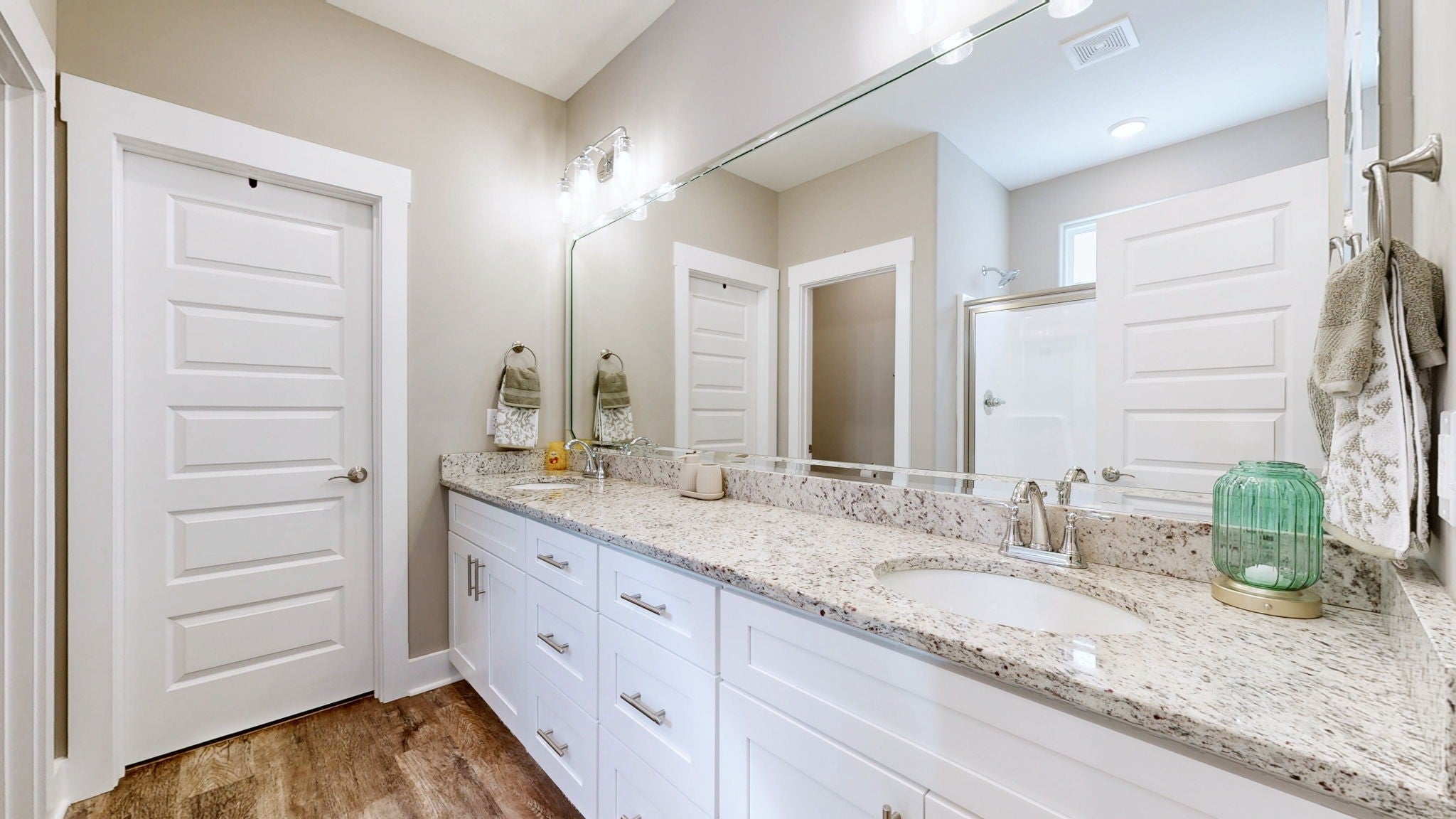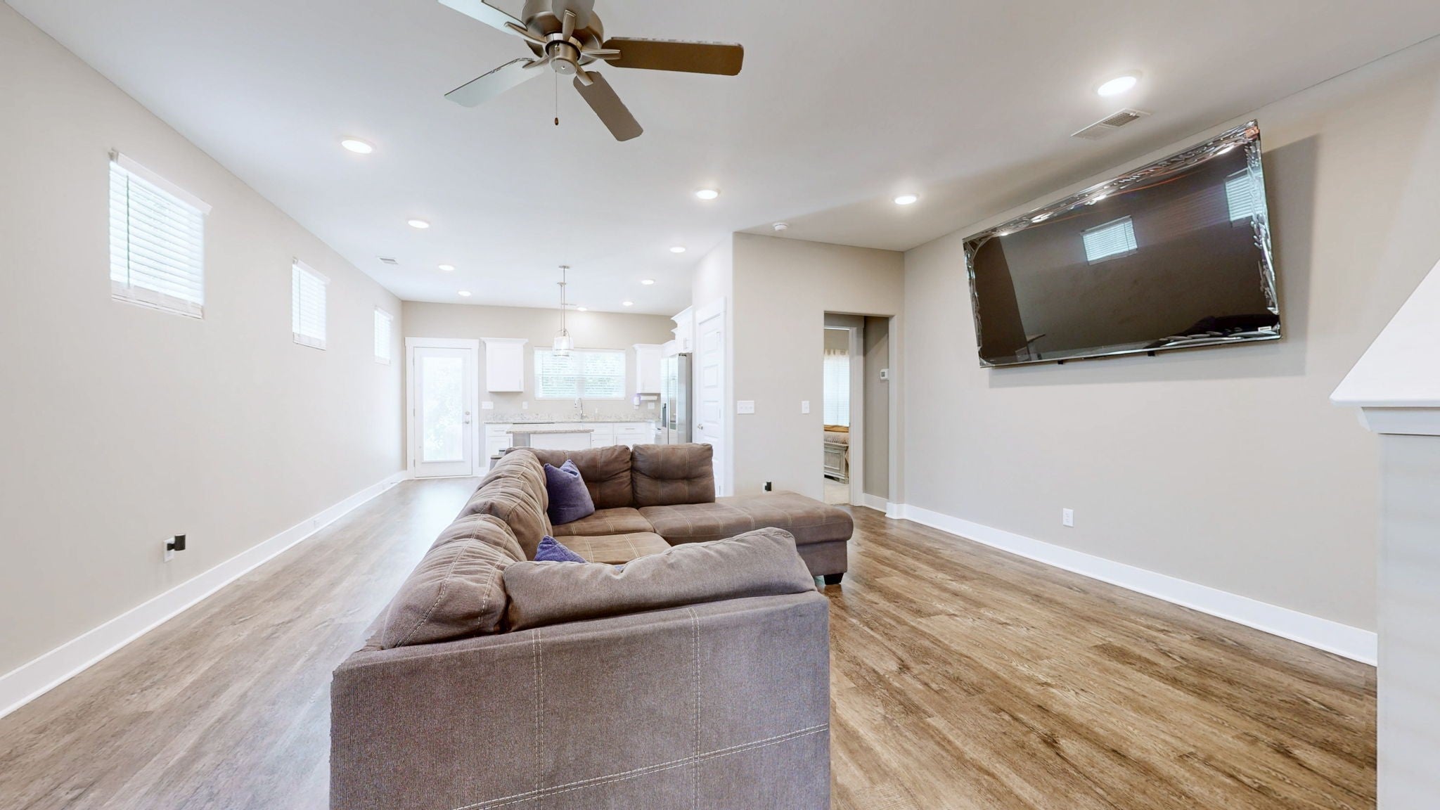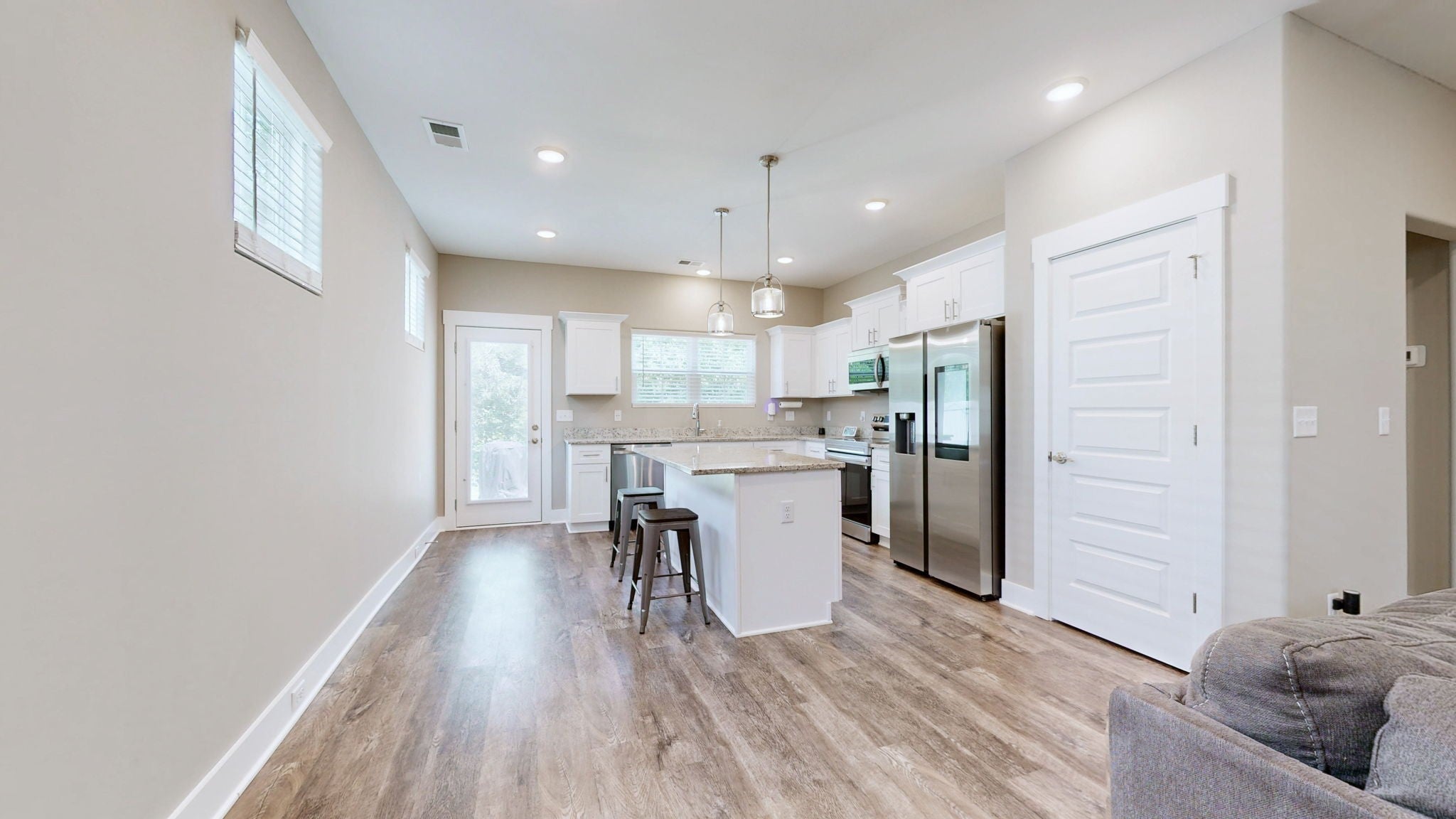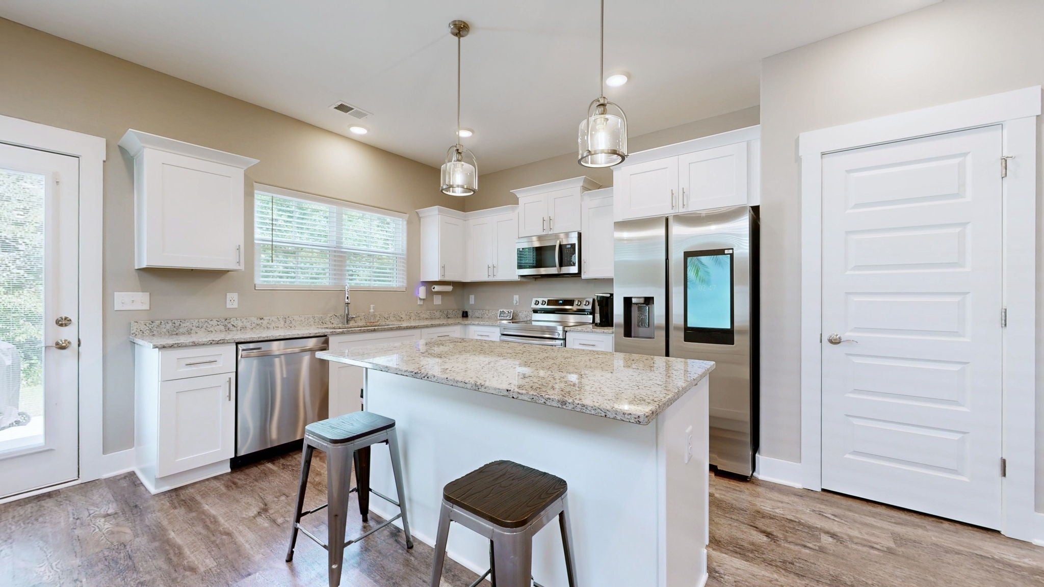Nestled on a quiet lot that backs up to a peaceful treeline, this brick and Hardie plank home is ready for a quick closing. Located just two miles from I-24, it offers the perfect blend of modern convenience and suburban tranquility. The kitchen is a chef's delight, complete with stunning granite countertops and a full suite of stainless steel Samsung appliances, including a Family Hub refrigerator. The home is designed for modern living with luxury flooring throughout, plentiful recessed lighting, hard-wired internet and cable outlets, Nest doorbell, WiFi garage opener and USB charging ports. The primary bedroom is conveniently located on the main level, and a huge walk-in attic provides exceptional storage space. The spacious attic offers endless possibilities, perfect for a bonus room, extra bedroom, or flex space.