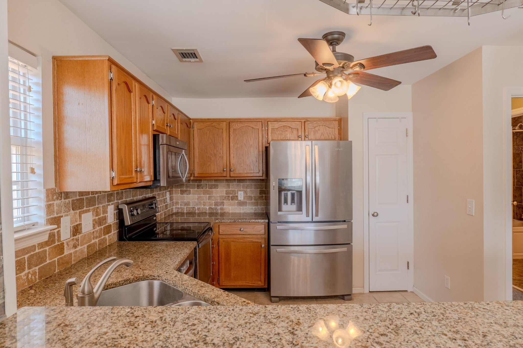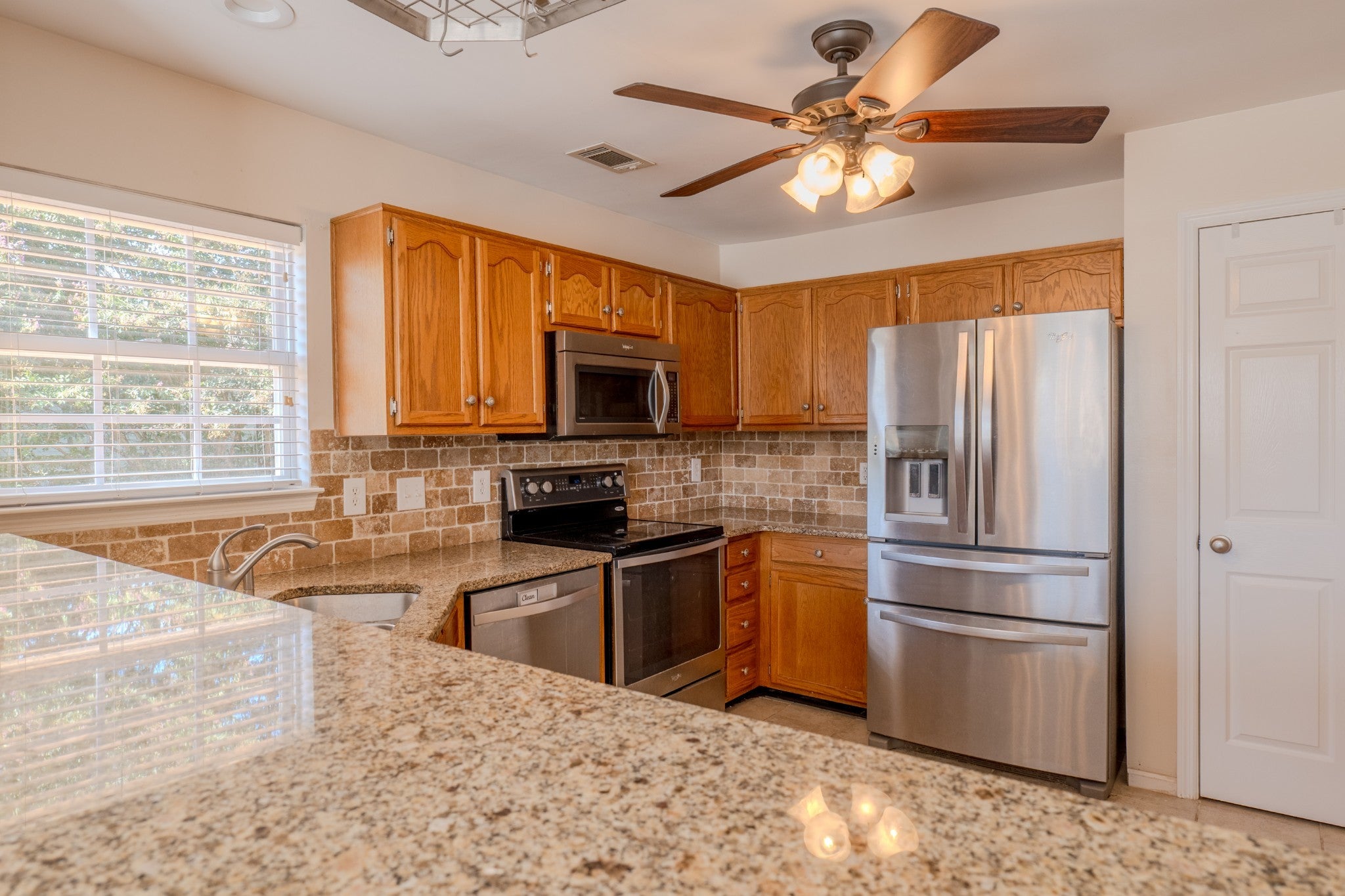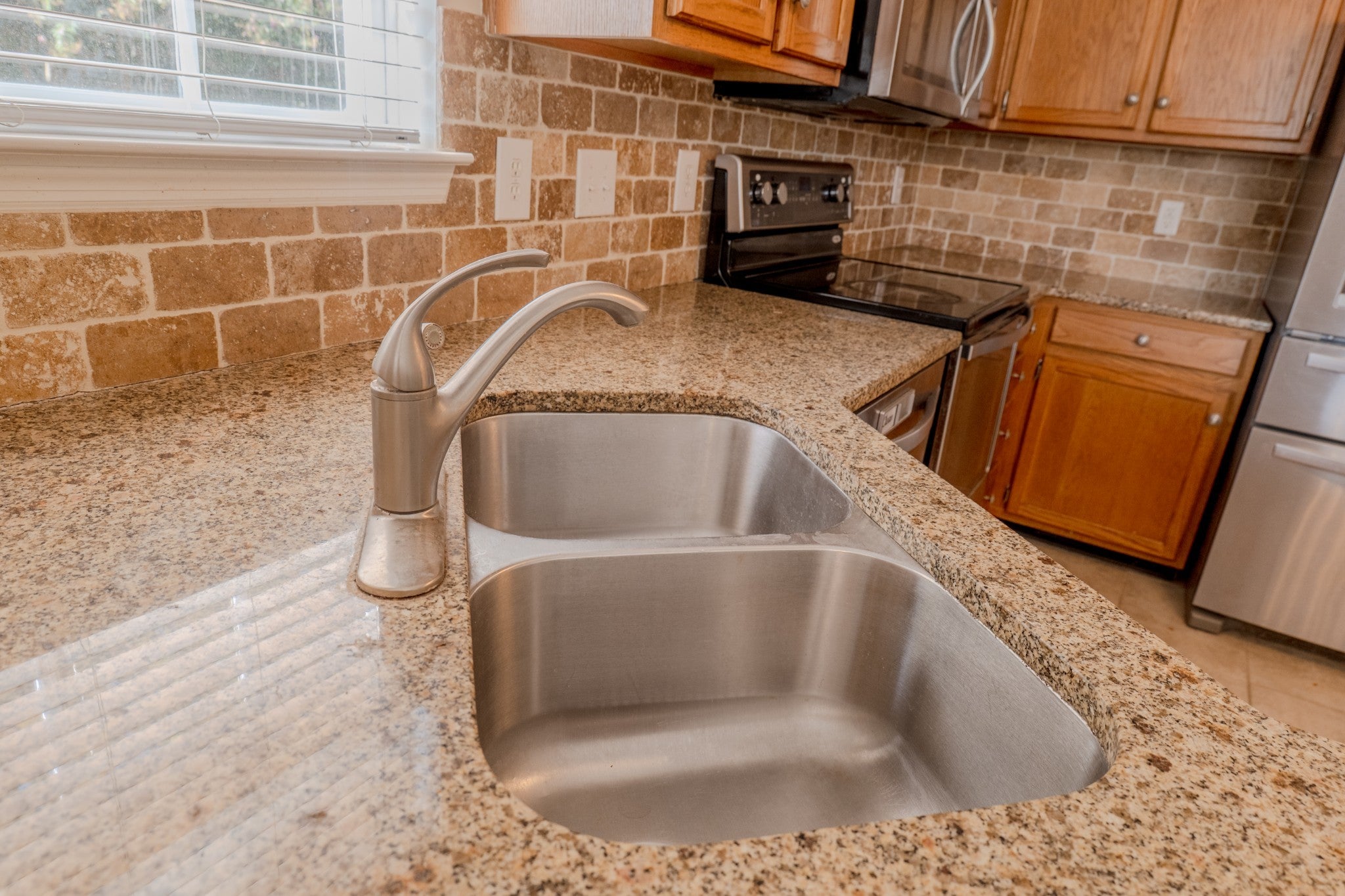 - Electric Range, Dishwasher, Microwave, Refrigerator, Stainless Steel Appliance(s)