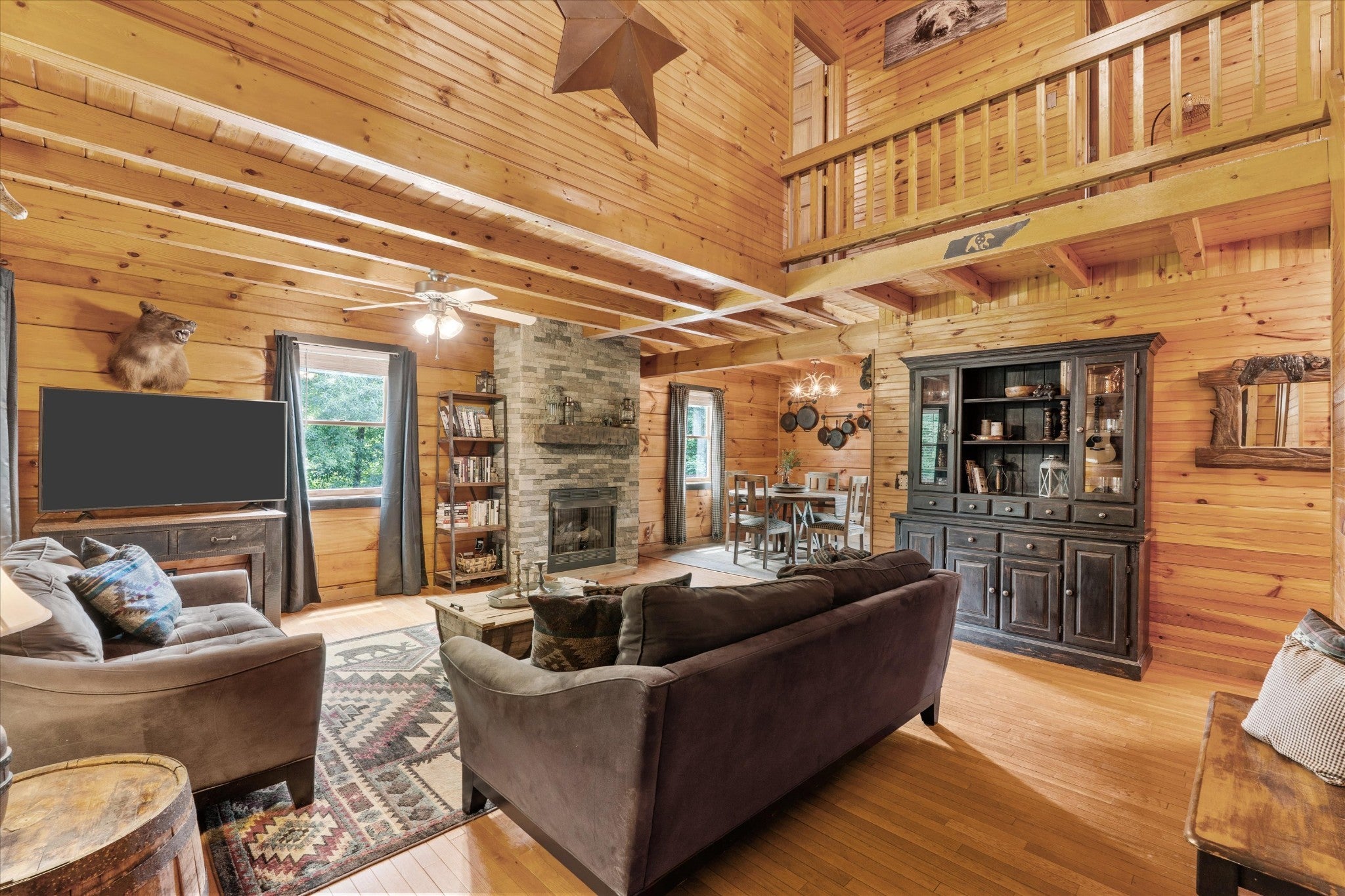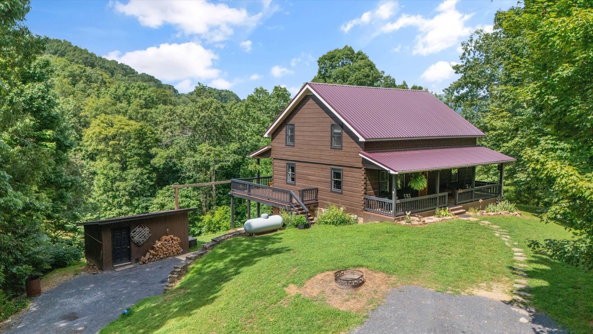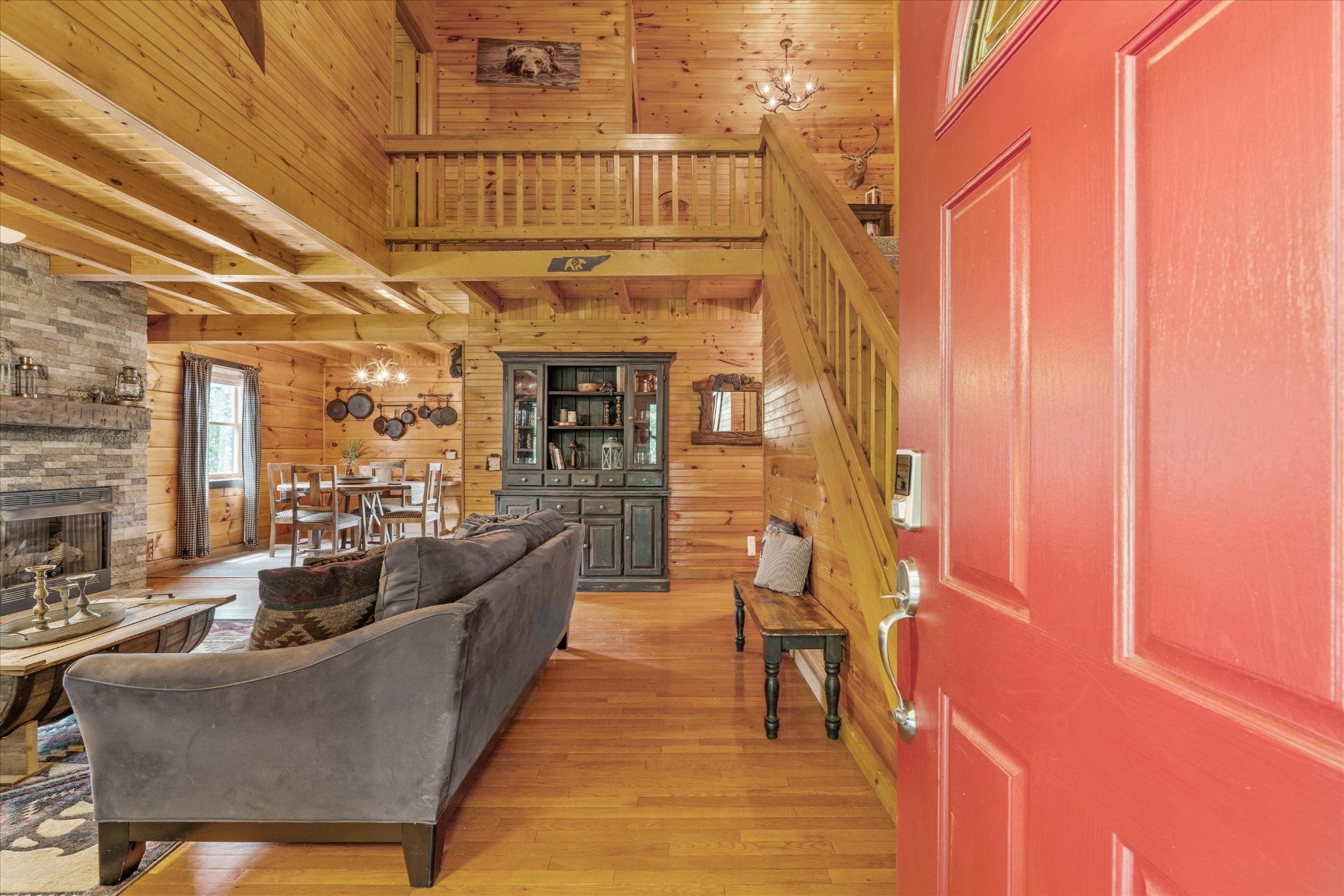 *Seller is eager and offering new, improved pricing following recent appraisal.* Square footage details: SqFt - Total (Aprox): 2,934 | SqFt - Main Lvl: 1,025.96 | SqFt - 2nd Flr Lvl: 882.46 | SqFt - Down/Basement Lvl: 1,026 Private Log Cabin nestled in the hills of Hawkins County surrounded by woodlands on 3+ Acres with Expansive Mountain Views! Tucked at the end of a long, winding driveway, this 4-bedroom, 2.5-bath log cabin feels worlds away while staying connected to nearby amenities – a short drive away from Cherokee Lake, several marinas, golf course, fishing spots & historic Rogersville. Built in 2000, the main level is thoughtfully arranged with a primary bedroom and en-suite bath, a laundry room, and open living spaces designed for ease of daily life. Upstairs, three additional bedrooms and a full bath provide flexibility for guests, family, or work-from-home needs. Downstairs, an unfinished basement offers endless possibilities for expansion, storage, or projects. With a history as a profitable vacation rental, this property has proven income potential alongside its appeal as a full-time home or weekend escape. Located outside city limits, it offers more freedom in use while keeping essentials within easy reach. A rare blend of seclusion, scenery, and opportunity – all in one property.