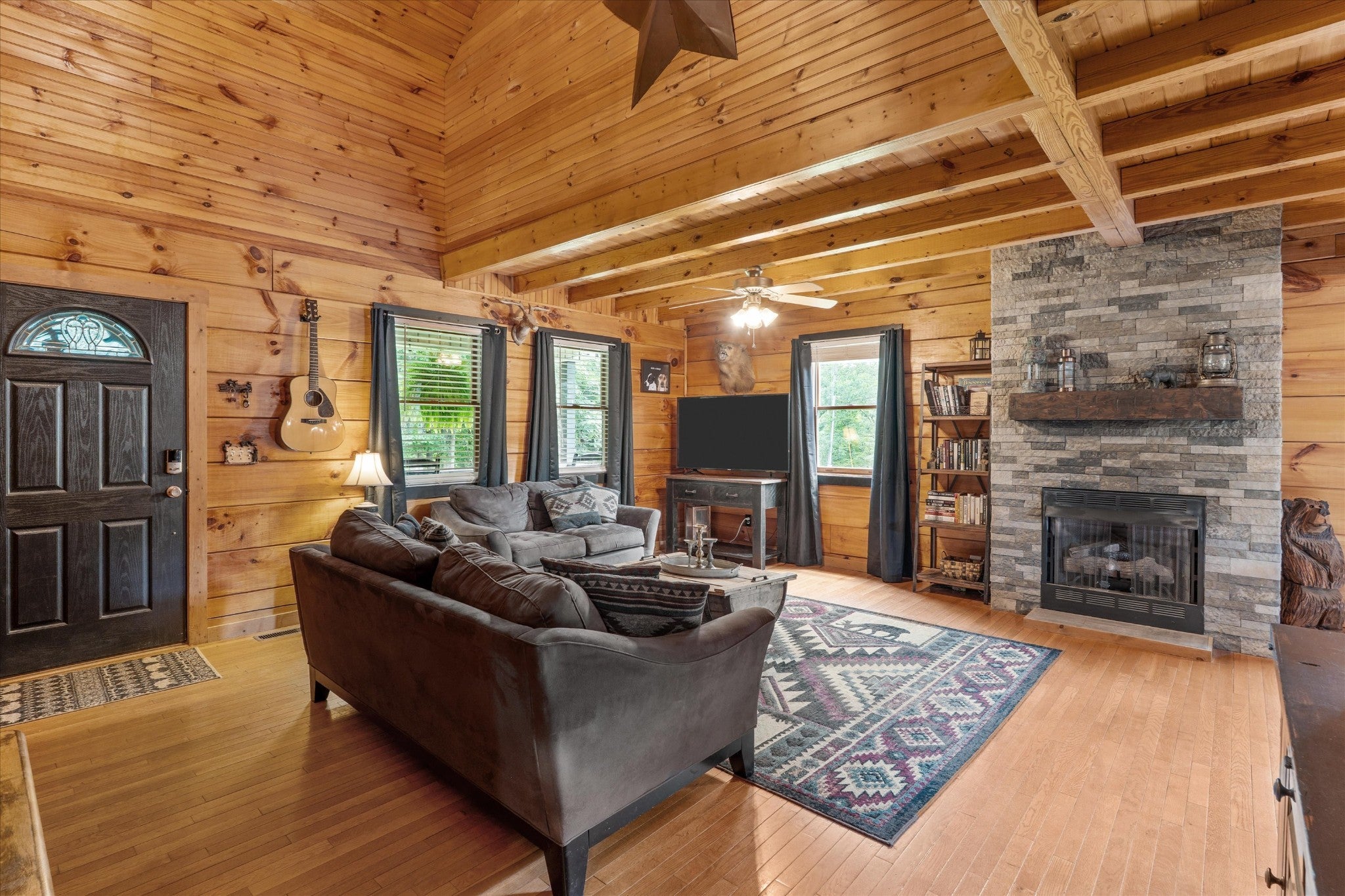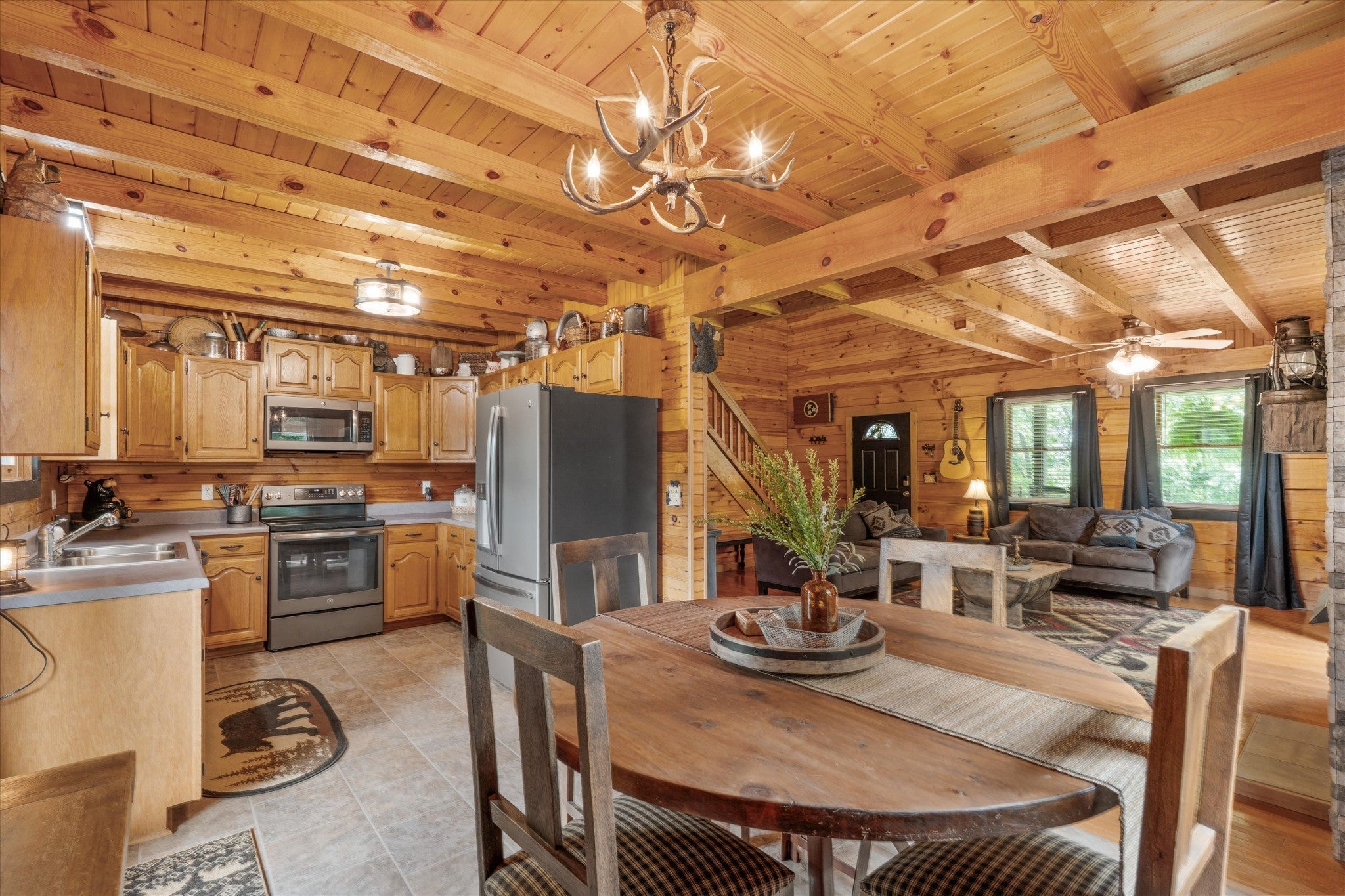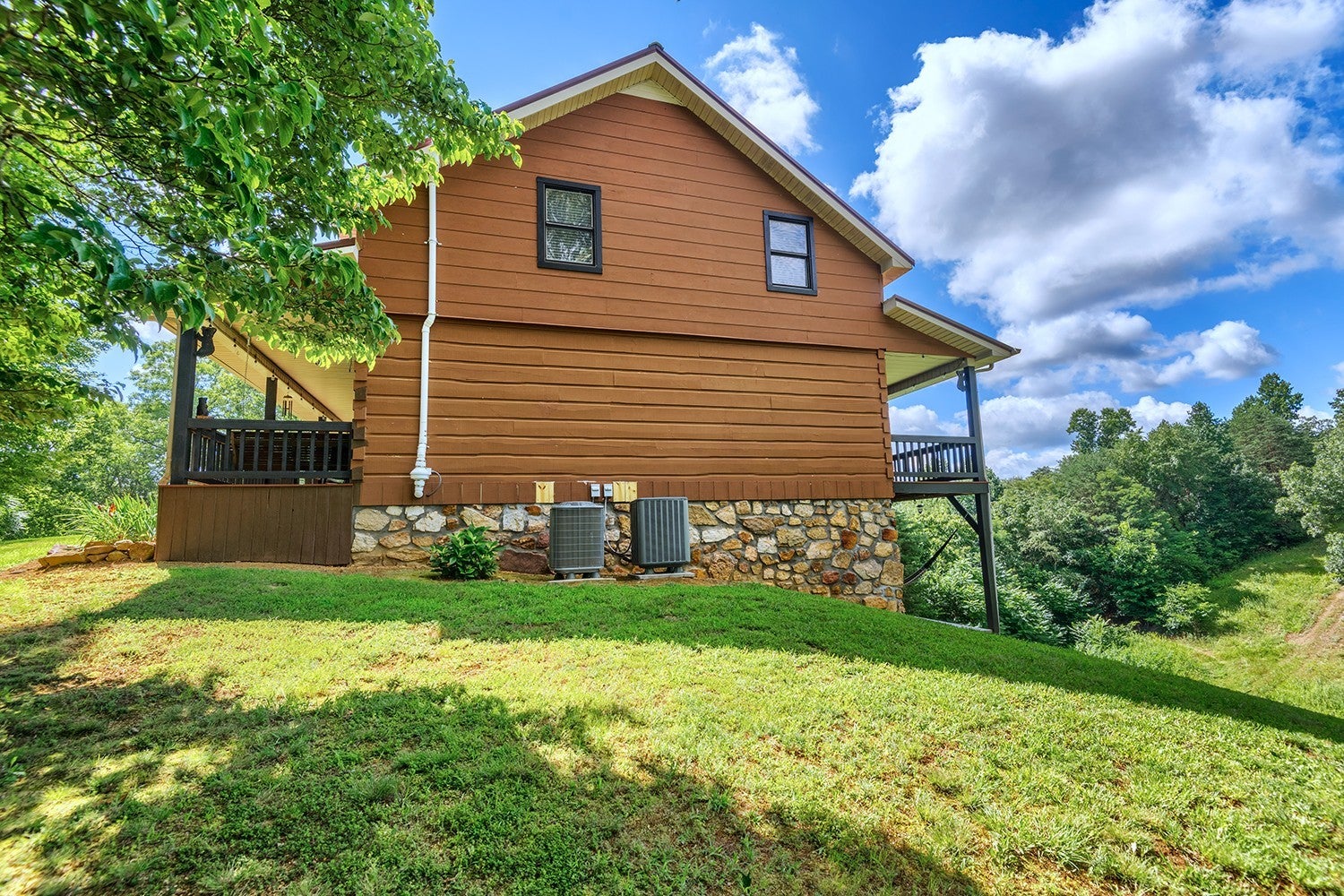 *Seller is eager and offering new, improved pricing following recent appraisal.* Square footage details: SqFt - Total (Aprox): 2,934 | SqFt - Main Lvl: 1,025.96 | SqFt - 2nd Flr Lvl: 882.46 | SqFt - Down/Basement Lvl: 1,026 Private Log Cabin nestled in the hills of Hawkins County surrounded by woodlands on 3+ Acres with Expansive Mountain Views! Tucked at the end of a long, winding driveway, this 4-bedroom, 2.5-bath log cabin feels worlds away while staying connected to nearby amenities – a short drive away from Cherokee Lake, several marinas, golf course, fishing spots & historic Rogersville. Built in 2000, the main level is thoughtfully arranged with a primary bedroom and en-suite bath, a laundry room, and open living spaces designed for ease of daily life. Upstairs, three additional bedrooms and a full bath provide flexibility for guests, family, or work-from-home needs. Downstairs, an unfinished basement offers endless possibilities for expansion, storage, or projects. With a history as a profitable vacation rental, this property has proven income potential alongside its appeal as a full-time home or weekend escape. Located outside city limits, it offers more freedom in use while keeping essentials within easy reach. A rare blend of seclusion, scenery, and opportunity – all in one property.
