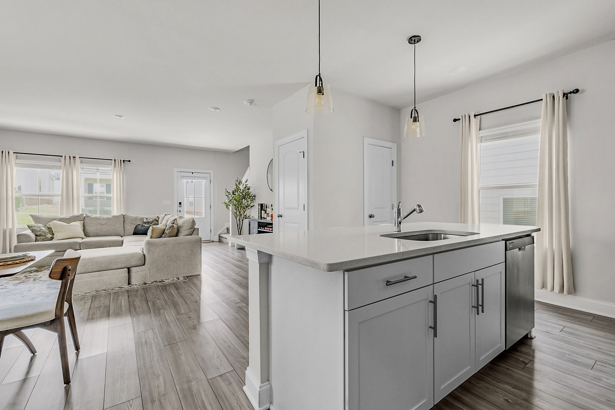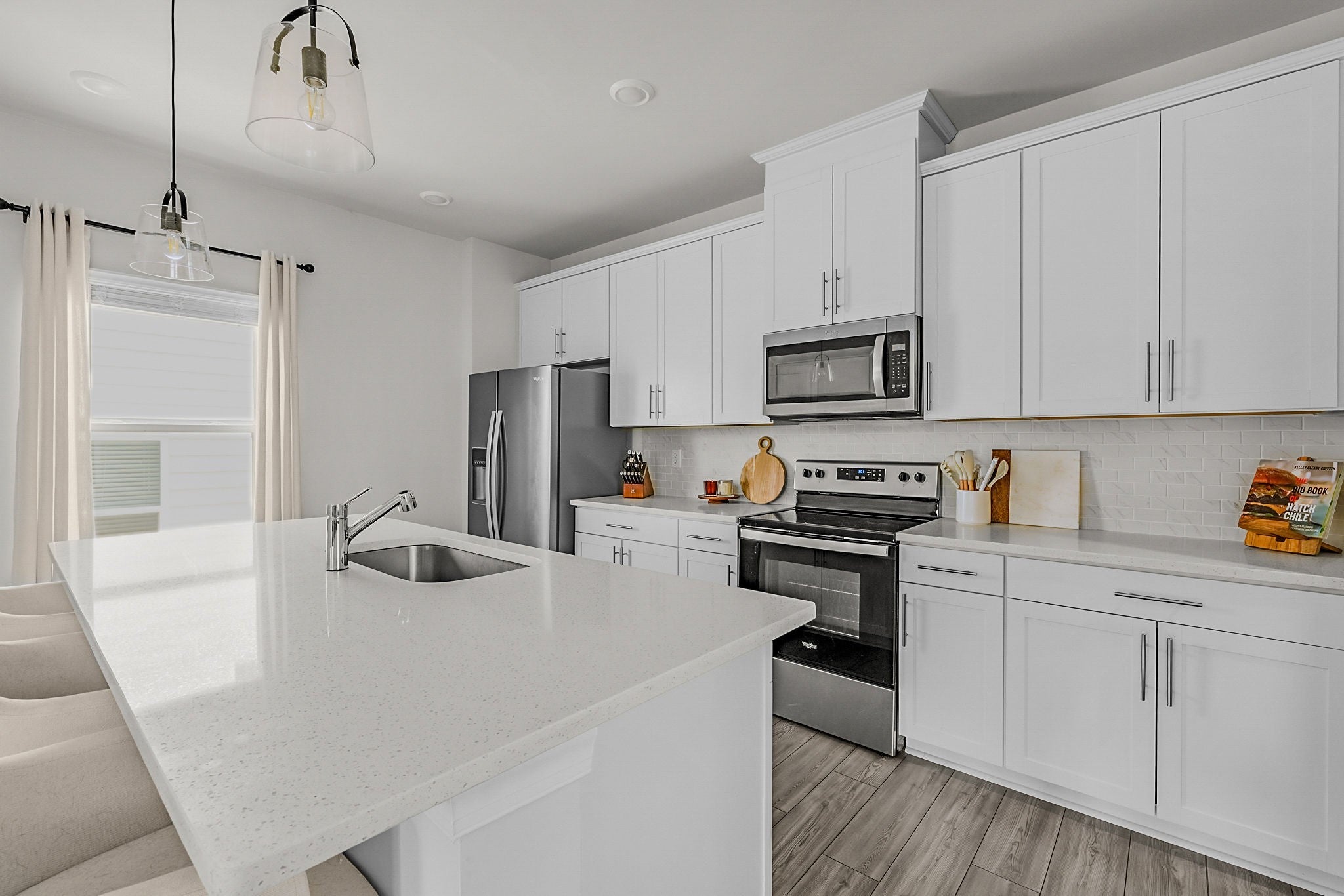 1519 Henderson Point Alley is a must see in sought after Riverbrook! This home has been wonderfully maintained and is ready for it's new owners. Recently built in 2023, this home checks many boxes: abundant natural light, updated finishes, a practical floor plan, attached 2 car garage, energy efficient features, and a low maintenance lawn managed by HOA. The kitchen is the highlight of the home -- bright and airy, white cabinets, a huge quartz island for entertaining, plus a walk in pantry. This home is only 10 minutes from the airport, and 20 minutes from downtown. Enjoy close proximity and convenience with all the benefits of a neighborhood community setting. Neighborhood amenities include a pool, cabana, and sidewalks.