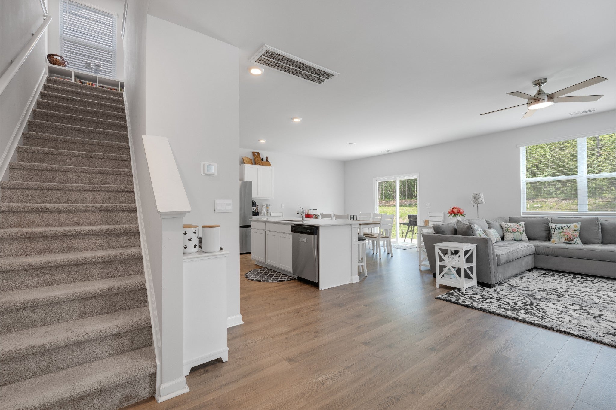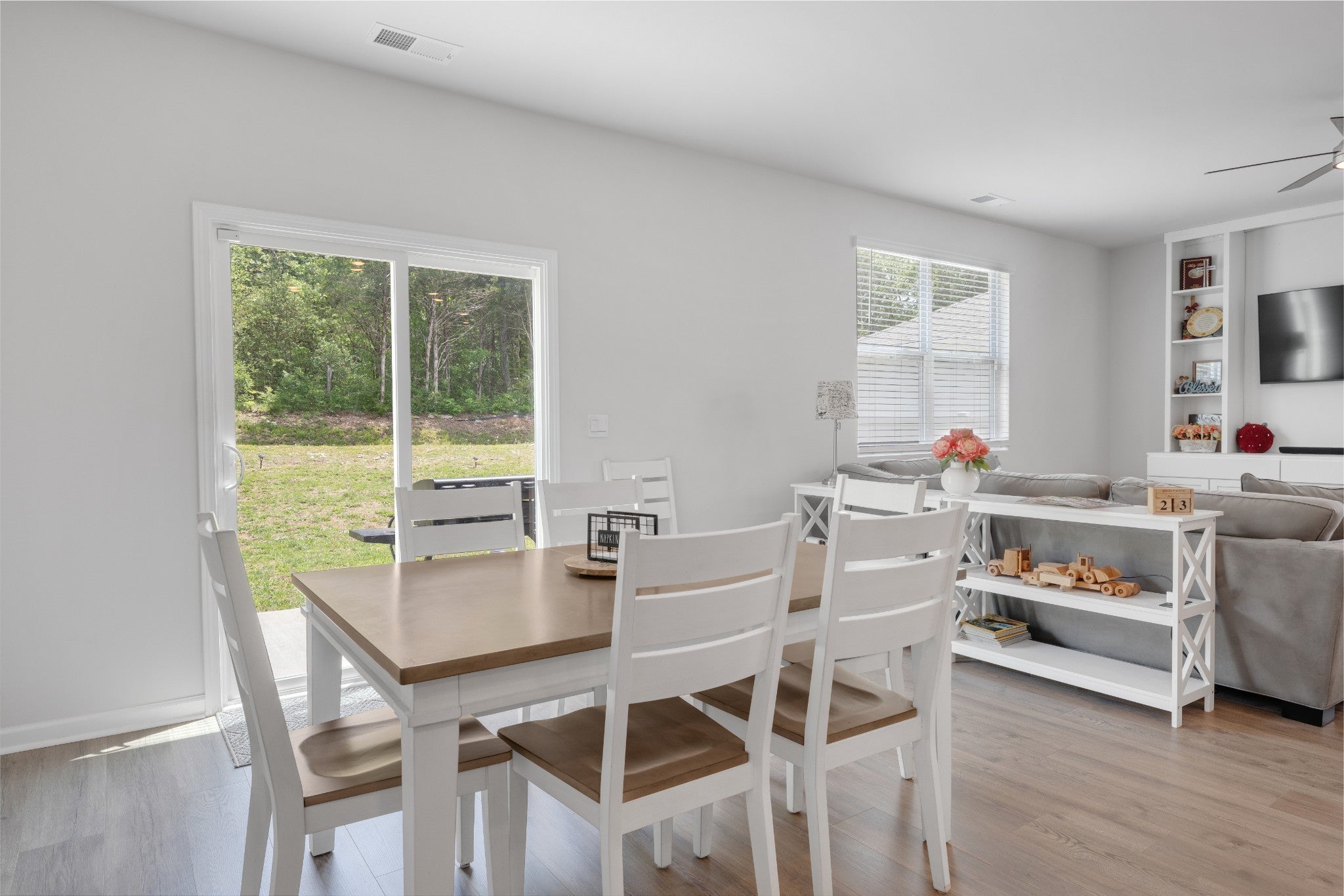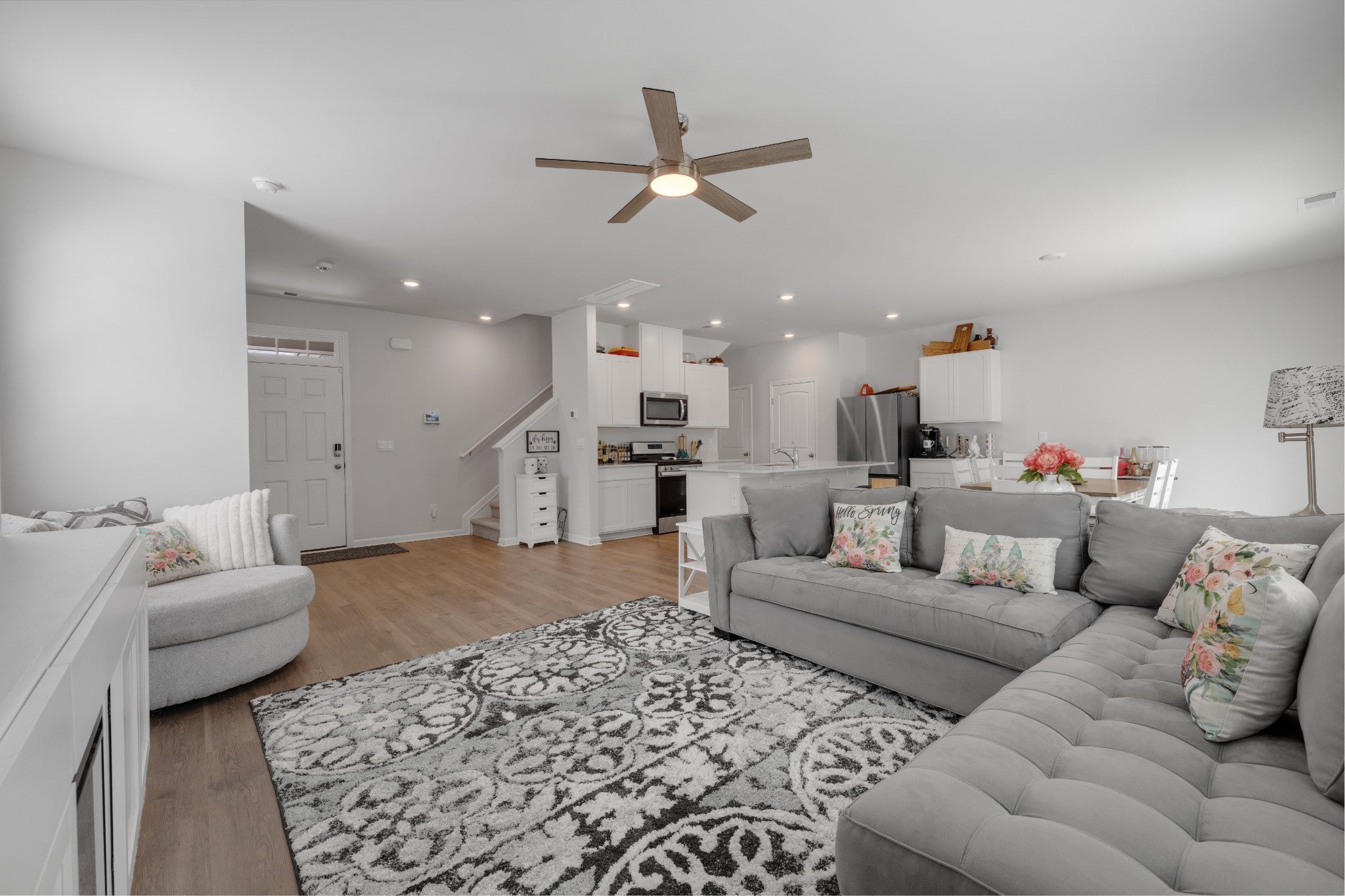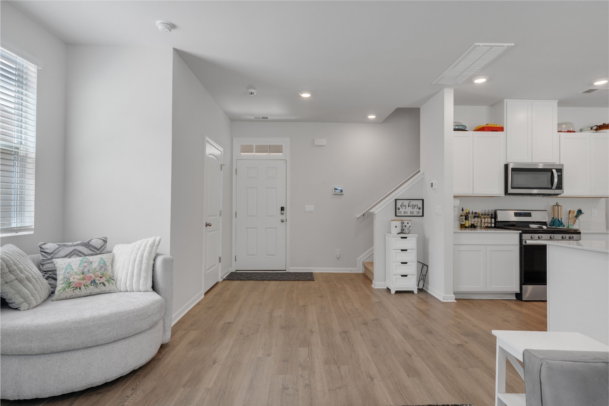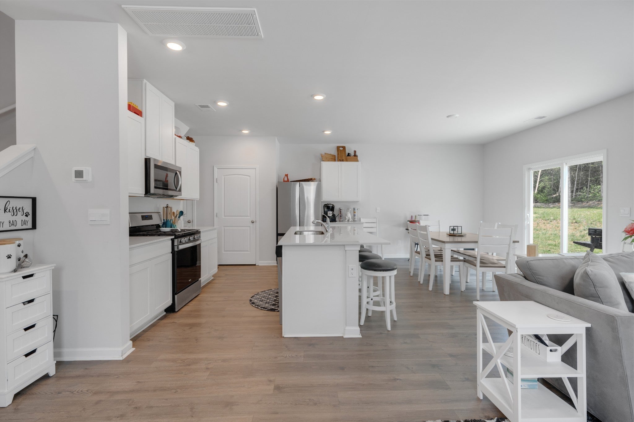 This open-concept beauty is better than a brand new home! This home is designed for the way you live today — with a gourmet kitchen that’s sure to impress. You’ll love the oversized island, 5-burner gas range, stainless steel appliances, crisp white cabinetry, and even a built-in spice drawer for those who love to cook or entertain. The spacious living and dining areas flow effortlessly, making it just as ideal for hosting friends as it is for quiet nights at home. The built in entertainment center with mounted TV makes living room a great place to see the game or watch a movie! The luxurious owner’s suite offers a true retreat with a large walk-in shower, dual vanities, and an expansive walk-in closet. Thoughtful features throughout the home include built-ins for your entertainment setup, custom bookshelves, and tons of extra storage space. Outside, relax on your private back patio or take advantage of the neighborhood's resort-style perks: a sparkling pool, large playground, scenic walking trails, and sidewalks on both sides of the street. Motivated sellers!