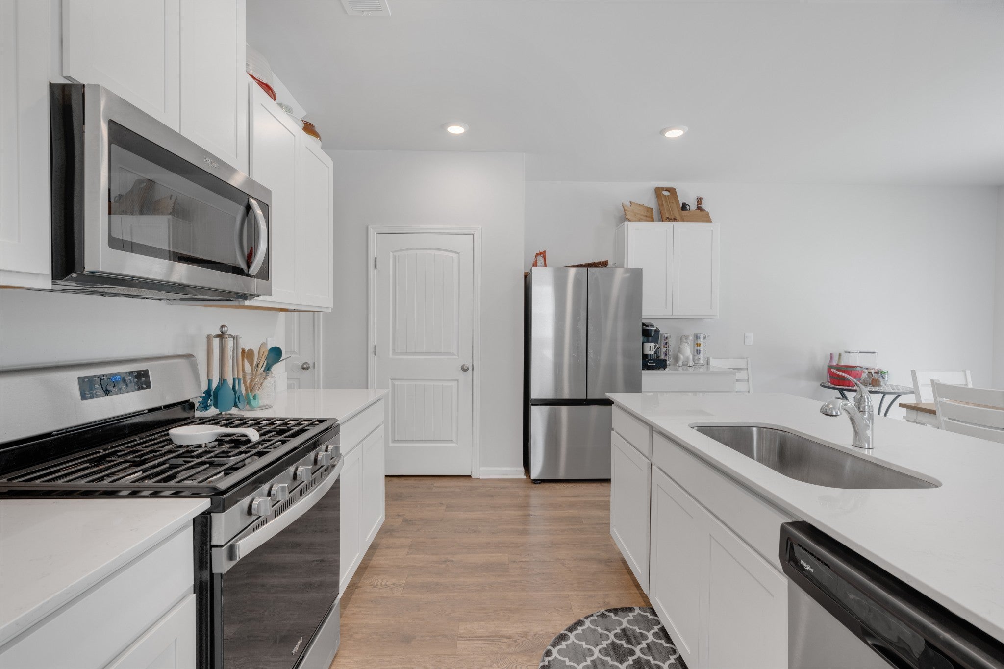- Gas Oven, Gas Range, Dishwasher, Microwave, Refrigerator, Stainless Steel Appliance(s)