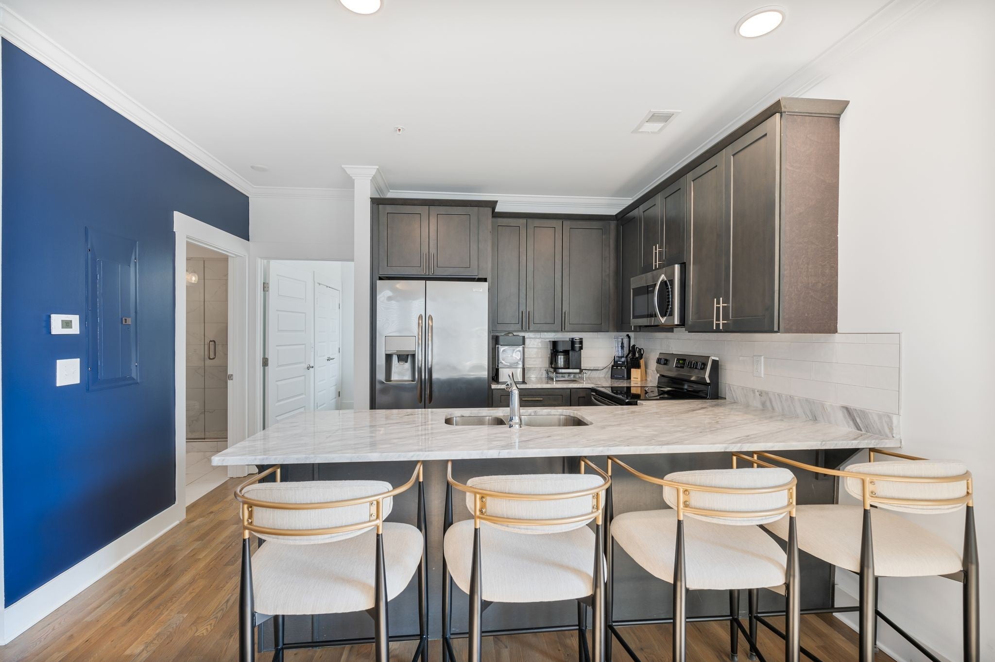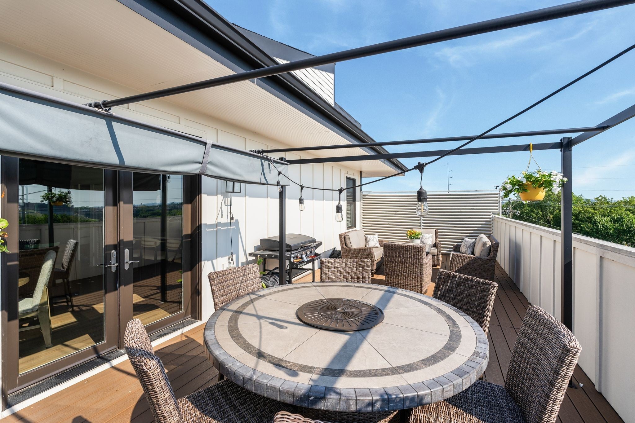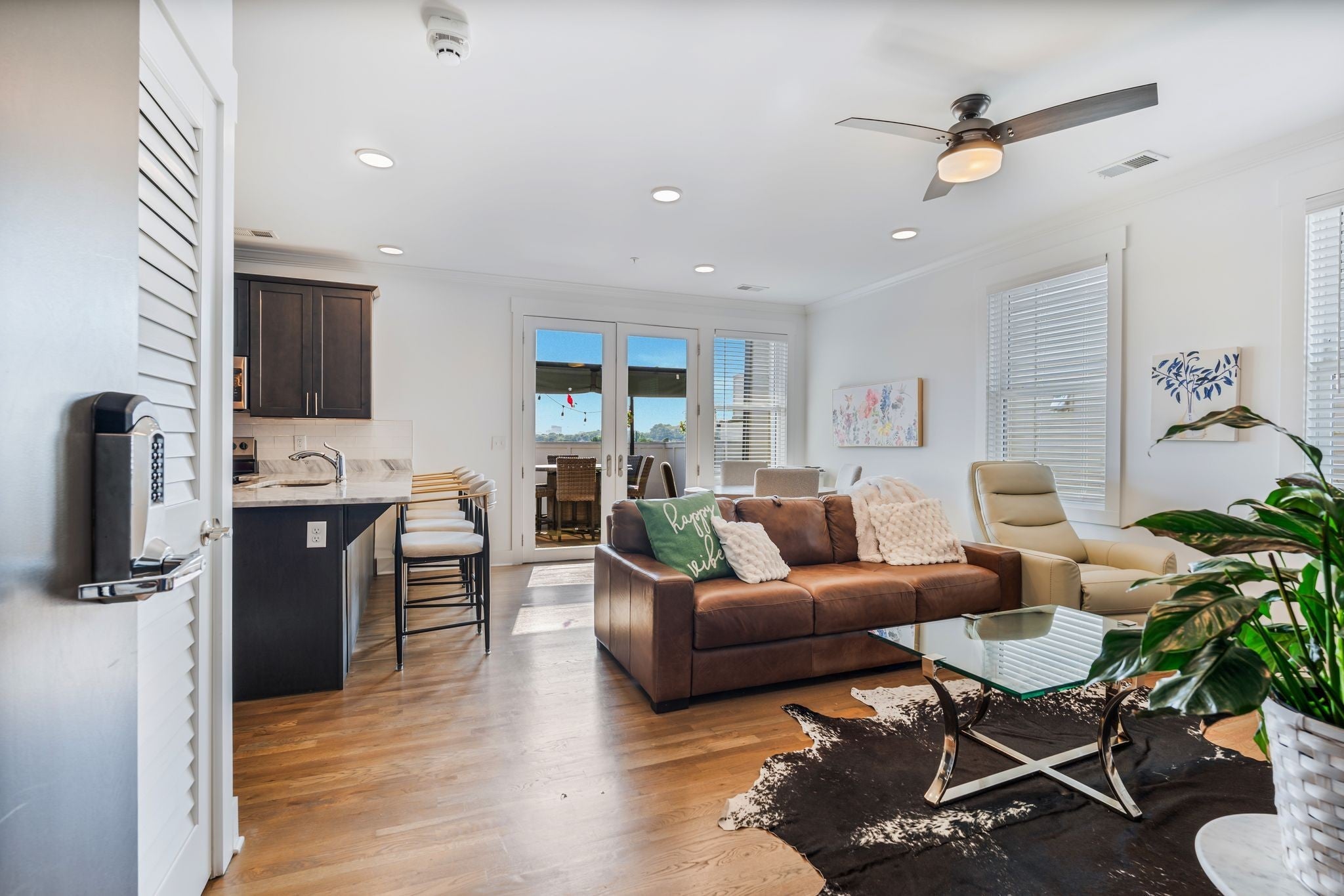 There are plenty of one bedroom condos to choose from in Nashville but I promise you won't find one with a private 442 sq foot rooftop deck with downtown views like this one. This condo is truly one of a kind. Hardwood floors, recessed lighting, 9 foot ceilings, loads of natural light, quartz counters, stainless appliances, oversized walk in shower, large walk in closet with custom built shelving and more. Located on the top floor of a four story building with secured entrances and elevator access. The building only has 12 units and this is ONE of the two on the fourth floor making it feel extremely private. The deck is a show stopper. Indoor and outdoor dining space make this great for entertaining. Located in The Nations just two blocks from Fat Bottom Brewery, and 6 blocks from all of the exciting restaurants, bars, coffee shops and boutiques on 51st and Centennial! The building is HOA approved for non owner occupied short term rentals which makes it a great investment. Currently owner occupied and adored.