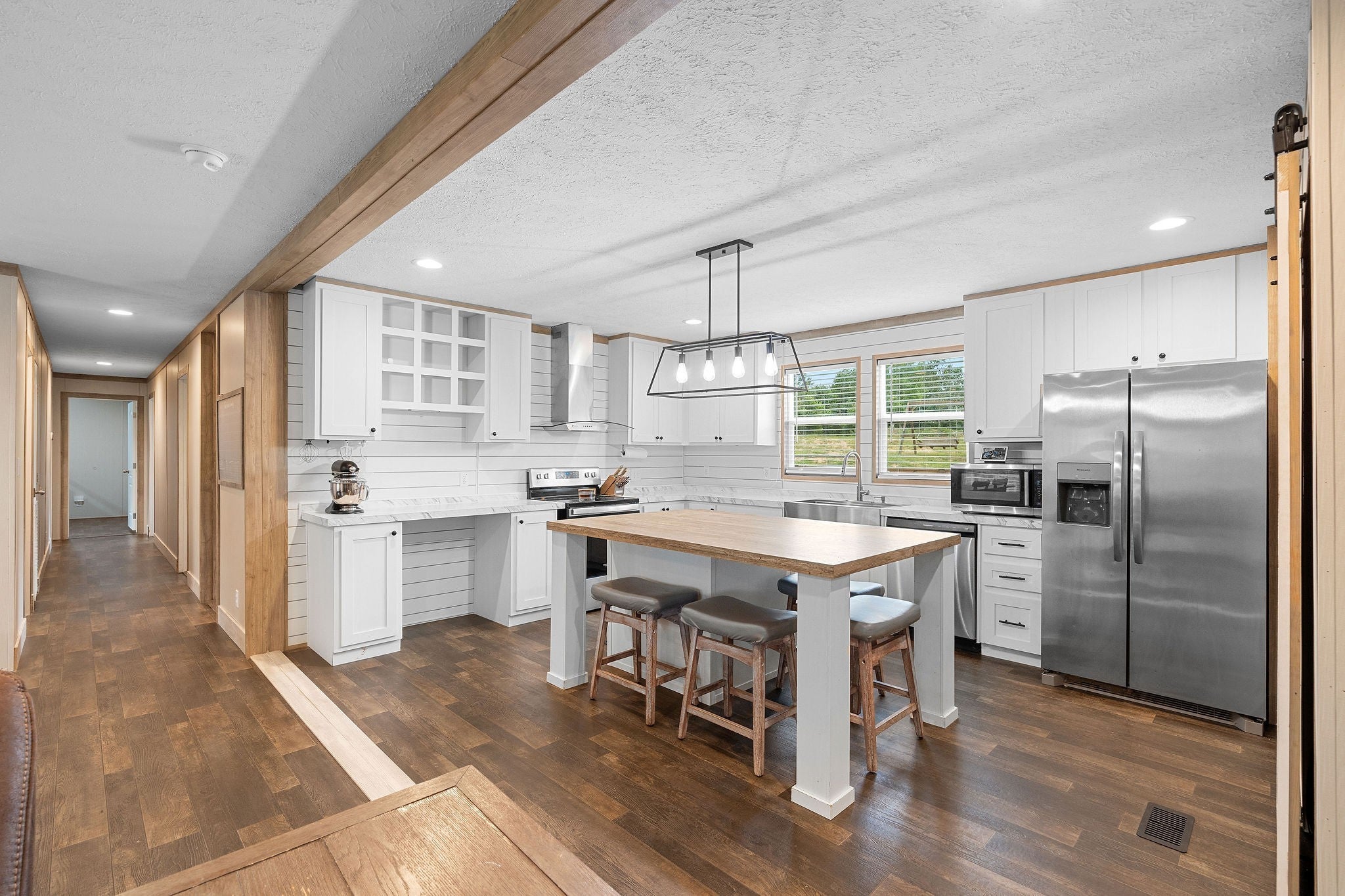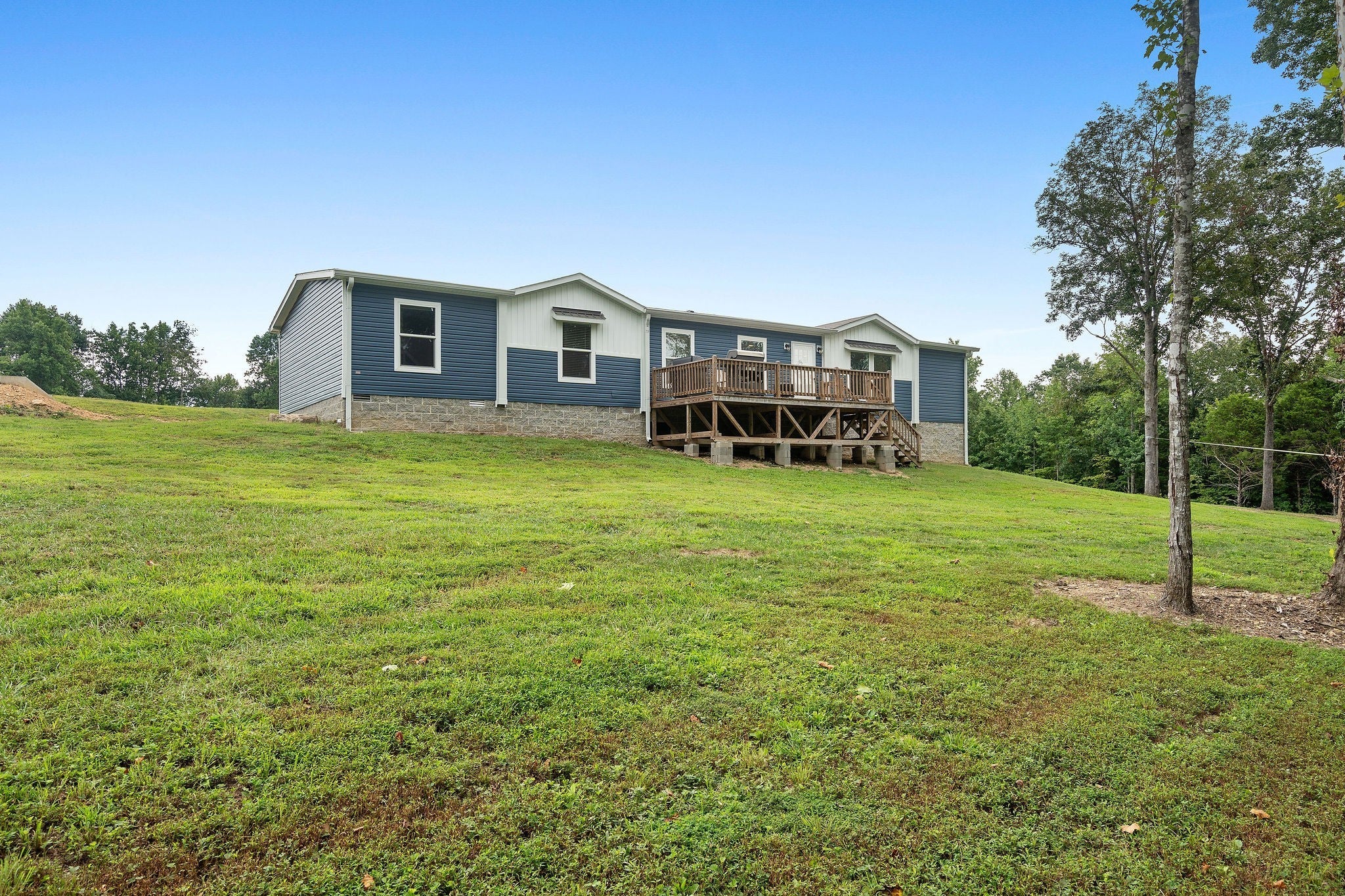 Welcome to 9.43 beautiful acres in Westmoreland, TN! This property offers the perfect mix of cleared land and wooded areas—ideal for gardening, homesteading, or simply enjoying nature. Located just 3 minutes from local grocery stores, restaurants, and shops, you'll love the convenience and privacy. The spacious 5-bedroom, 2-bath home features an open-concept layout with modern farmhouse finishes throughout. The kitchen includes white cabinetry, a large wooden island, stainless steel appliances, a farmhouse sink, and a sliding barn door pantry. The living space is bright and airy with modern lighting, ceiling fans, and an inviting layout that’s perfect for gatherings. Step outside to a large front deck—ideal for entertaining, relaxing, or grilling out. There’s also a cozy back porch that overlooks the yard, great for enjoying your morning coffee or winding down in the evenings. The land offers plenty of space for a fire pit, gardens, endless opportunity! The bathrooms feature light wood cabinetry, shiplap accents, and tile details for a clean, elevated look. All bedrooms are generously sized with large windows that bring in tons of natural light. On the property, the wooded area includes beautiful mature trees & trails perfect for ATV rides or peaceful walks through nature. This property offers endless opportunities and a lifestyle full of fresh air, space, and freedom. Whether you're dreaming of a homestead, a weekend retreat, or your forever home, this one is truly special. Preferred Lender Credit to be 1% of loan amount up to $5000. Schedule your showing today!
