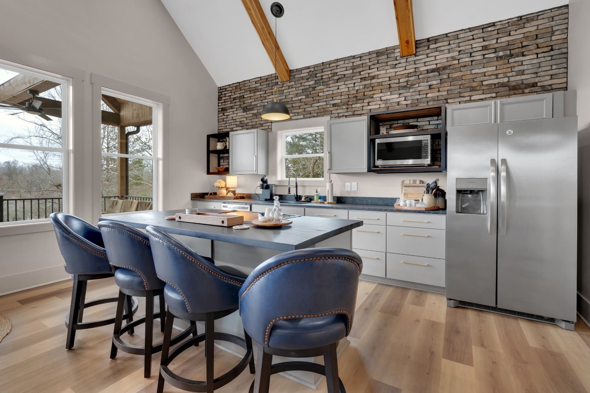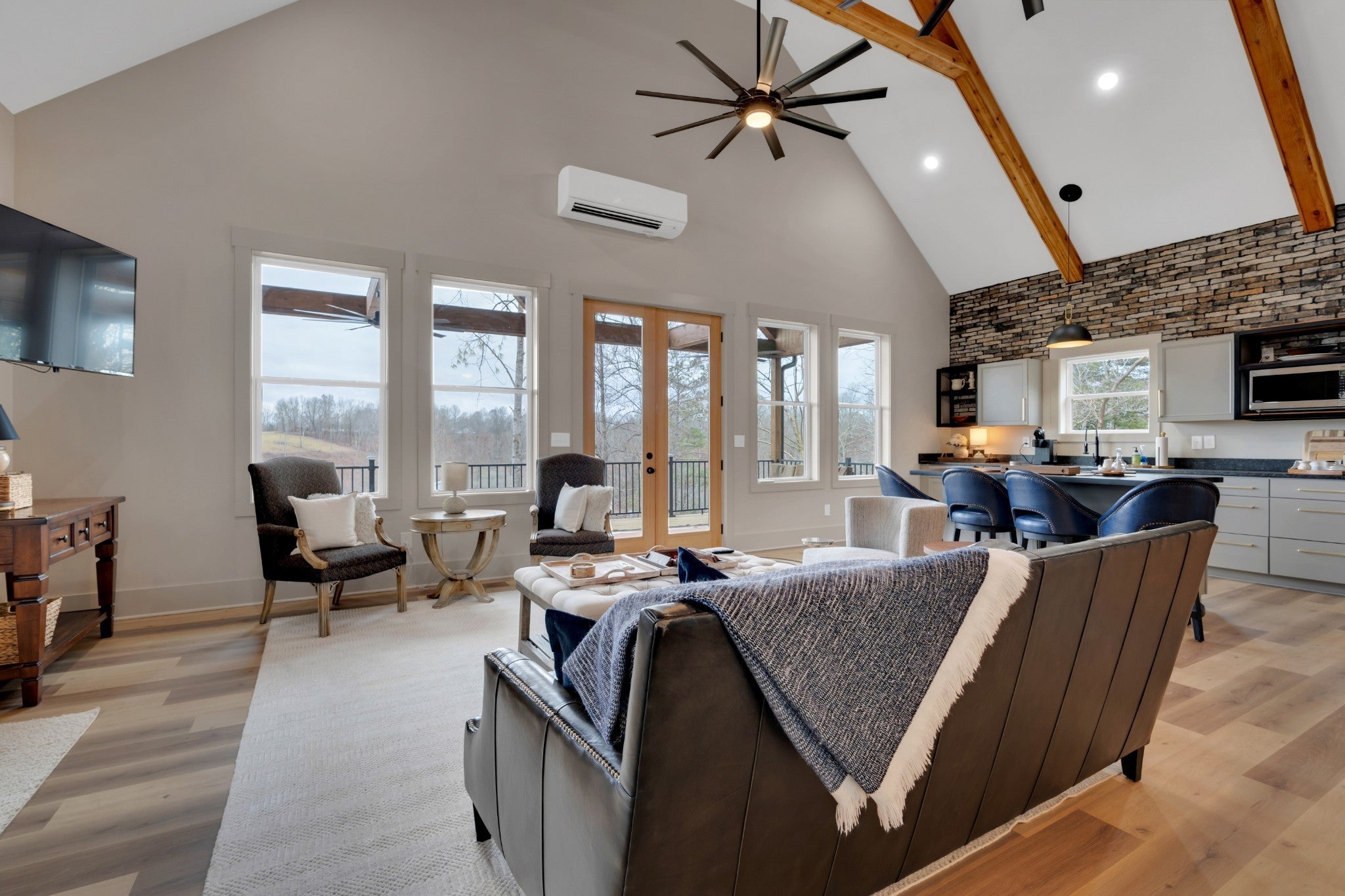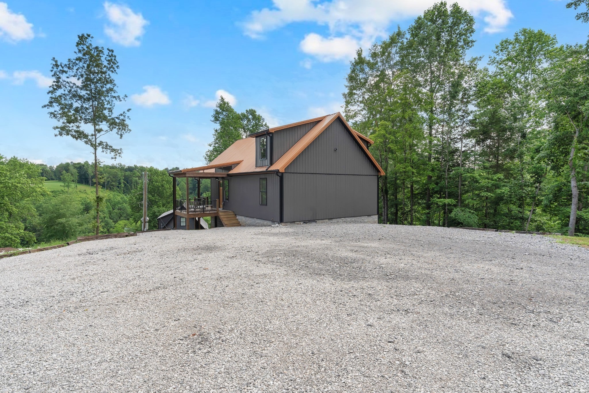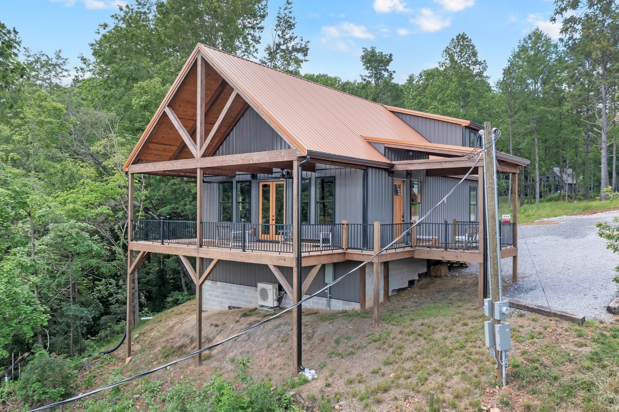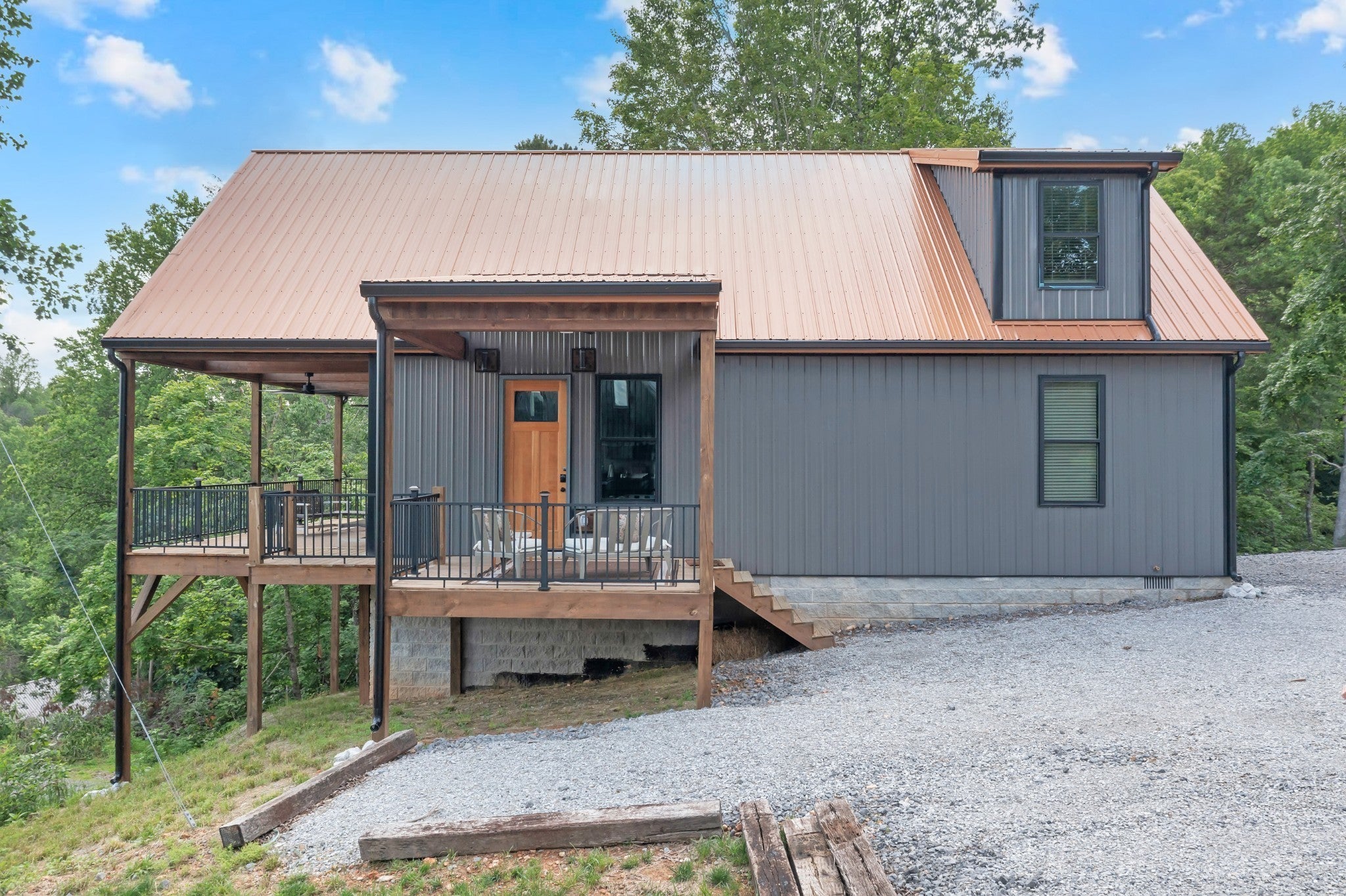Preferred lender is offering a 1% rate buy down for the first year or .5% of amount financed towards buyers closing costs. Lakefront retreat on Tims Ford Lake, just 10 minutes from Lynchburg! This fully furnished home sleeps 8 and features metal siding with a copper-colored metal roof. This 2 bed, 2 bath (1 bedroom septic) boasts an open floor plan with the kitchen including leathered granite countertops, open shelving, and a brick backsplash. LVP throughout the home. Hickory cabinets in the bathrooms. There is a carport to store a boat under. Enjoy lake views from the A-frame covered deck with wooden beams. The HOA provides access to a community boat ramp and you can park a boat/trailer at the bottom of the hill on the property. Spend your days boating, exploring nearby trails, or golfing at Tims Ford State Park. Plus, visit the Jack Daniel’s Distillery or dine at local favorites like Blue Gill Grill. Don’t miss this move-in-ready getaway!