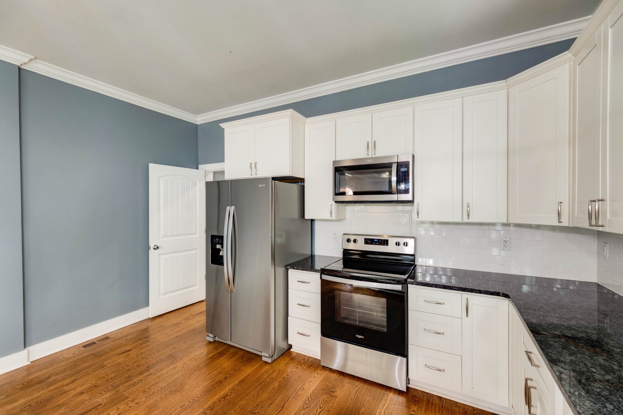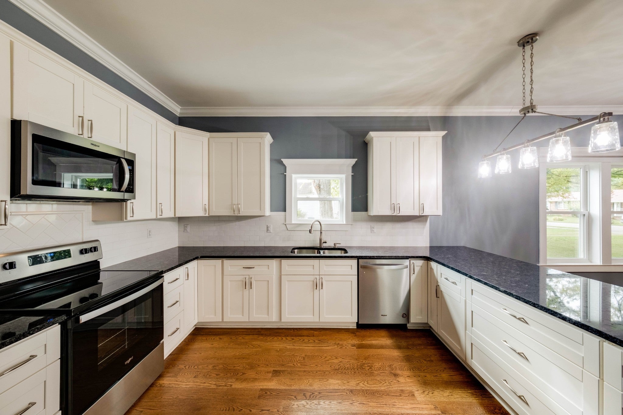 - Electric Range, Dishwasher, Microwave, Refrigerator, Stainless Steel Appliance(s)