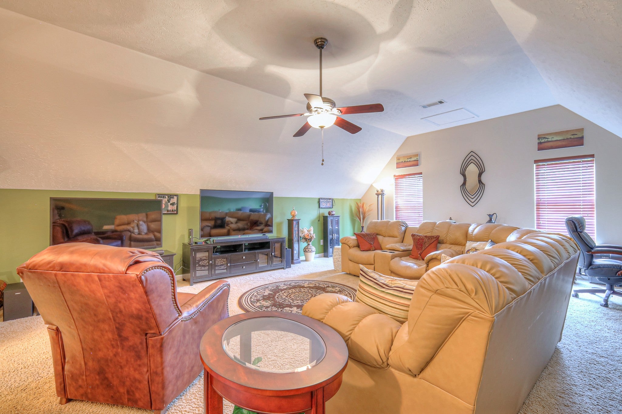 Charming 3-Bedroom Home with Spacious Bonus Areas and Modern Comforts Welcome to this beautifully maintained 3-bedroom, 2.5-bath home offering 2,149 sq. ft. of inviting living space. Perfectly designed for both everyday living and entertaining, this home features a large rec room above the two-car garage—ideal for a game room, home theater, or office. Enjoy cozy evenings in the Florida room with its dual-sided fireplace, creating a warm and welcoming atmosphere that flows seamlessly into the main living areas. The home has been cared for with exceptional detail, making it truly move-in ready. With its clean design, versatile spaces, and inviting charm, this home is sure to impress from the moment you walk in.