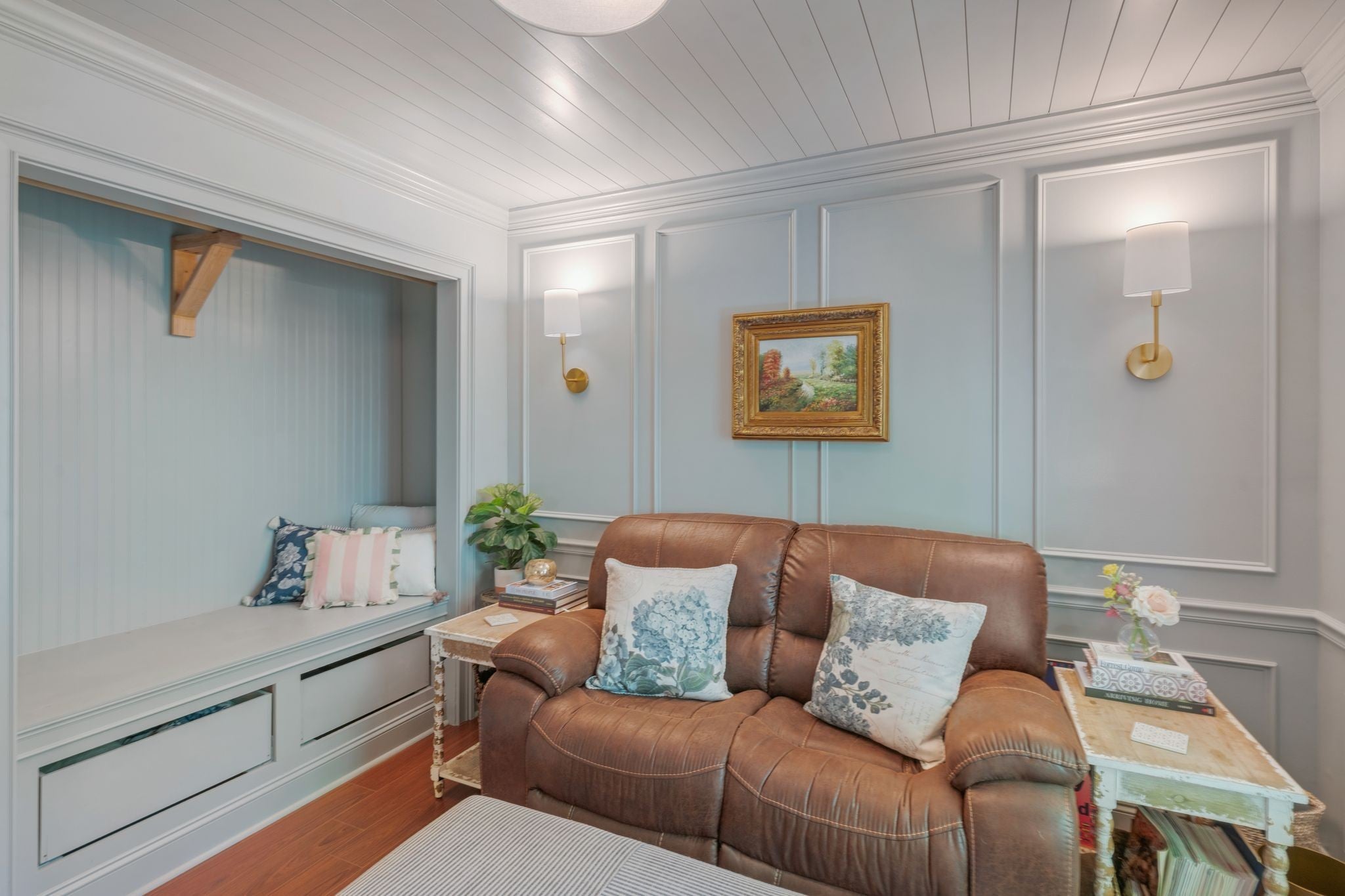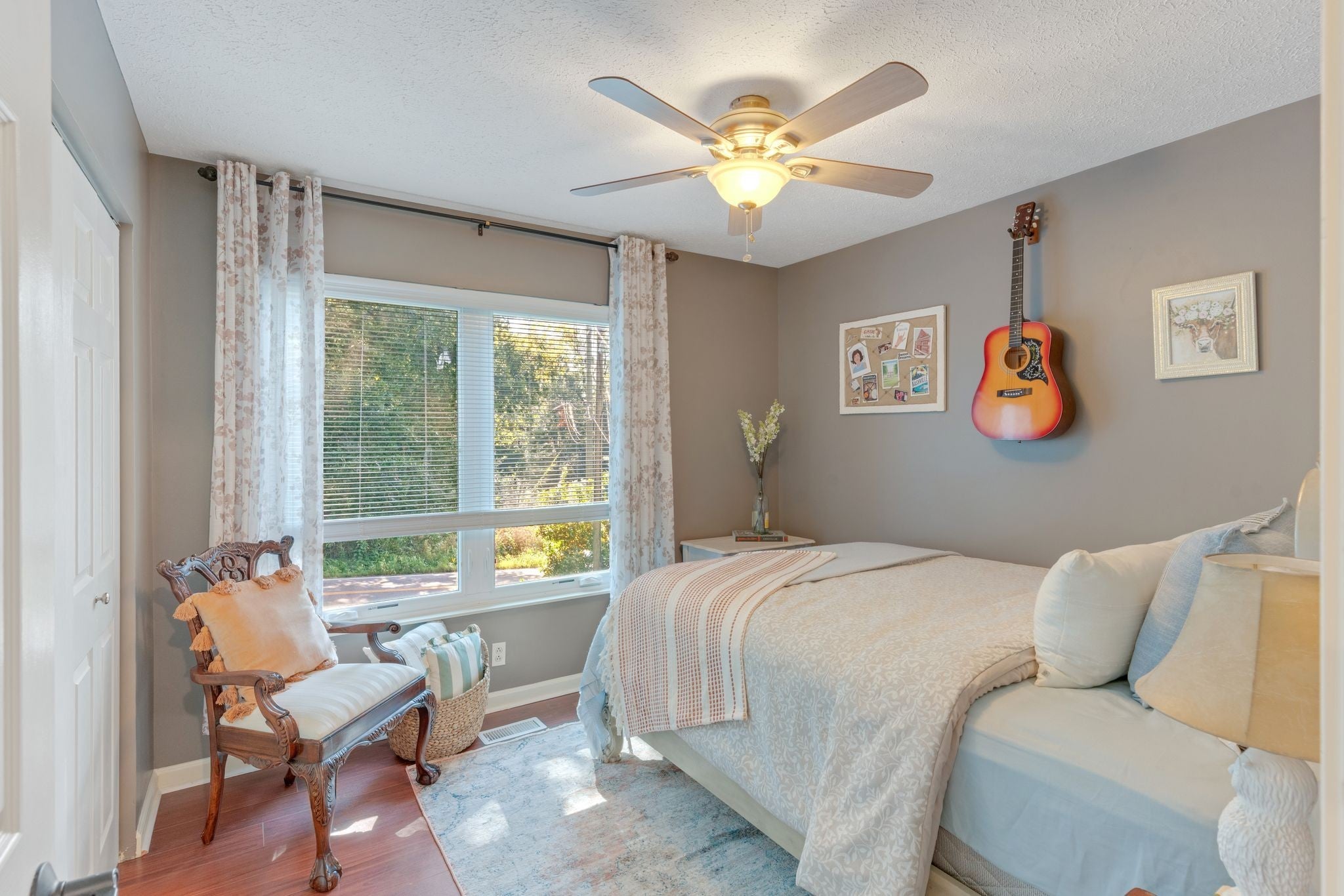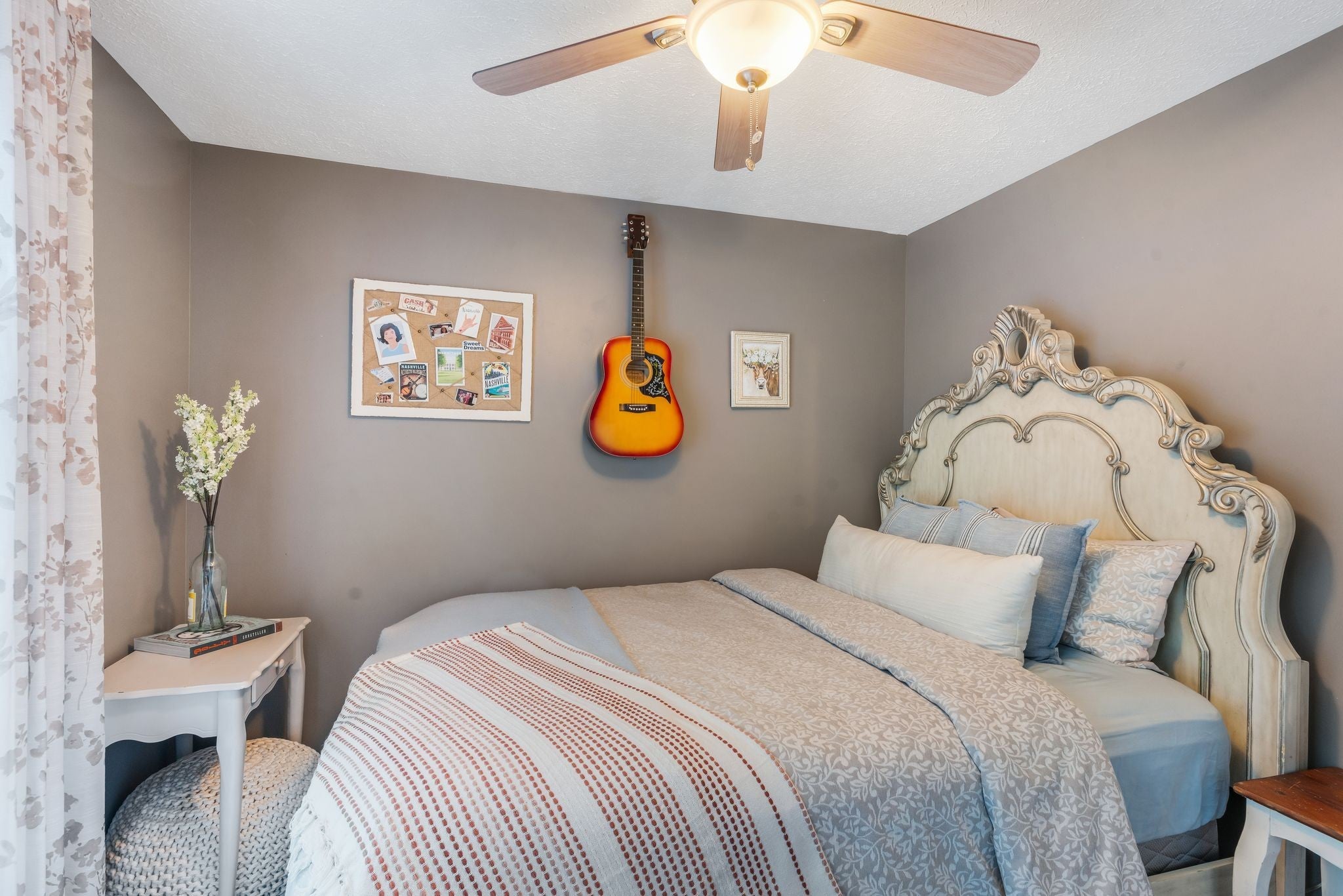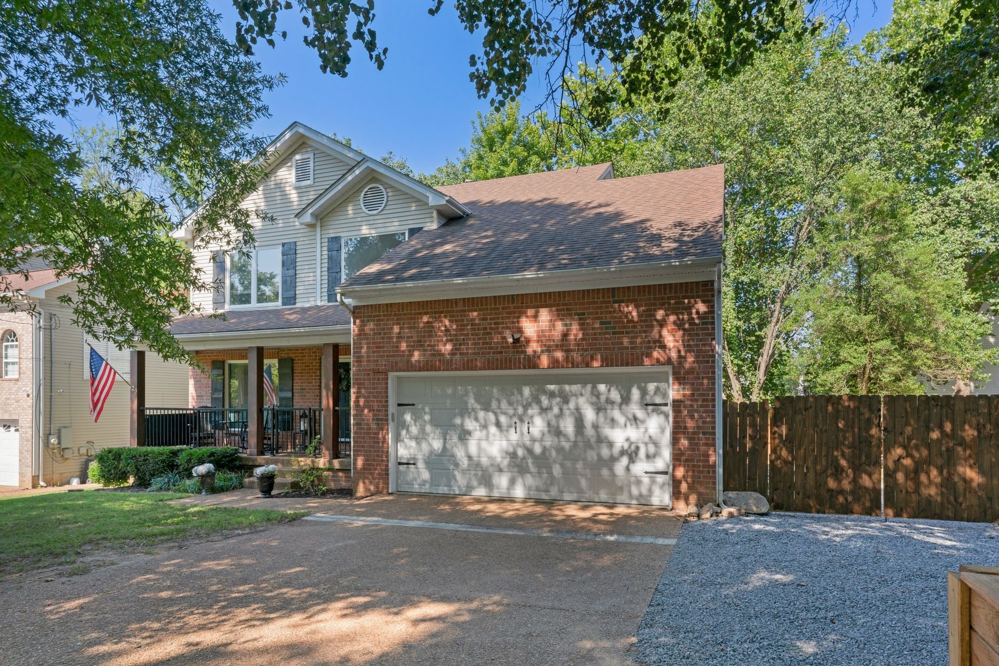 From the moment you step onto the charming front porch of 1080 Tulip Grove Road, you’ll feel the warmth and character that make this home truly special. The gorgeous entryway opens to a main level designed for everyday living and effortless entertaining. Enjoy a spacious living room with a cozy gas fireplace, a dining room with a huge window overlooking the backyard, a chef-friendly kitchen, and a bright breakfast nook. This level also includes a laundry room and an enchanting half bath tucked beneath the stairs. Upstairs, you’ll find three bedrooms, two full baths, a linen closet, and a large bonus room currently enjoyed as a personal music studio. The primary suite is a sanctuary with a walk-in closet, double vanity, relaxing soaker tub, and separate shower. One of the secondary bedrooms has been thoughtfully enhanced with custom trim, built-in wall sconces, and a matching closet featuring a bench seat, beadboard backing, and built-in drawer storage. Throughout the home, large energy-efficient windows bathe every room in natural light. Step into the backyard through a brand-new sliding glass door onto the deck—perfect for morning coffee or evening gatherings. A 6-foot fence encloses the private backyard oasis and includes a raised garden bed, ready for your flowers, herbs, or vegetables. Practicality meets convenience with a 2-car garage, spacious driveway, additional gravel parking pads, and a gated parking area ideal for a boat, camper, or other toys. Nestled in desirable Camden Woods, this home offers access to fantastic community amenities, including a pool, tennis, basketball, and pickleball courts. Google Fiber 5G internet is available, and the location provides easy access to I-40, Nashville International Airport, downtown Nashville, and both Old Hickory Lake and Percy Priest Lake are within 15 minutes. The one-of-a-kind details, dreamy backyard, and convenient location make this more than just a house - it's a place you'll truly want to call home.