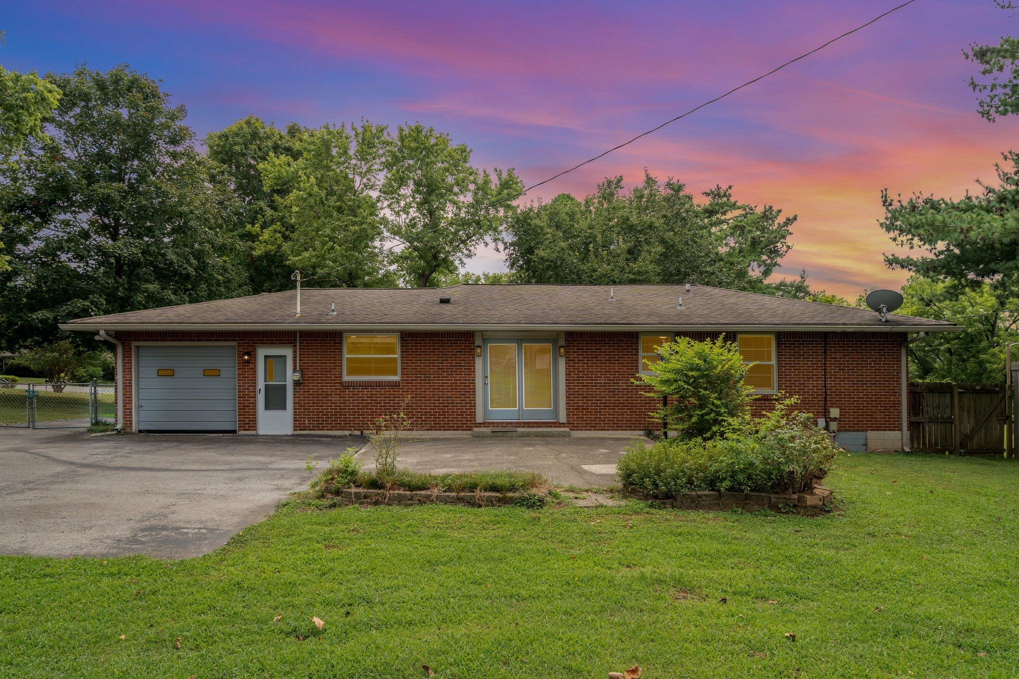 Vintage move-in ready all brick home in Donelson! Located conveniently 12 minutes to BNA, 16 minutes to Downtown Nashville and 17 minutes to 5-points and East Nashville, this one-level charmer is the quintessential 60's ranch home! Retro design and original features abound from the contemporary front door to the original shutters! Top features include new flooring throughout, no carpets, original pink and grey ceramic tile bathroom, built-in scale, swiveling toothbrush holder and medicine cabinet that all still work! The closets also feature 1960's shoe organizers in all of the bedrooms! The layout lends itself to many uses, the 4th bedroom could also be used as a dining room, office or a den, and features double glass doors. An oversized 1-car garage with workshop space complete this home's design! Outdoors, you'll find a large, flat and fully fenced back yard with ample patio space, perfect for hosting! The Sunset View neighborhood is one of Nashville's best kept secrets! Quiet and yet close to everything, come check this home out today! Ask about 1-year home warranty and 1% towards lower rate with preferred lender.