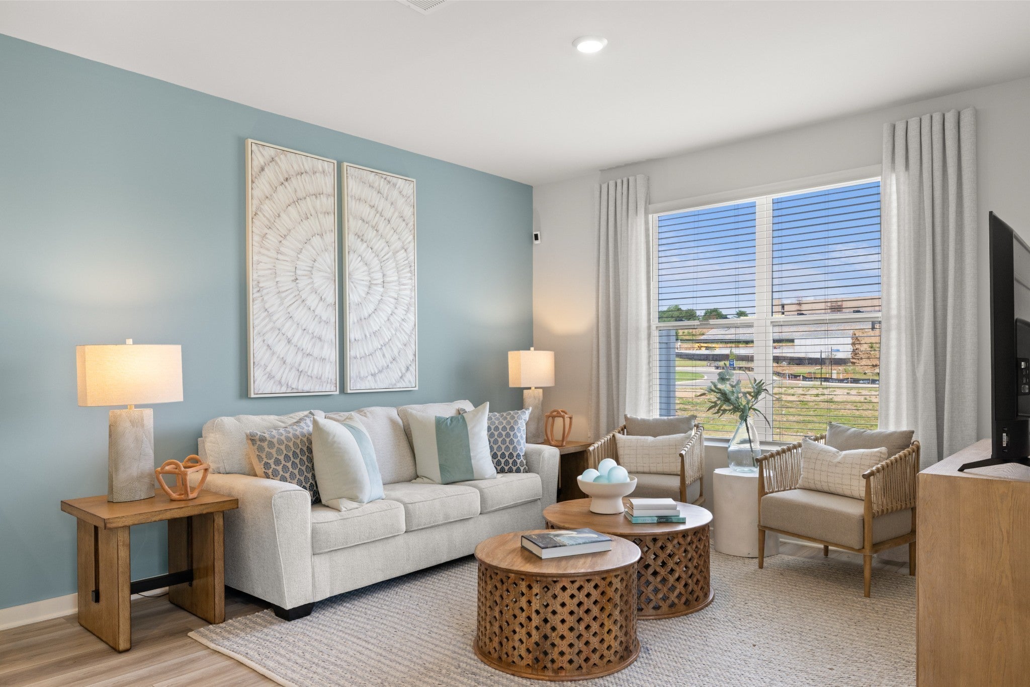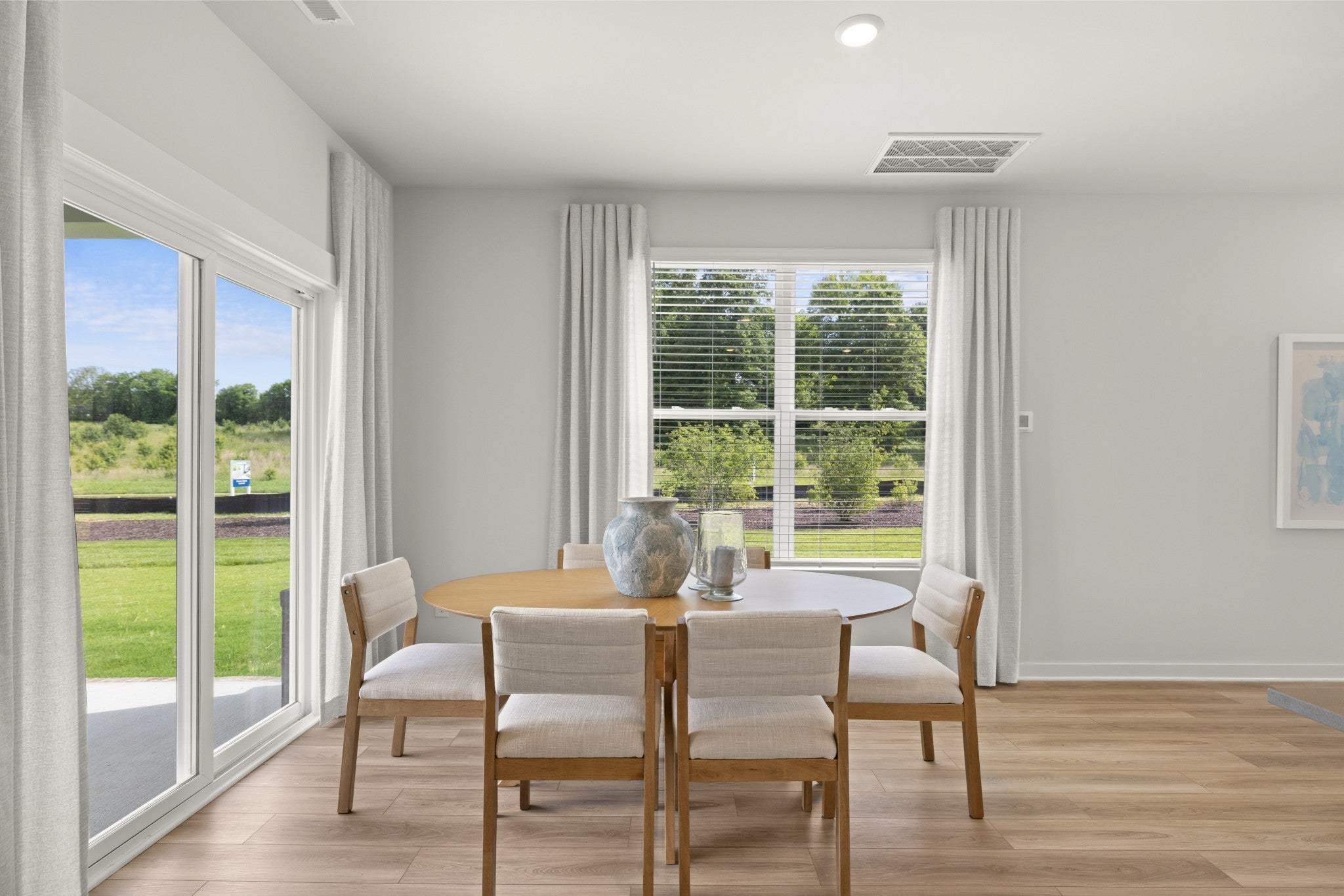LOT #199 - Harper florrplan. This new two-story townhome design combines comfort and style. The first floor features an open-concept layout connecting a living room for shared moments, a dining room for memorable meals and a kitchen for inspired cooks. Nearby sliding glass doors provide access to a covered patio for outdoor enjoyment. On the second floor, two secondary bedrooms and a spacious owner’s suite with a luxe bathroom and large walk-in closet provide restful retreats for family members and overnight guests. *Images from a furnished model of this home. Actual configuration and features may vary.