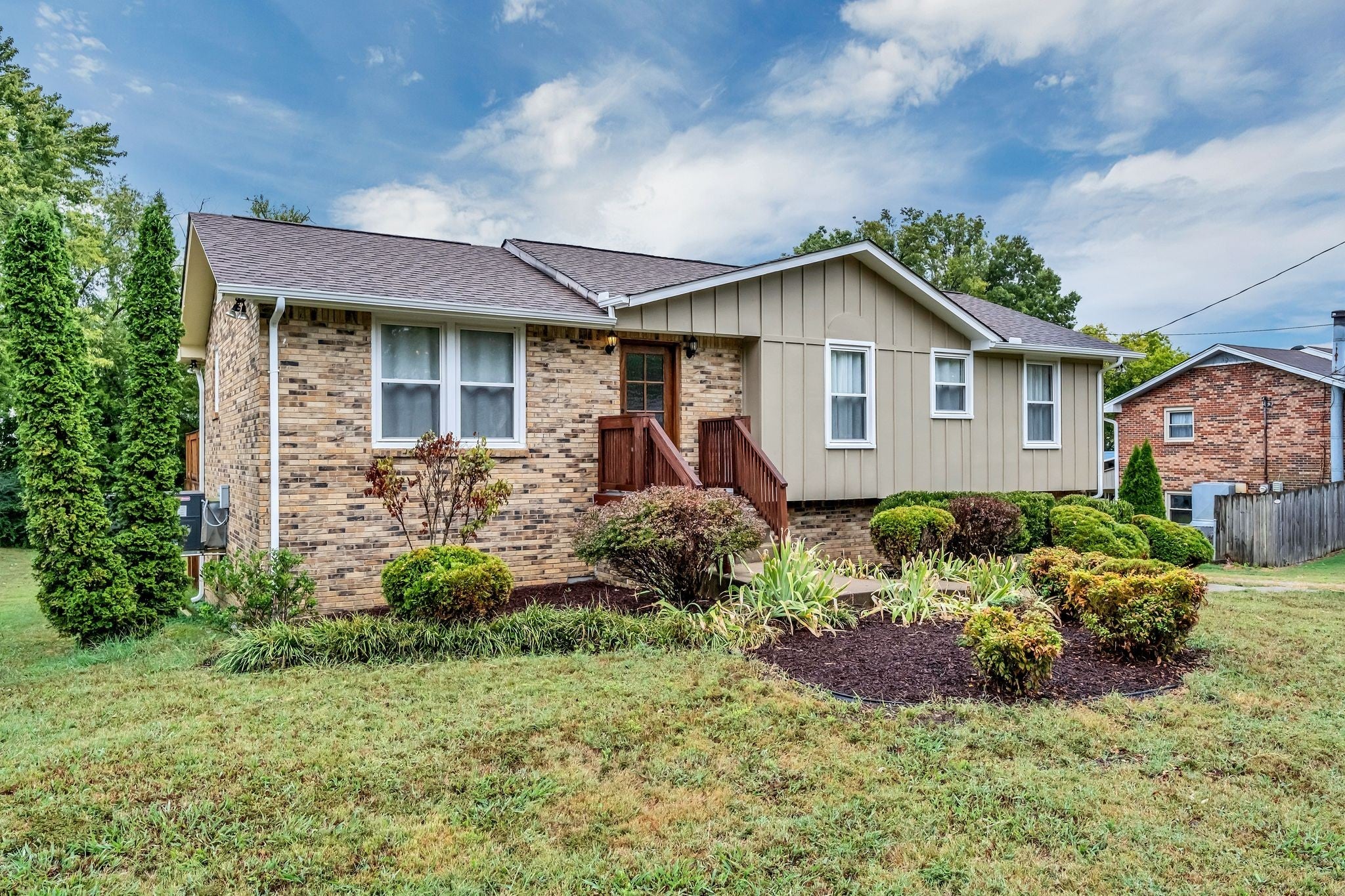 - Brick, Wood Siding