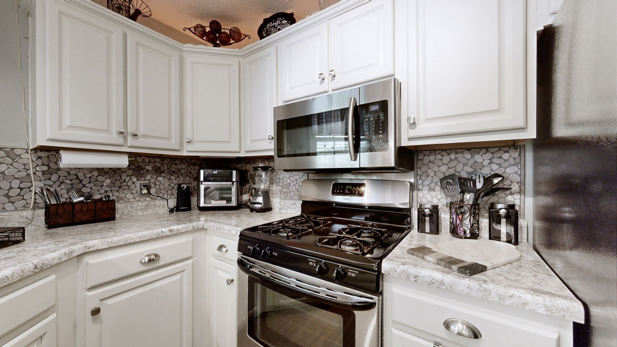 - Gas Oven, Gas Range, Dishwasher, Disposal, Microwave, Refrigerator