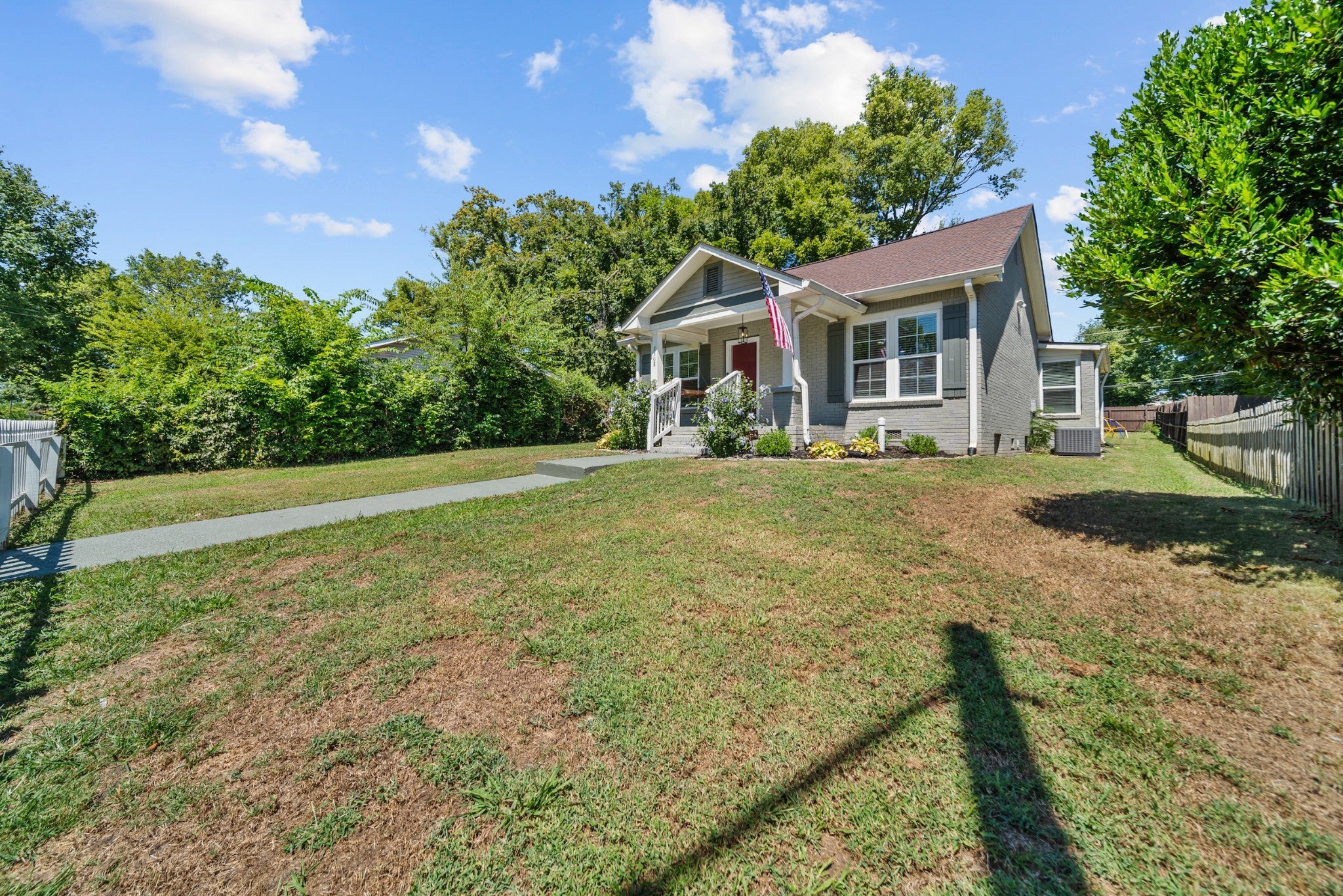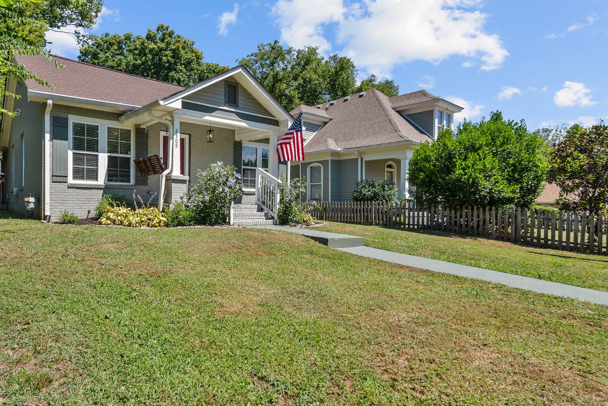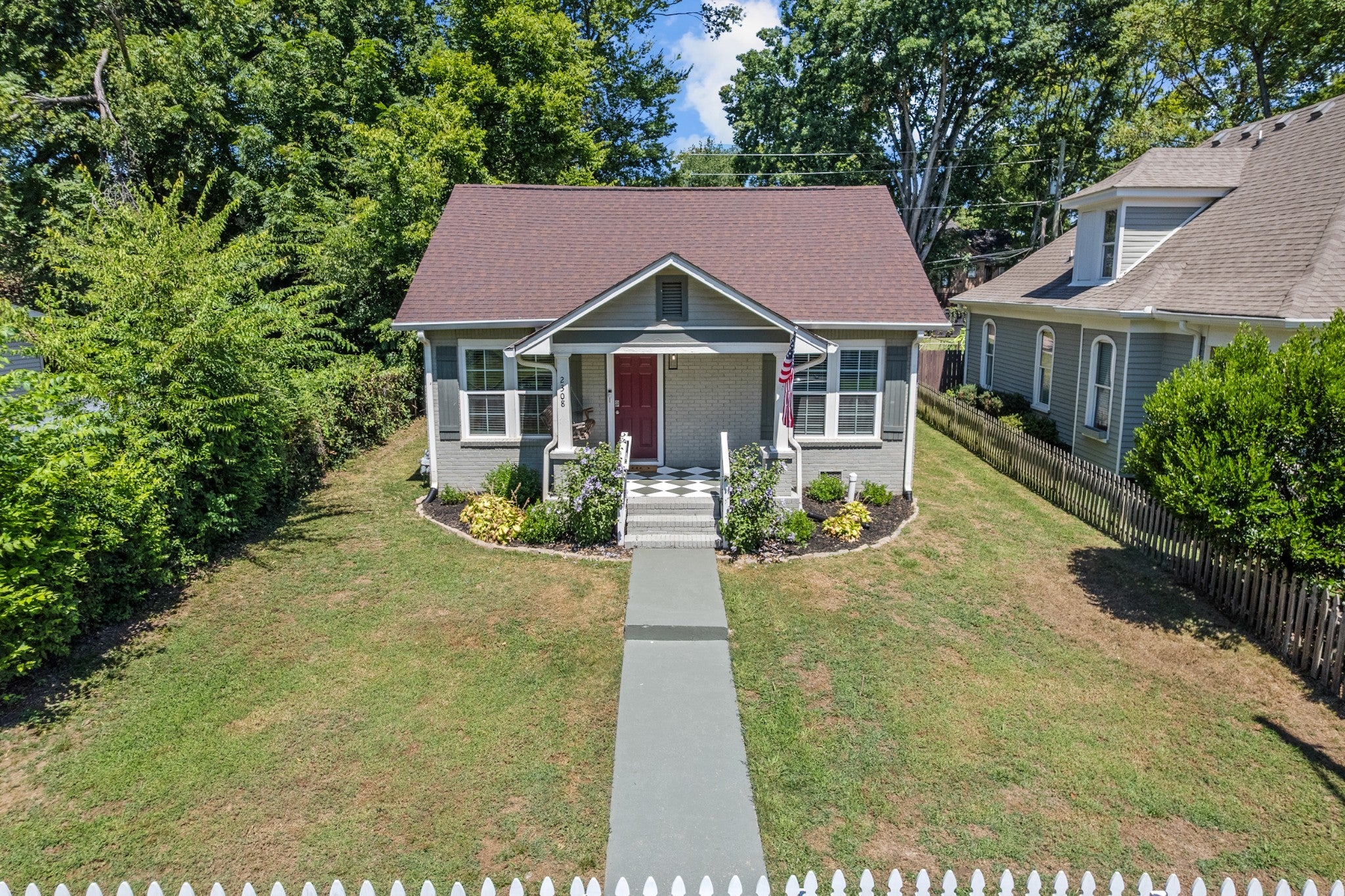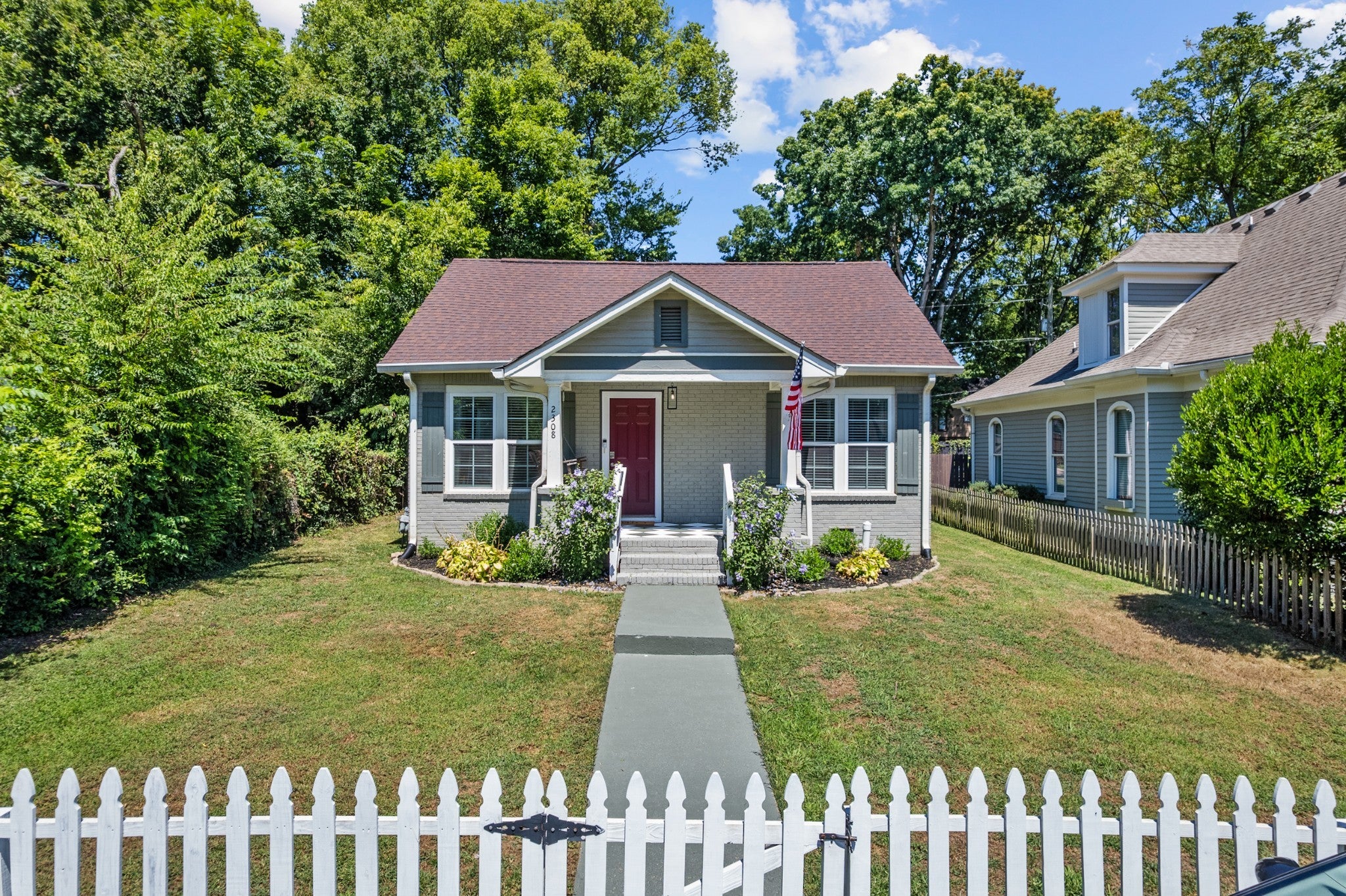 Welcome to 2308 Saint Louis Street, a fully renovated 3-bedroom, 2-bath home just three miles from downtown Nashville. This stunning 1930s gem has been thoughtfully updated for today's lifestyle while preserving all its original charm in the vibrant Buchanan Arts District. Step through the charming front porch – complete with classic checker paint and a welcoming porch swing – into a home that immediately captivates. Original hardwood floors flow throughout, complemented by beautiful custom built-ins in the living room that add both character and functionality. The modern kitchen features stainless steel appliances and granite countertops, while both bathrooms showcase stunning custom tile work that elevates everyday routines. Thoughtful details include a convenient mudroom area and fresh finishes throughout that create a truly move-in-ready experience. The outdoor space is equally impressive: a massive fenced yard offers privacy and space, while the backyard features a deck perfect for entertaining, a dedicated fire pit area, and practical storage shed. The rear driveway provides convenient parking, and the property's shared wall creates a picture-perfect backdrop with lush greenery – ideal for memorable photos and peaceful mornings. Professionally landscaped grounds complete this exceptional package, while the Buchanan Arts District location puts you steps from local coffee shops, restaurants, and Germantown's eclectic offerings, with quick access to Nashville's core. Added bonus: DADU (Detached accessory dwelling unit) eligibility opens possibilities for rental/Airbnb income, guest quarters, or expanded living space, making this both a beautiful home and smart investment opportunity. This rare combination of historic charm, modern updates, and future potential makes 2308 Saint Louis Street a truly exceptional Nashville find.
