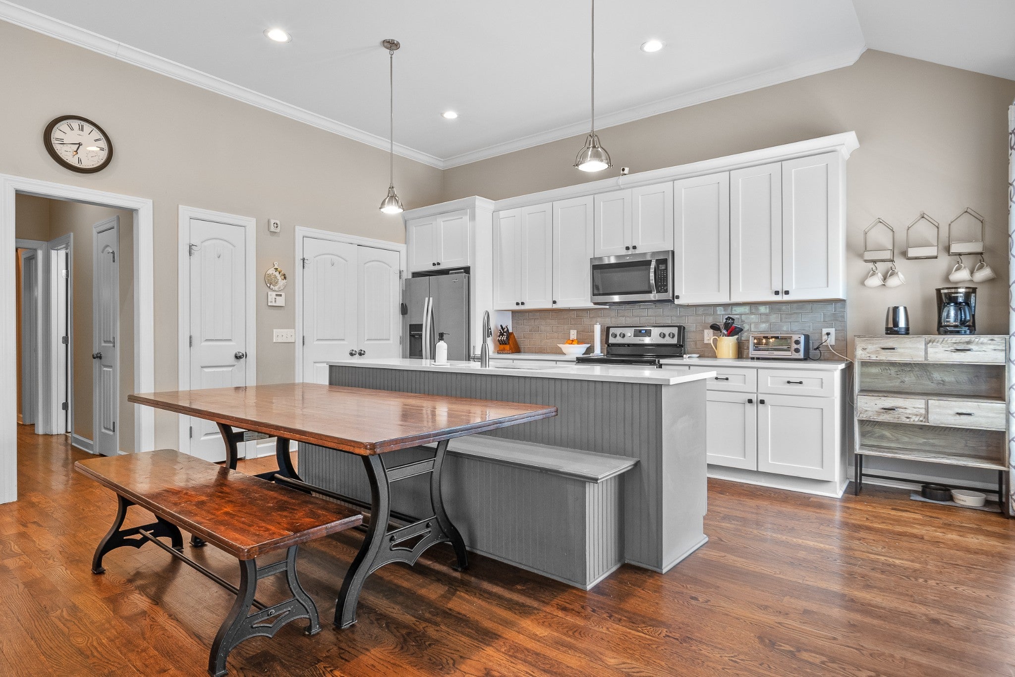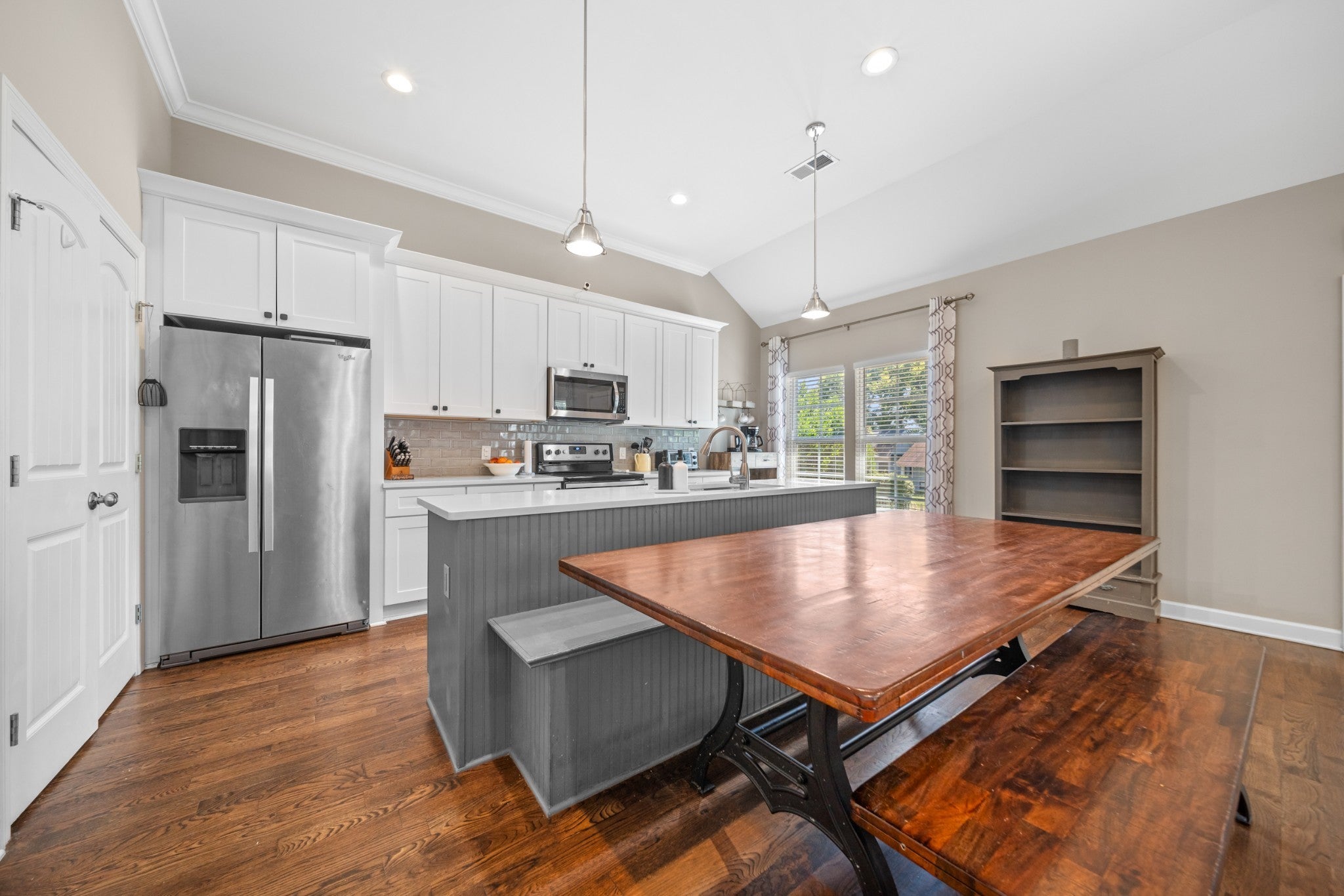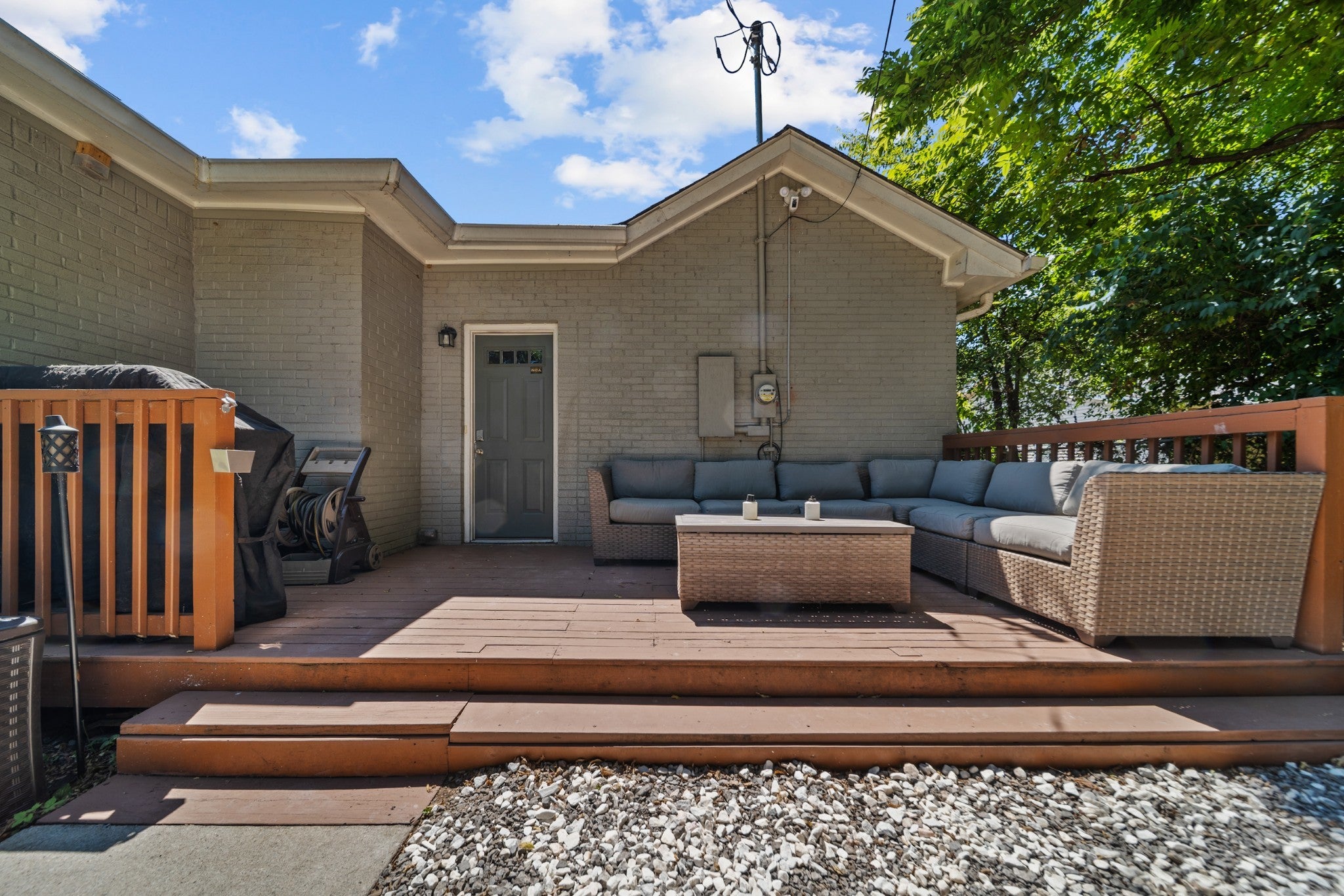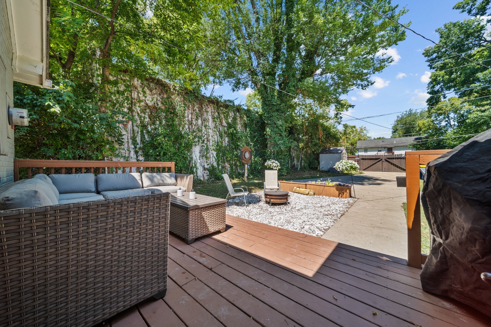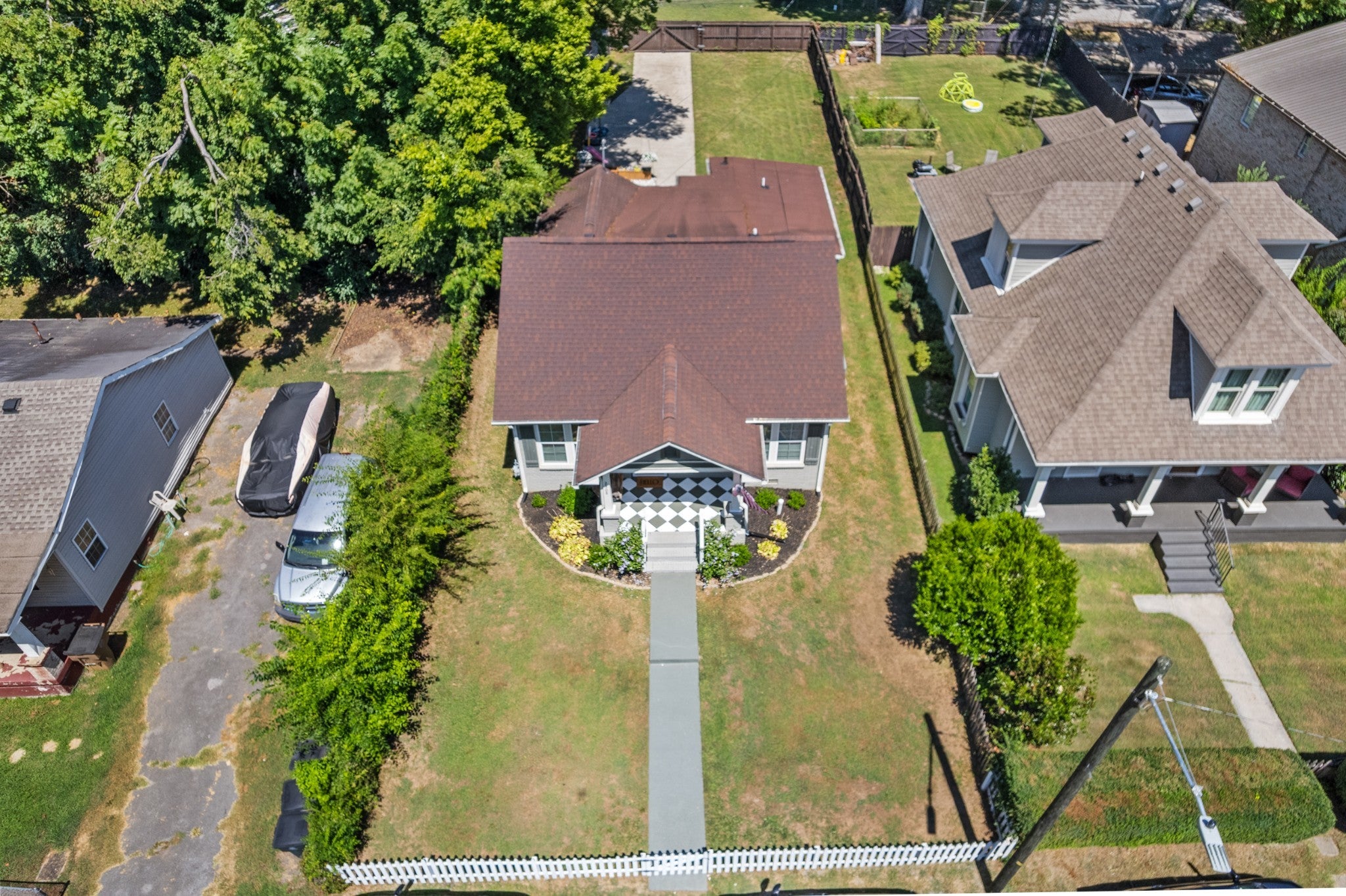Welcome to 2308 Saint Louis Street, a fully renovated 3-bedroom, 2-bath home just three miles from downtown Nashville. This stunning 1930s gem has been thoughtfully updated for today's lifestyle while preserving all its original charm in the vibrant Buchanan Arts District. Step through the charming front porch – complete with classic checker paint and a welcoming porch swing – into a home that immediately captivates. Original hardwood floors flow throughout, complemented by beautiful custom built-ins in the living room that add both character and functionality. The modern kitchen features stainless steel appliances and granite countertops, while both bathrooms showcase stunning custom tile work that elevates everyday routines. Thoughtful details include a convenient mudroom area and fresh finishes throughout that create a truly move-in-ready experience. The outdoor space is equally impressive: a massive fenced yard offers privacy and space, while the backyard features a deck perfect for entertaining, a dedicated fire pit area, and practical storage shed. The rear driveway provides convenient parking, and the property's shared wall creates a picture-perfect backdrop with lush greenery – ideal for memorable photos and peaceful mornings. Professionally landscaped grounds complete this exceptional package, while the Buchanan Arts District location puts you steps from local coffee shops, restaurants, and Germantown's eclectic offerings, with quick access to Nashville's core. Added bonus: DADU (Detached accessory dwelling unit) eligibility opens possibilities for rental/Airbnb income, guest quarters, or expanded living space, making this both a beautiful home and smart investment opportunity. This rare combination of historic charm, modern updates, and future potential makes 2308 Saint Louis Street a truly exceptional Nashville find.