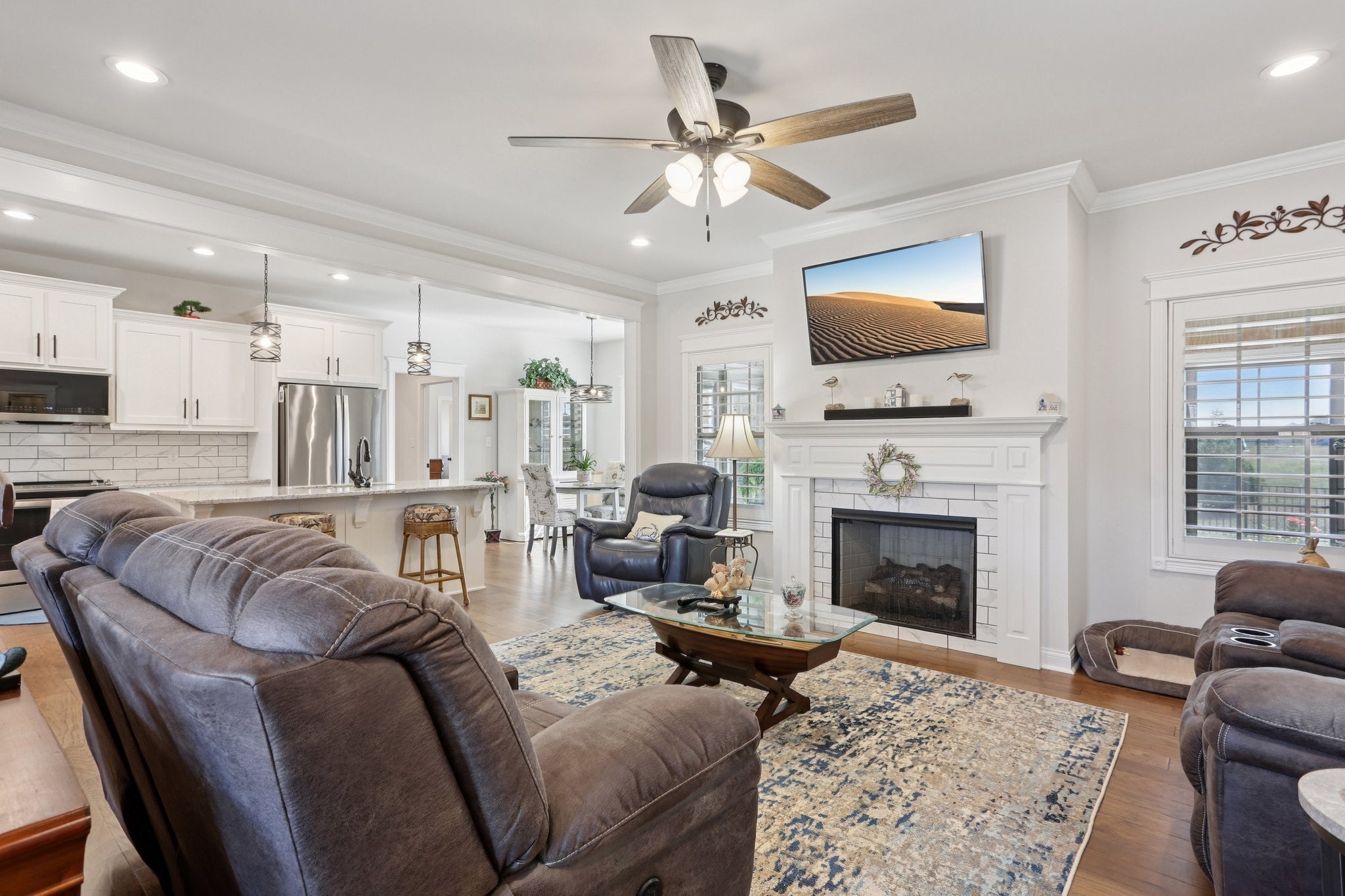Immaculate 3-bedroom, 2-bath home located in the desirable South Warren school district. Just 3 years old, this home offers a thoughtful split-bedroom floor plan ideal for both privacy and functionality. This home also has elevated finishings, thoughtful landscape, and a separate dinning room. You will also find plenty of cabinet space in the kitchen and a walk-in pantry. The spacious living room features a warm, inviting fireplace and rich hardwood floors that extend throughout the main living areas. A bright and airy sunroom provides the perfect spot for morning coffee, afternoon reading, or casual entertaining. The large primary suite offers a peaceful retreat with plenty of space, a walk-in closet, and a private en-suite bathroom. Two additional bedrooms are well-sized and positioned for comfort and versatility. Sidewalk-lined streets create a welcoming neighborhood feel, perfect for evening strolls. With timeless design choices, a move-in ready condition, and convenient access to schools, shopping, and major roadways, this home truly offers a lifestyle of comfort, ease, and connection. Schedule your showing today and imagine what life could look like in this beautifully maintained home.