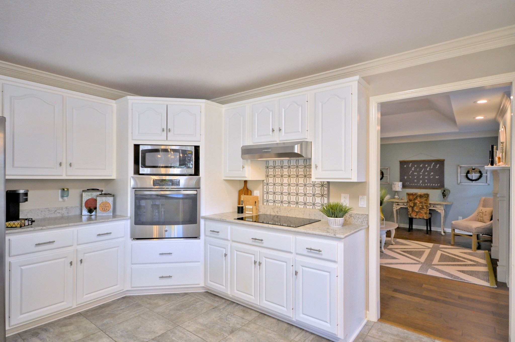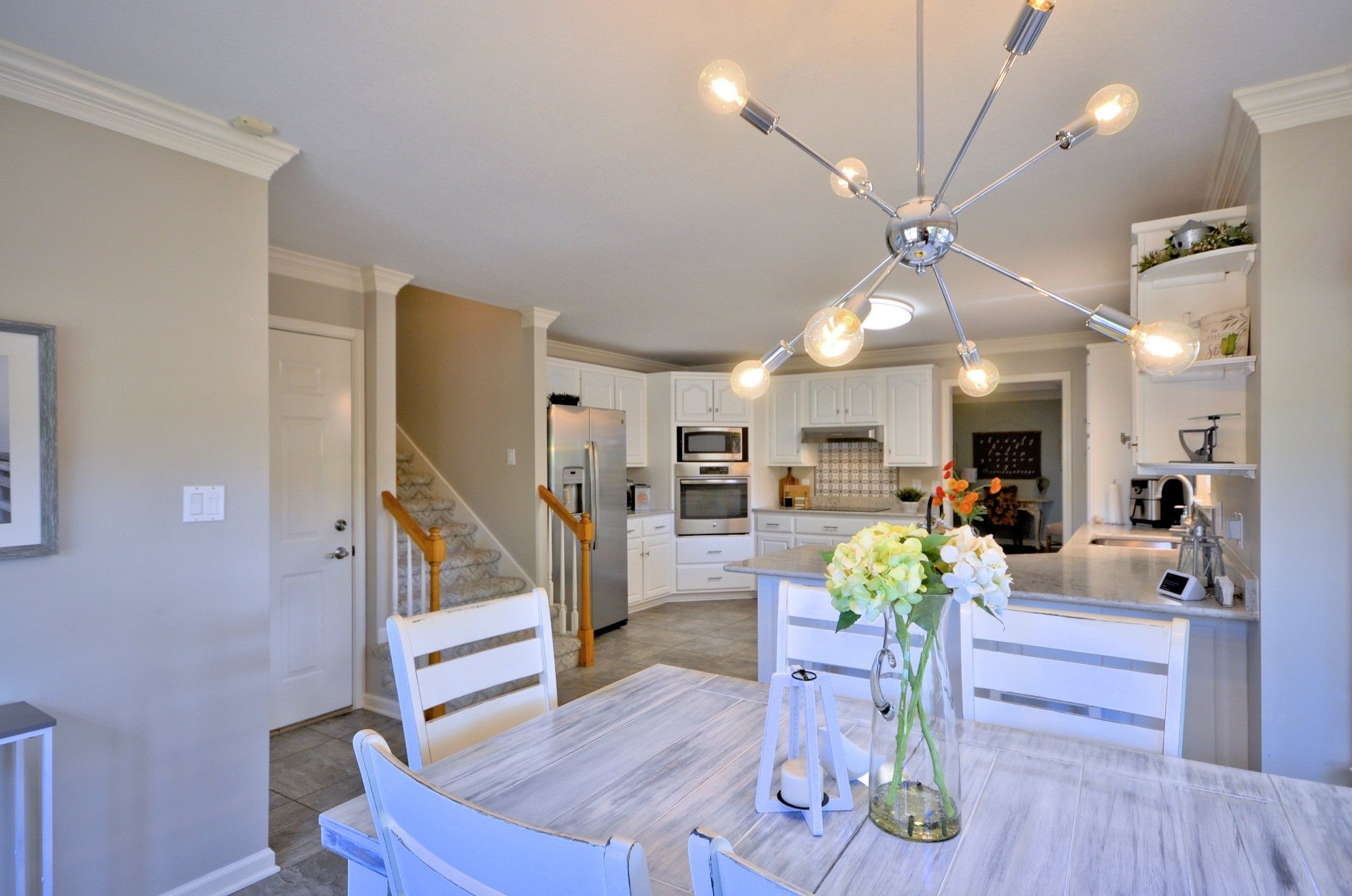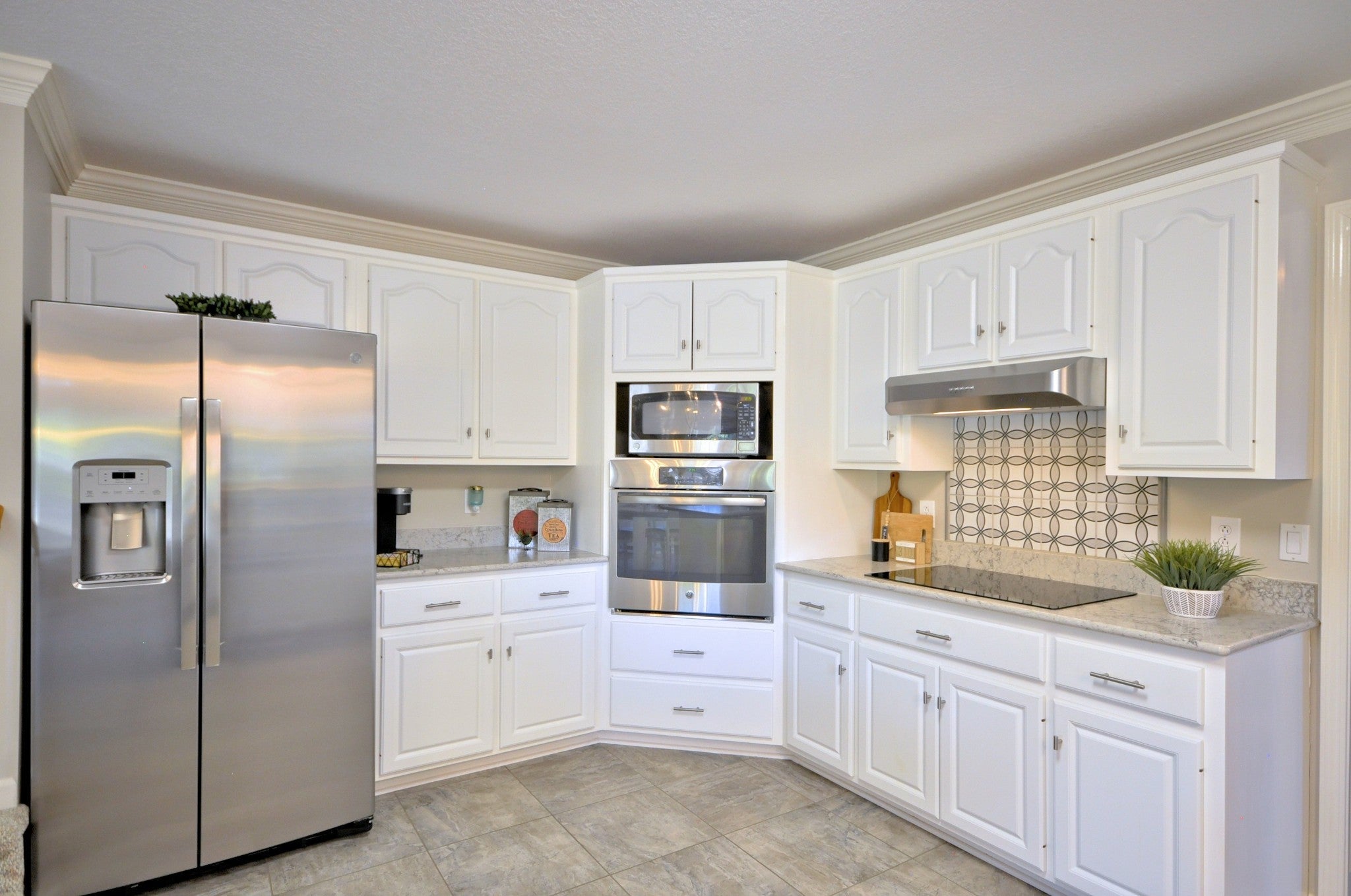 - Built-In Electric Oven, Cooktop, Dishwasher, Disposal, Dryer, Microwave, Refrigerator, Stainless Steel Appliance(s), Washer
