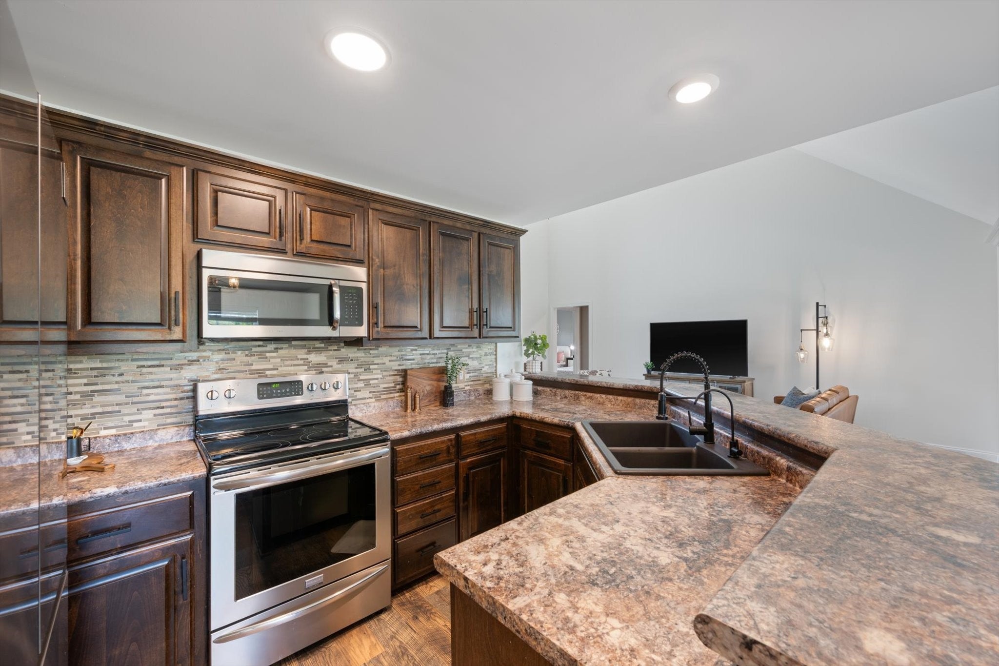 - Electric Oven, Electric Range, Dishwasher, Microwave, Refrigerator, Stainless Steel Appliance(s)