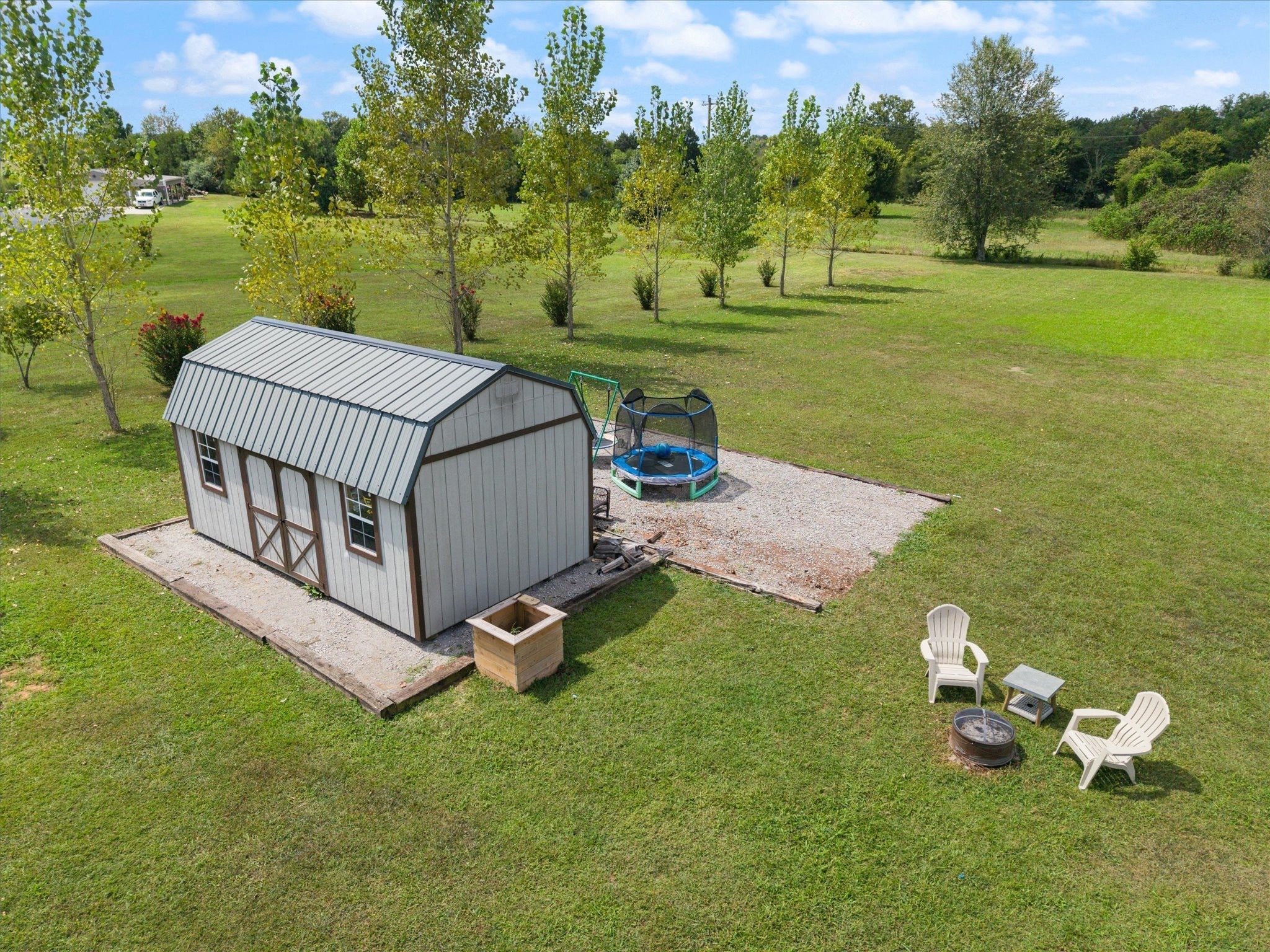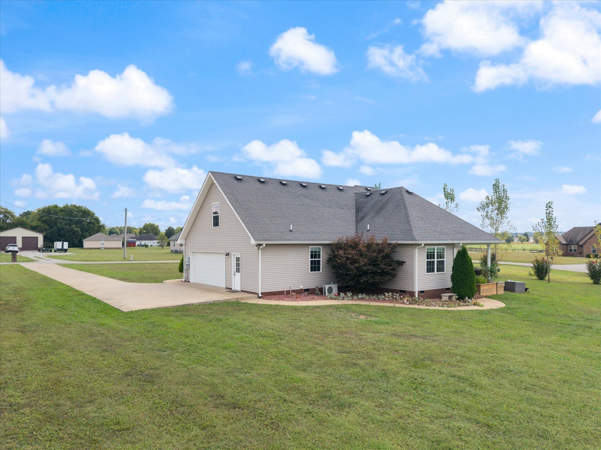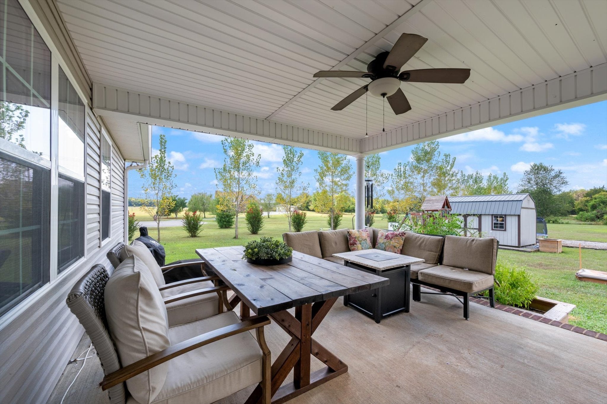 This property truly has it all—home and land with no HOA! Featuring a mostly single-level layout. The foyer and living room boast stunning 16-foot ceilings, while the main level is finished with beautiful wood floors and tile. Sitting on a flat 1.10-acre lot, the home includes a 14x14 covered back porch with incredible sunset views. There’s also a side entry garage, a large storage shed for all your equipment or toys, plus a gravel parking area for RVs or boats tucked around back. Enjoy the best of both worlds with a peaceful rural setting that’s still close to everything you need. Plus, stay connected with high-speed fiber internet access.
