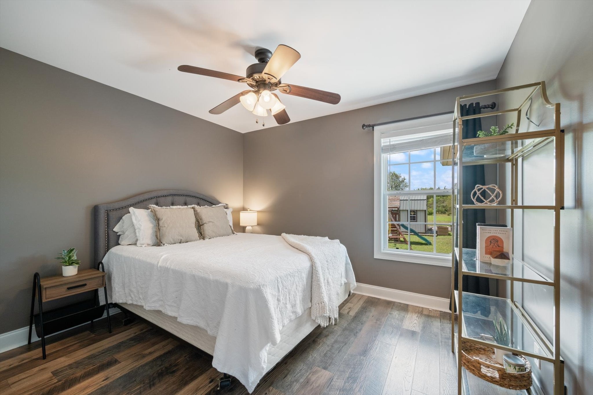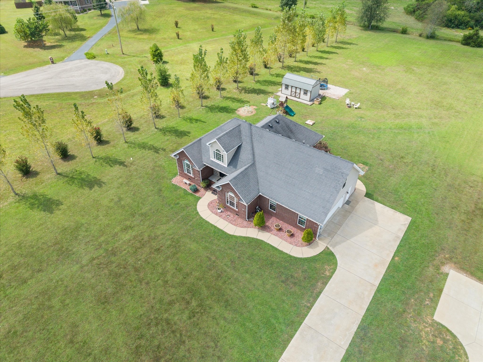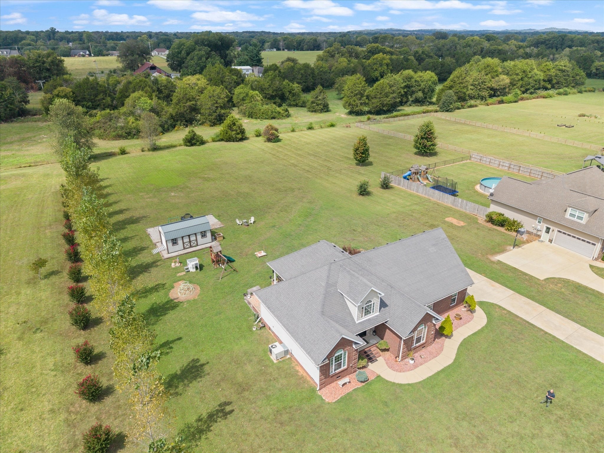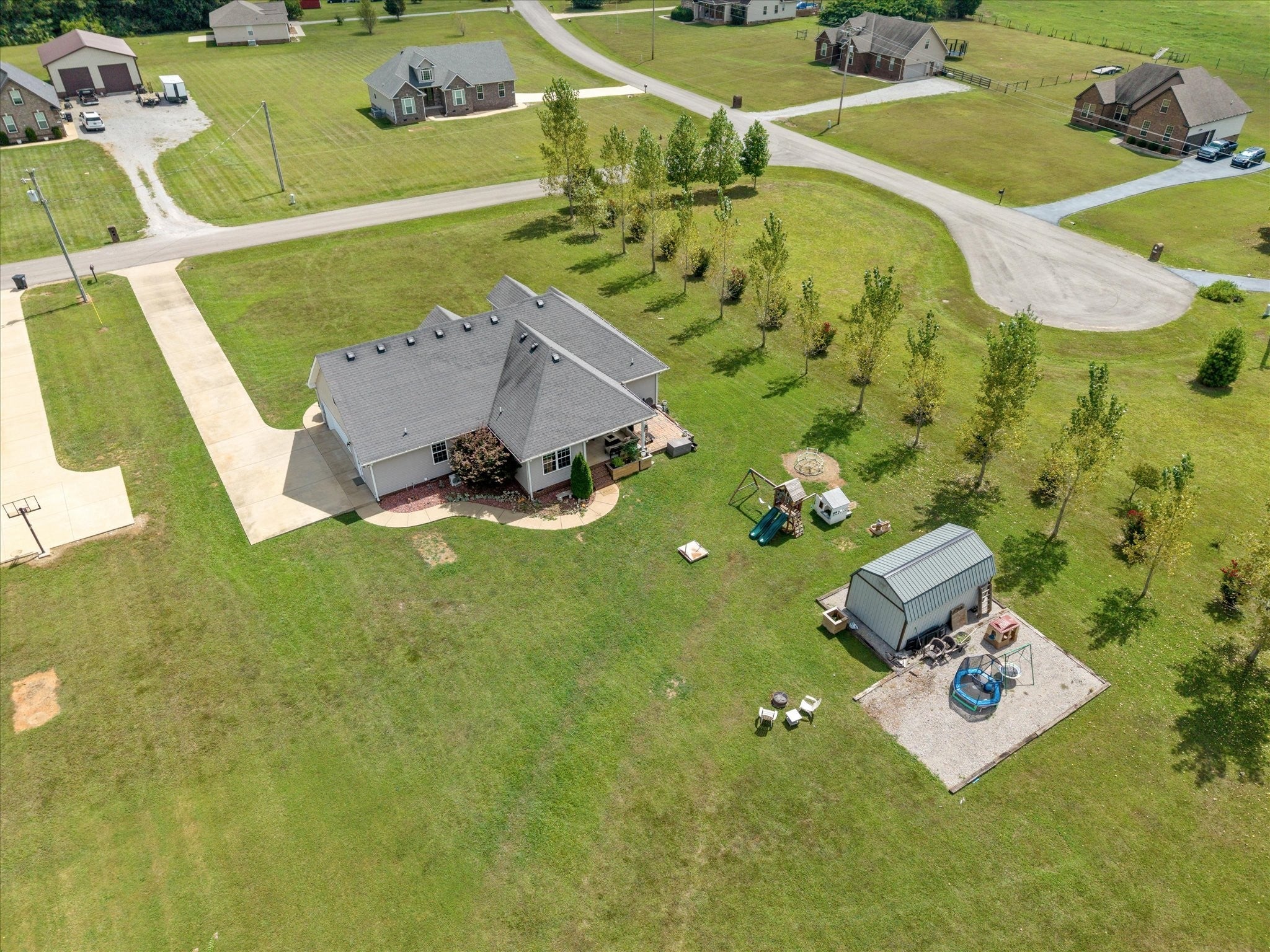 This property truly has it all—home and land with no HOA! Featuring a mostly single-level layout. The foyer and living room boast stunning 16-foot ceilings, while the main level is finished with beautiful wood floors and tile. Sitting on a flat 1.10-acre lot, the home includes a 14x14 covered back porch with incredible sunset views. There’s also a side entry garage, a large storage shed for all your equipment or toys, plus a gravel parking area for RVs or boats tucked around back. Enjoy the best of both worlds with a peaceful rural setting that’s still close to everything you need. Plus, stay connected with high-speed fiber internet access.