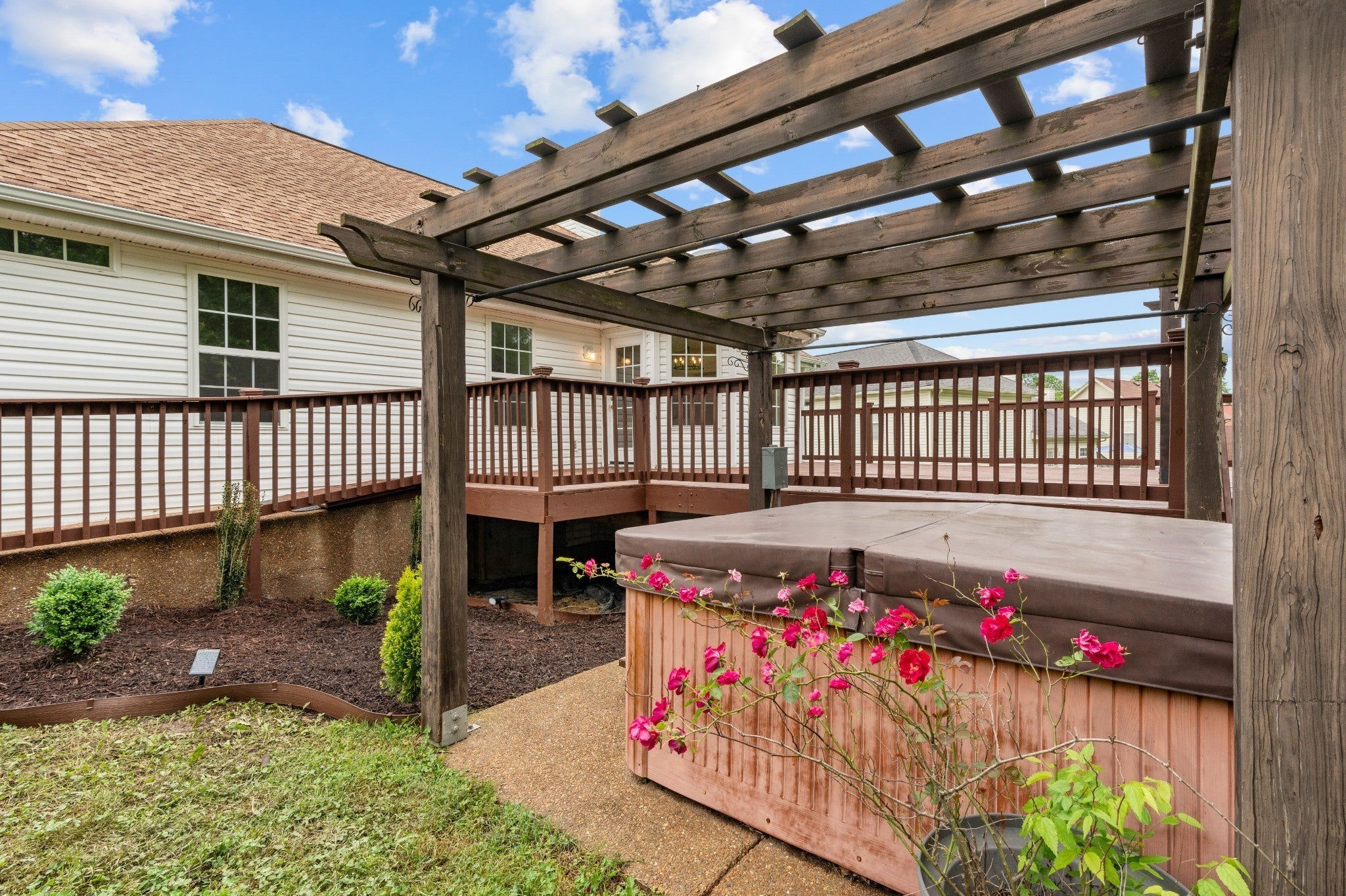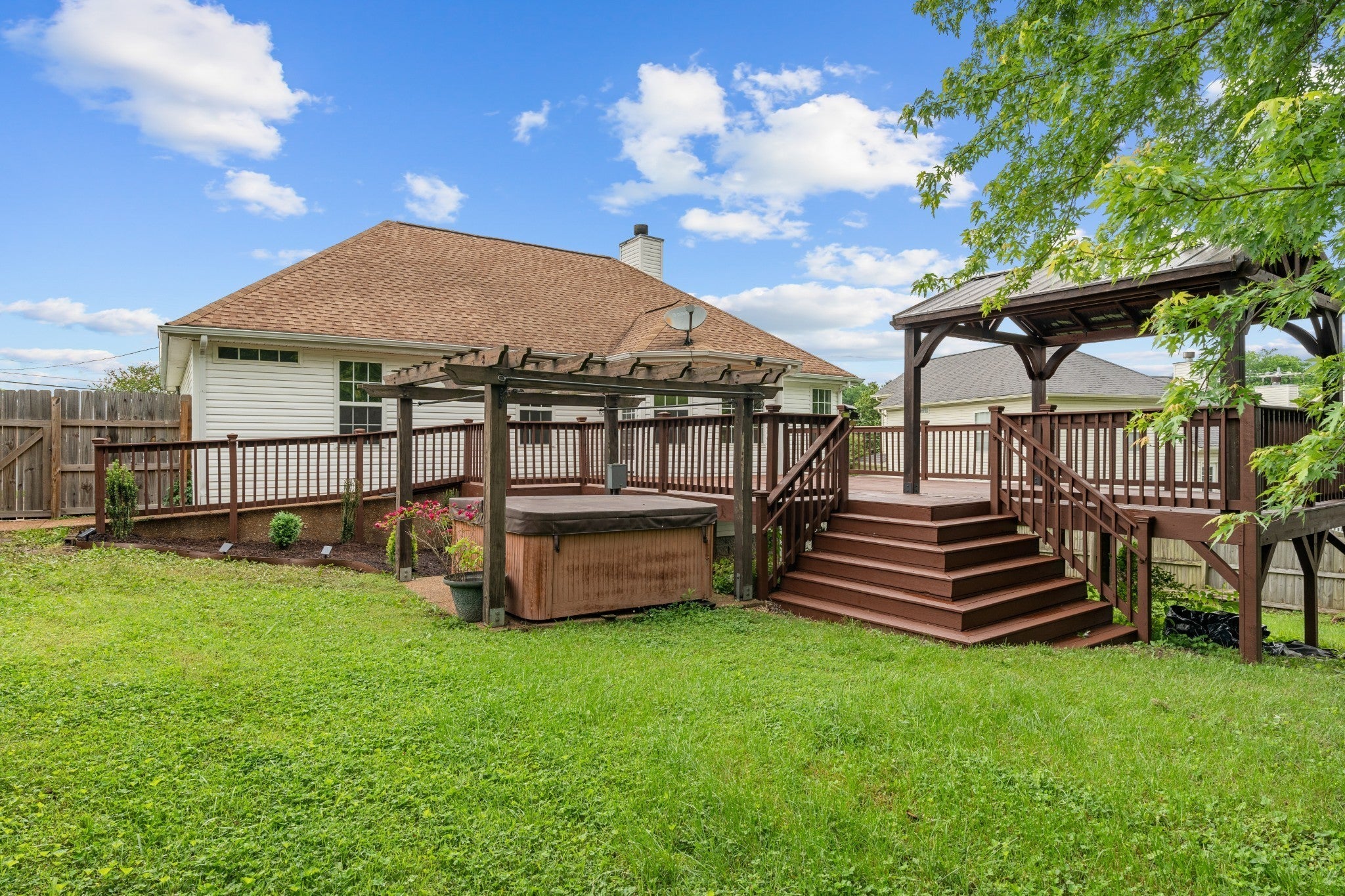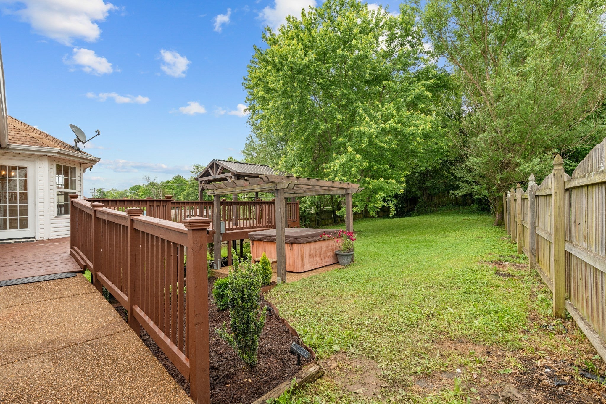 Recently renovated interior and gorgeous established landscaping outside! Updated bathrooms with marble counters, luxurious primary with handicap shower, wood burning fireplace, new carpet/hardwood flooring, new light fixtures, new exhaust hood, tile backsplash, granite counters, fresh paint throughout, new ceiling fans, new barn door gong to Bonus Room, tile bathroom floors, and more. Exterior features hot tub, extra large partially covered deck, ramp, fenced backyard, dog pen, and driveway has been extended and widened. Only 2 miles from the interstate.