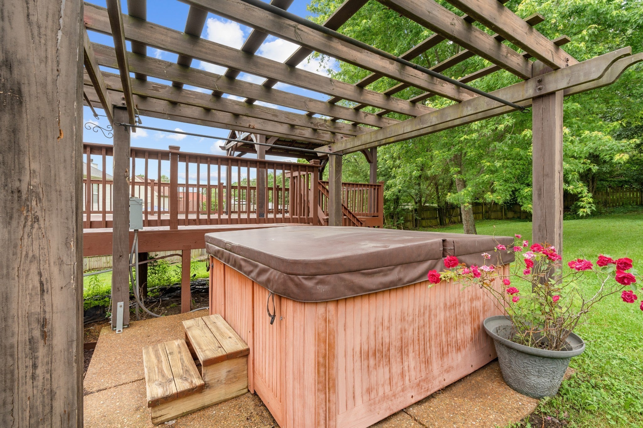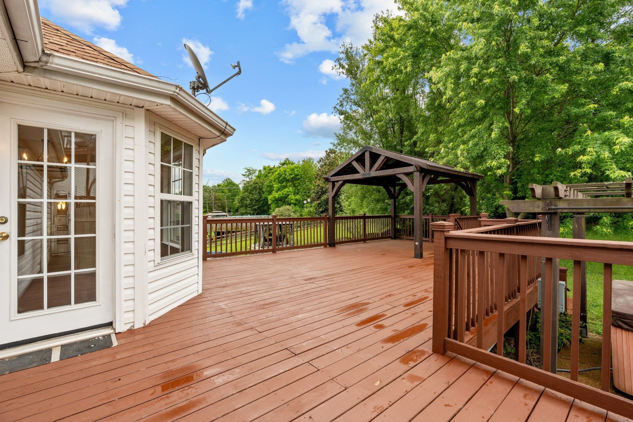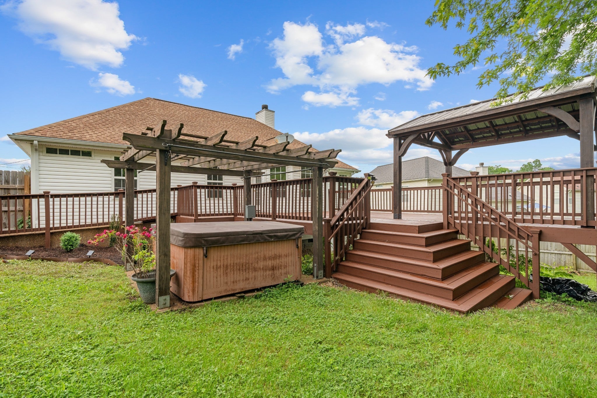 Recently renovated interior and gorgeous established landscaping outside! Updated bathrooms with marble counters, luxurious primary with handicap shower, wood burning fireplace, new carpet/hardwood flooring, new light fixtures, new exhaust hood, tile backsplash, granite counters, fresh paint throughout, new ceiling fans, new barn door gong to Bonus Room, tile bathroom floors, and more. Exterior features hot tub, extra large partially covered deck, ramp, fenced backyard, dog pen, and driveway has been extended and widened. Only 2 miles from the interstate.