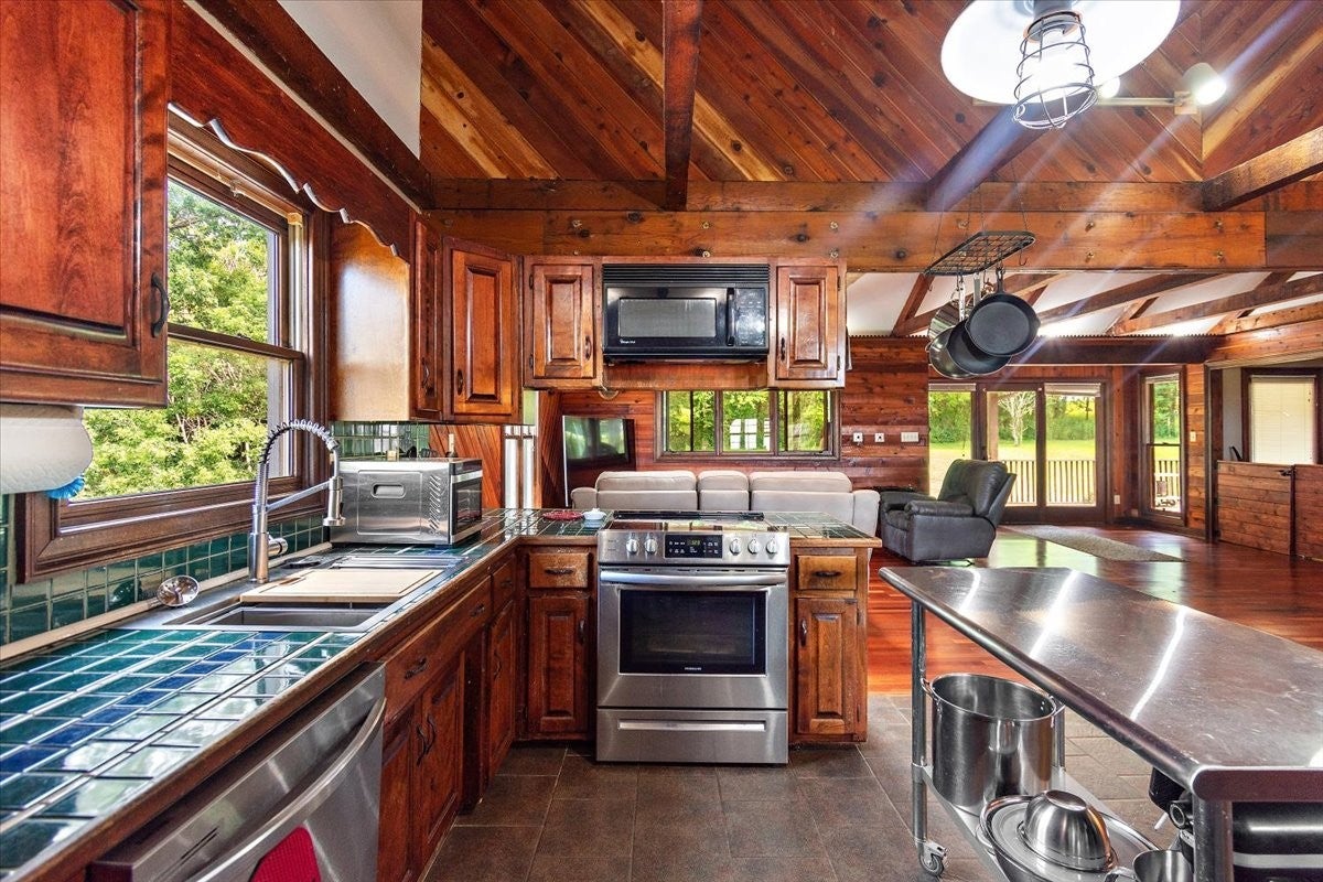 Bring your animals and enjoy the country lifestyle on this 5.2-acre mini farm! The property includes two, separate parceled, fully fenced pastures and a spacious barn with two horse stalls, goat stalls, a tack room, hitching post, and plenty of room for your own plans. The home offers an open floor plan with vaulted ceilings throughout the main level, plus beautiful hardwood and tile flooring—no carpet! Recent updates include a new electrical box, newer HVAC system, and water heater. The kitchen comes fully equipped with all appliances, including the refrigerator, and the washer and dryer will also remain. Plenty of enjoyable outdoor space with a covered front porch and oversized covered back patio. As a bonus, the seller is leaving 50 boxes of new in box LVP flooring, giving you the opportunity to update even further to your style. Running Tractor and Attachments will also remain.